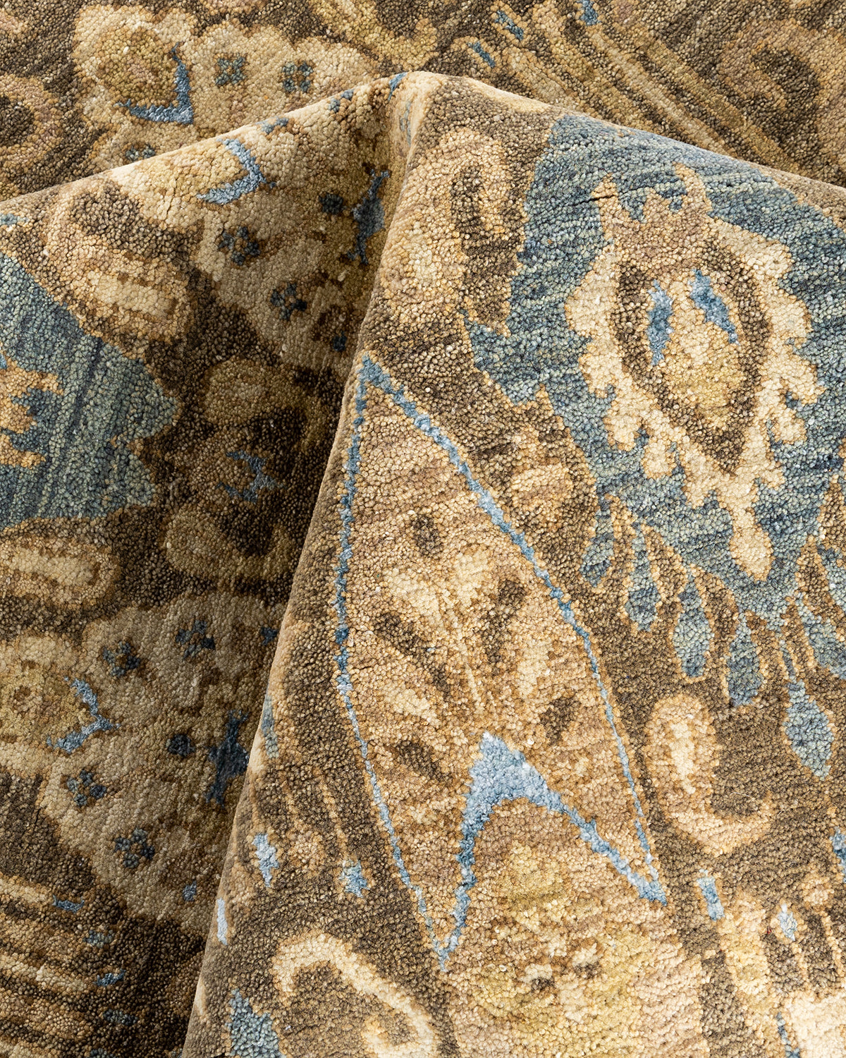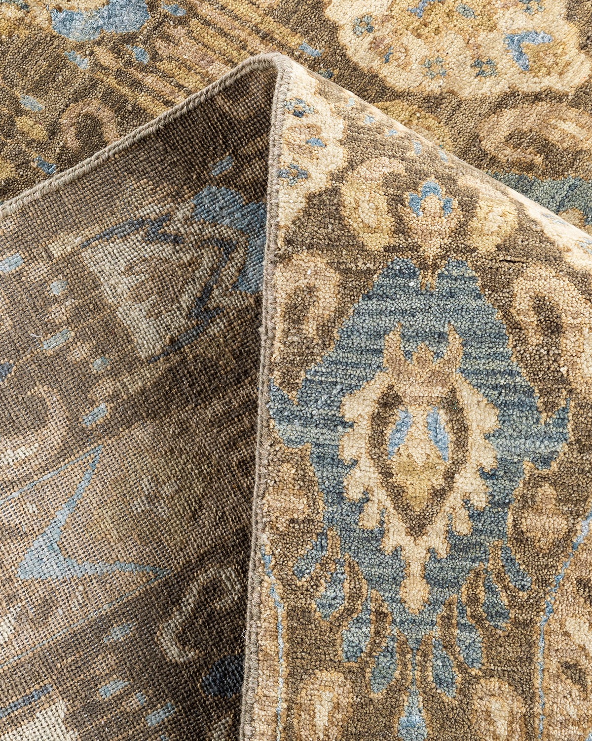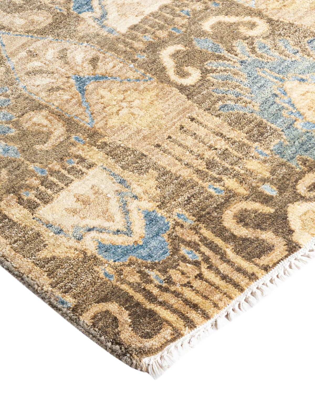 Traditional Ikat Hand Knotted Geometric Silk & Wool Blend Brown Area Rug 9' 0" x 12' 0"