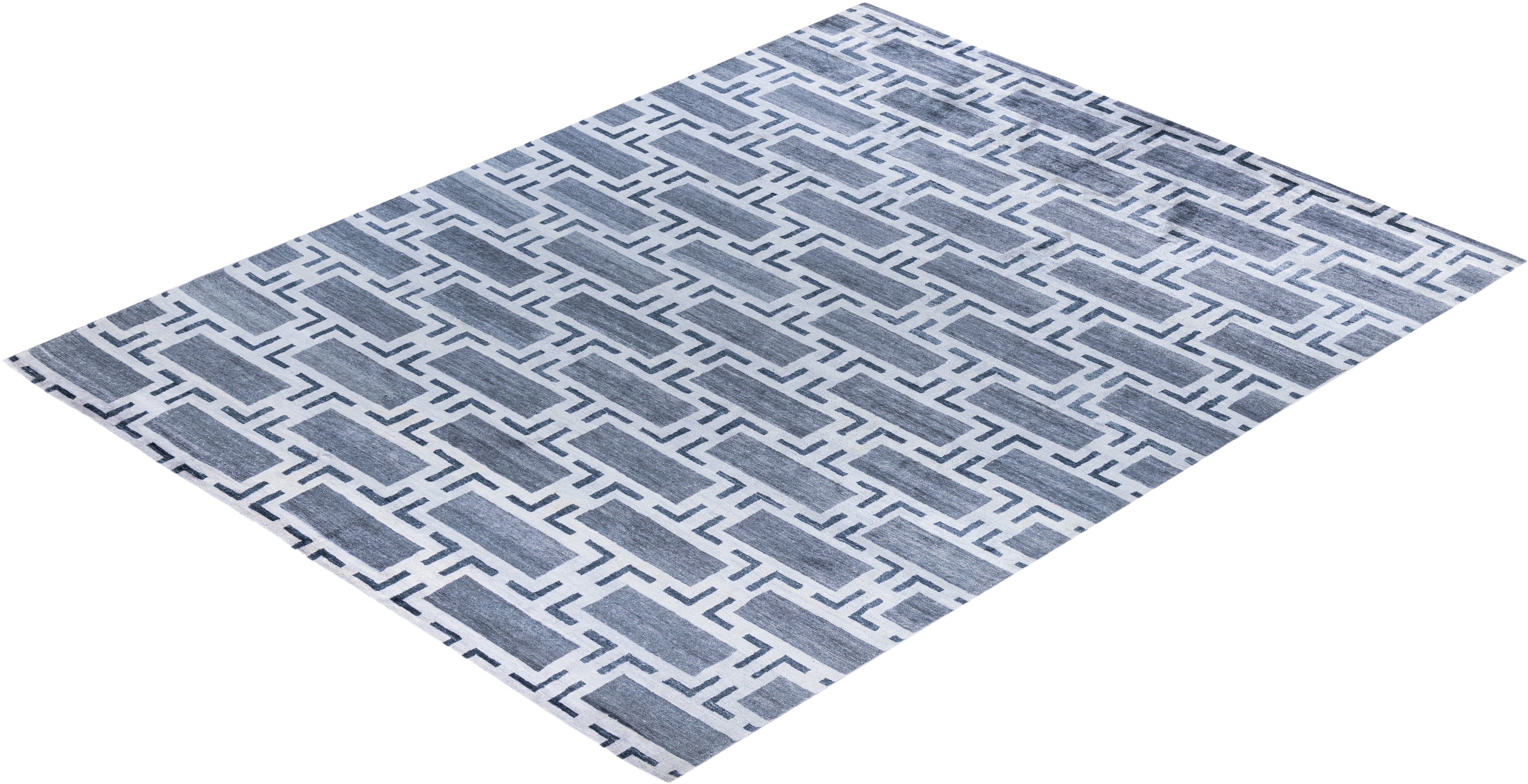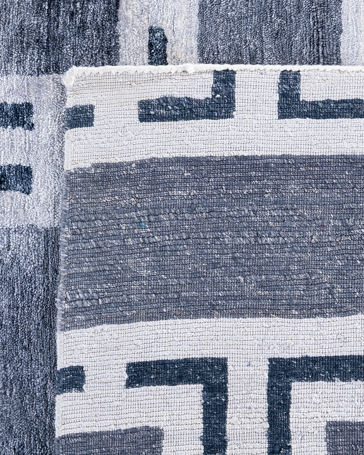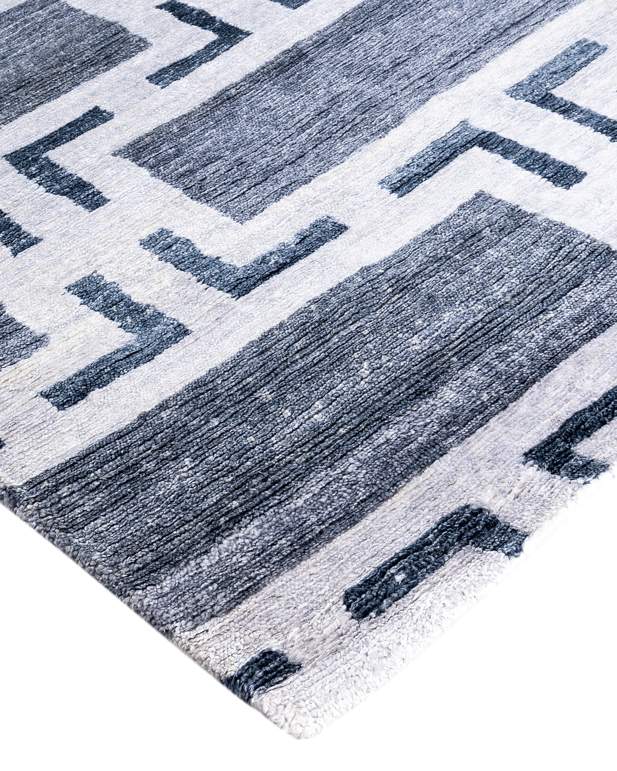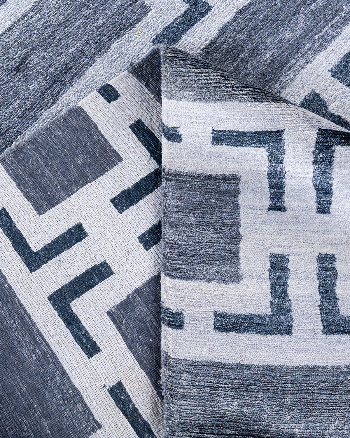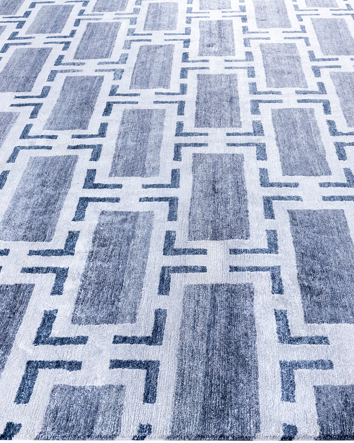 Contemporary Modern Hand Knotted Geometric Silk Ivory Area Rug 9' 0" x 11' 10"
