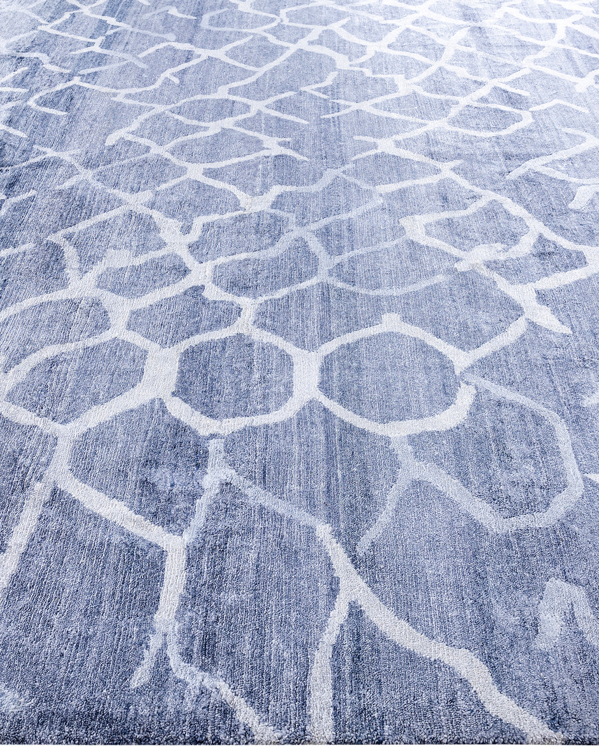 Contemporary Modern Hand Knotted Abstract Silk Gray Area Rug 9' 2" x 11' 10"