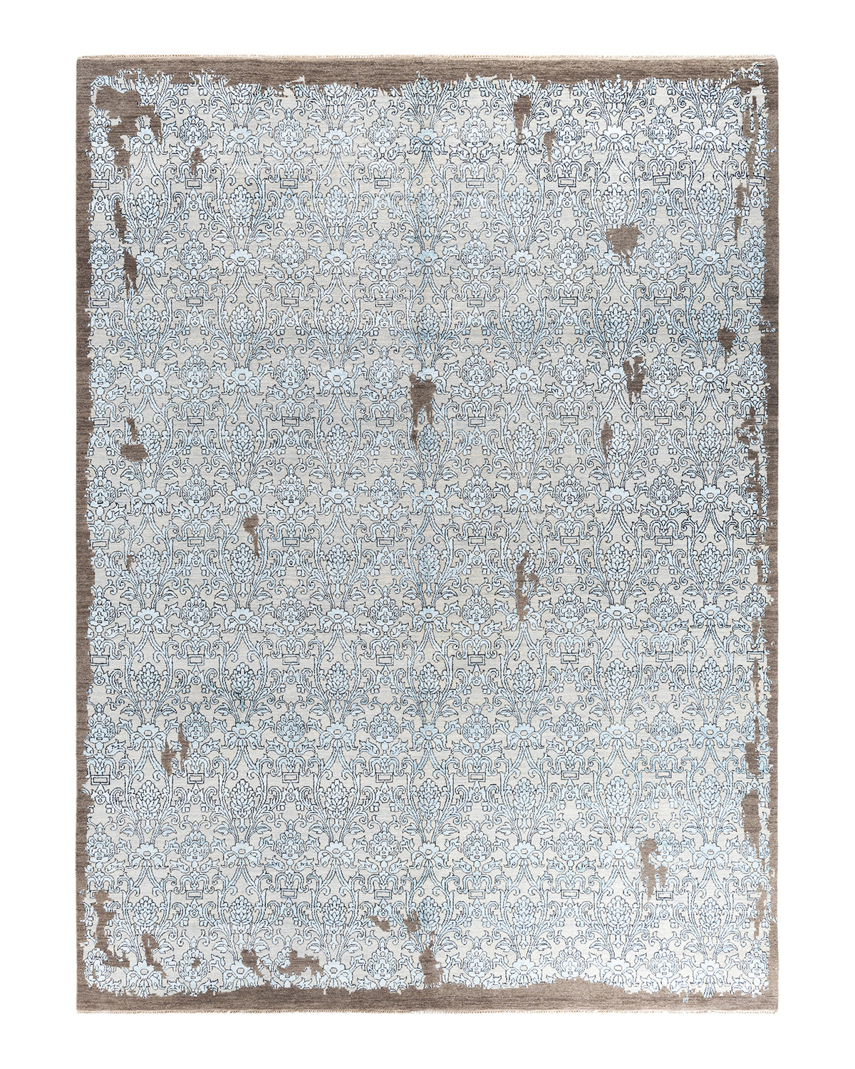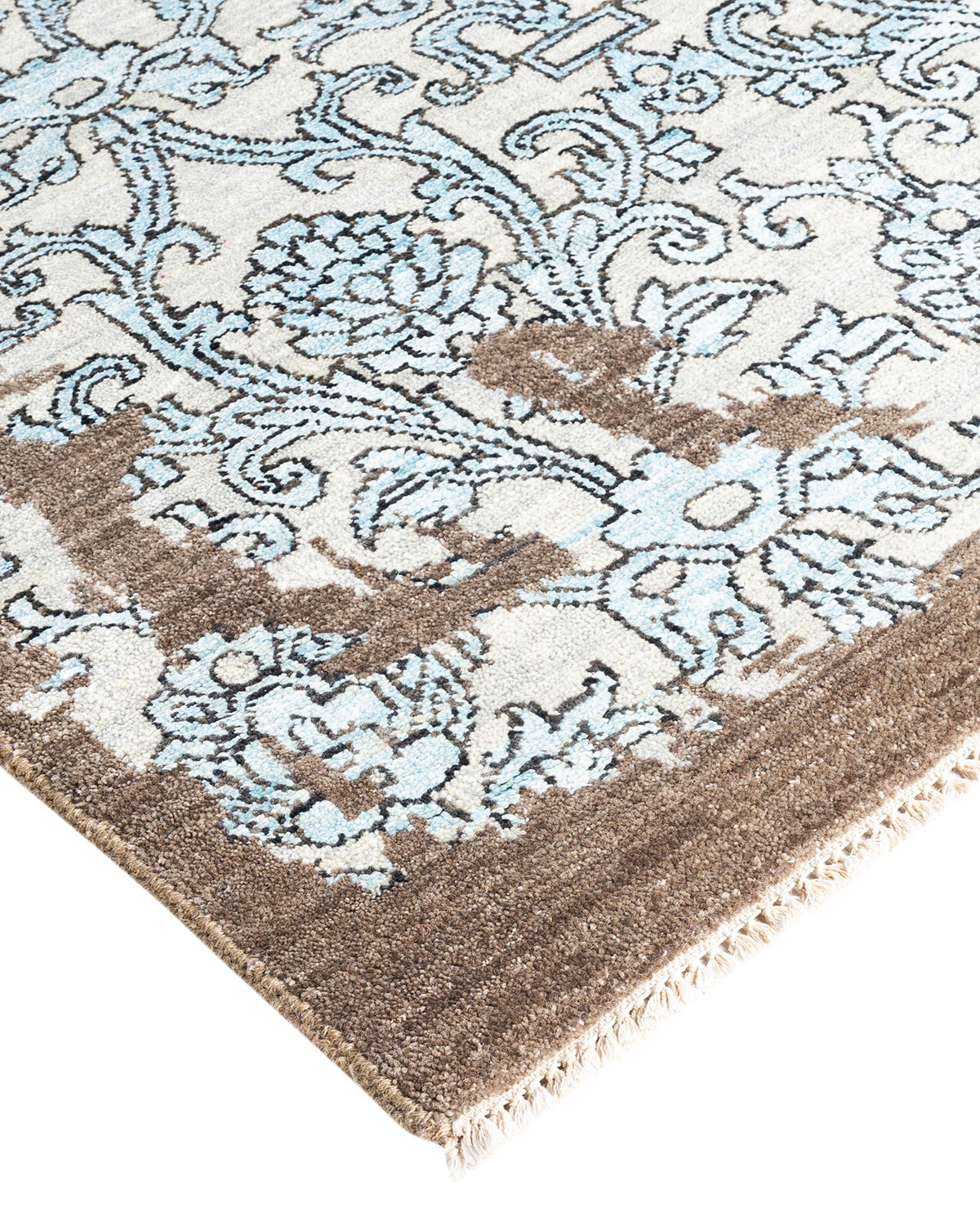 Traditional Ikat Hand Knotted Floral Silk & Wool Blend Brown Area Rug 9' 2" x 12' 4"