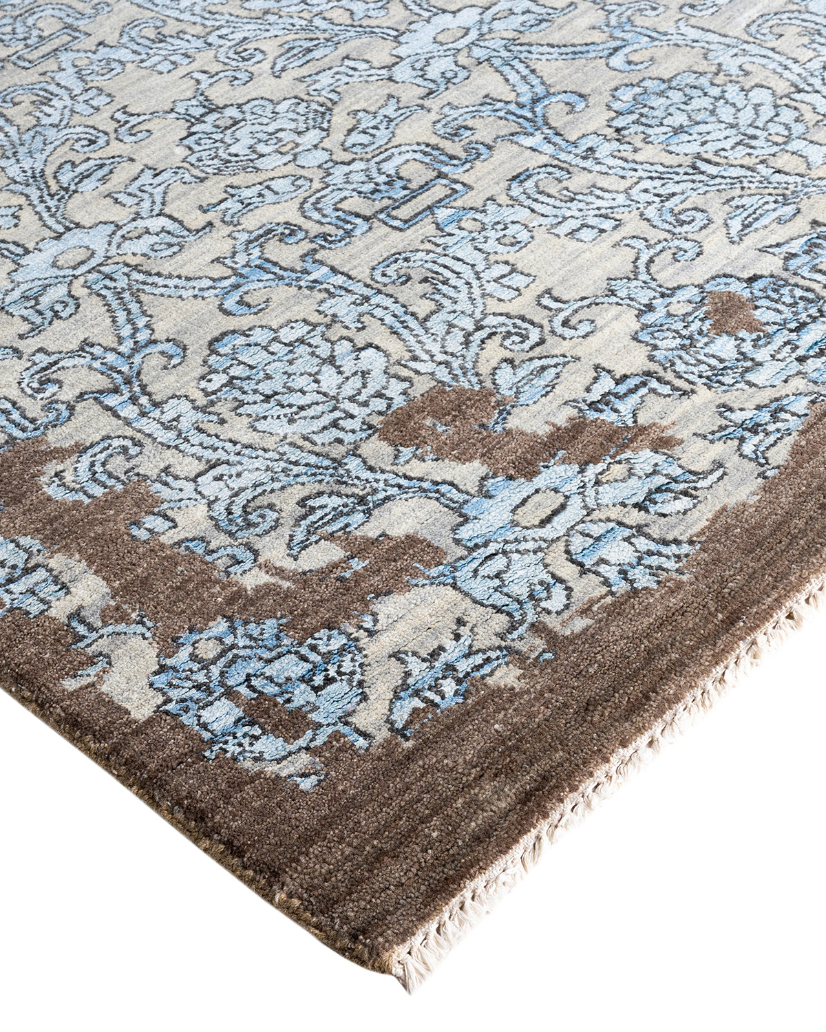 Traditional Ikat Hand Knotted Abstract Silk & Wool Blend Brown Area Rug 9' 2" x 12' 1"