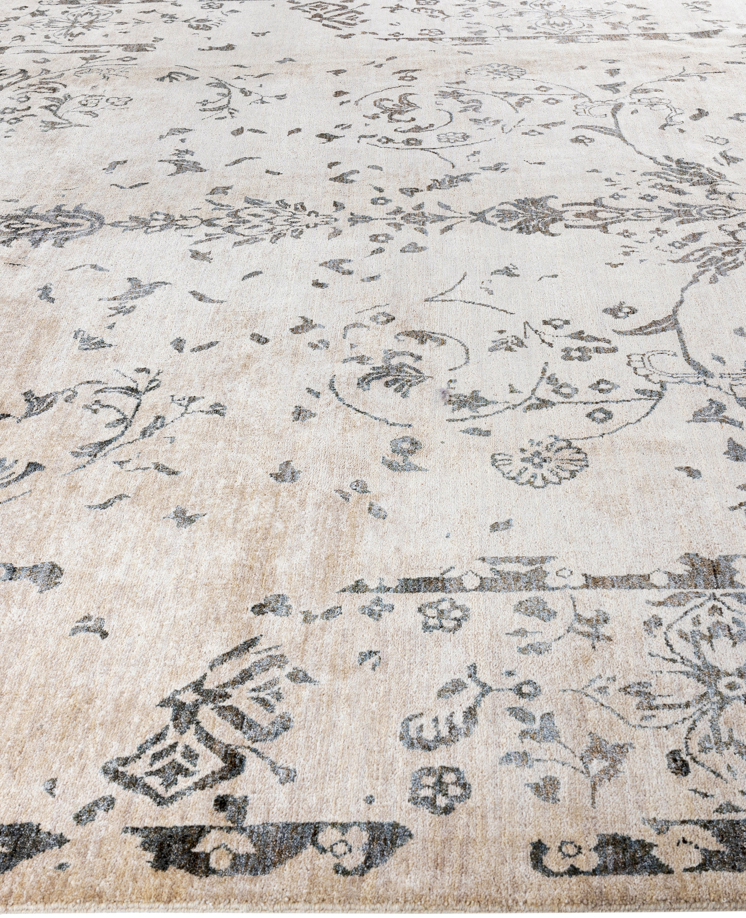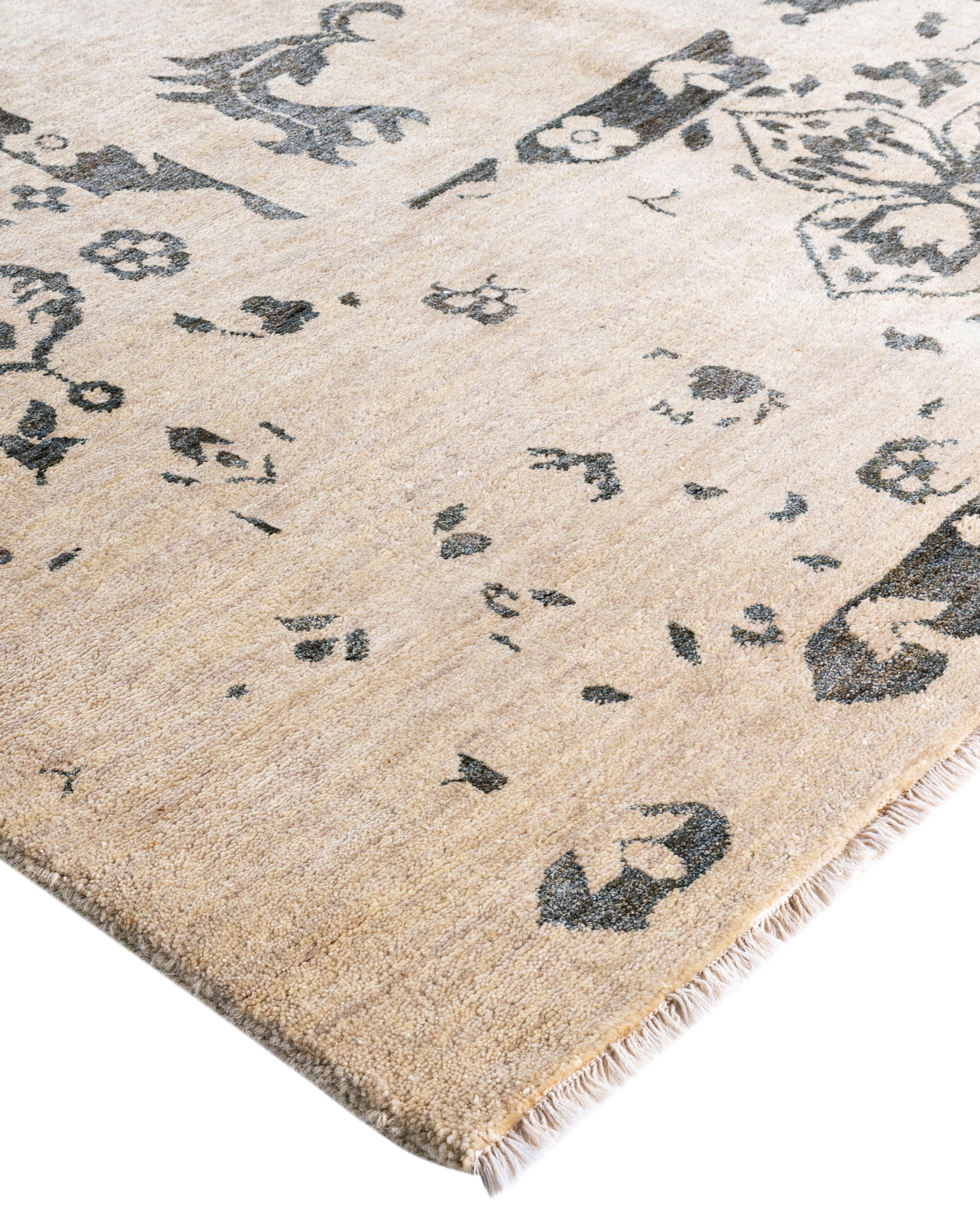 Traditional Abstarct Wool Hand Knotted Ivory Area Rug 9' 4" x 12' 3"