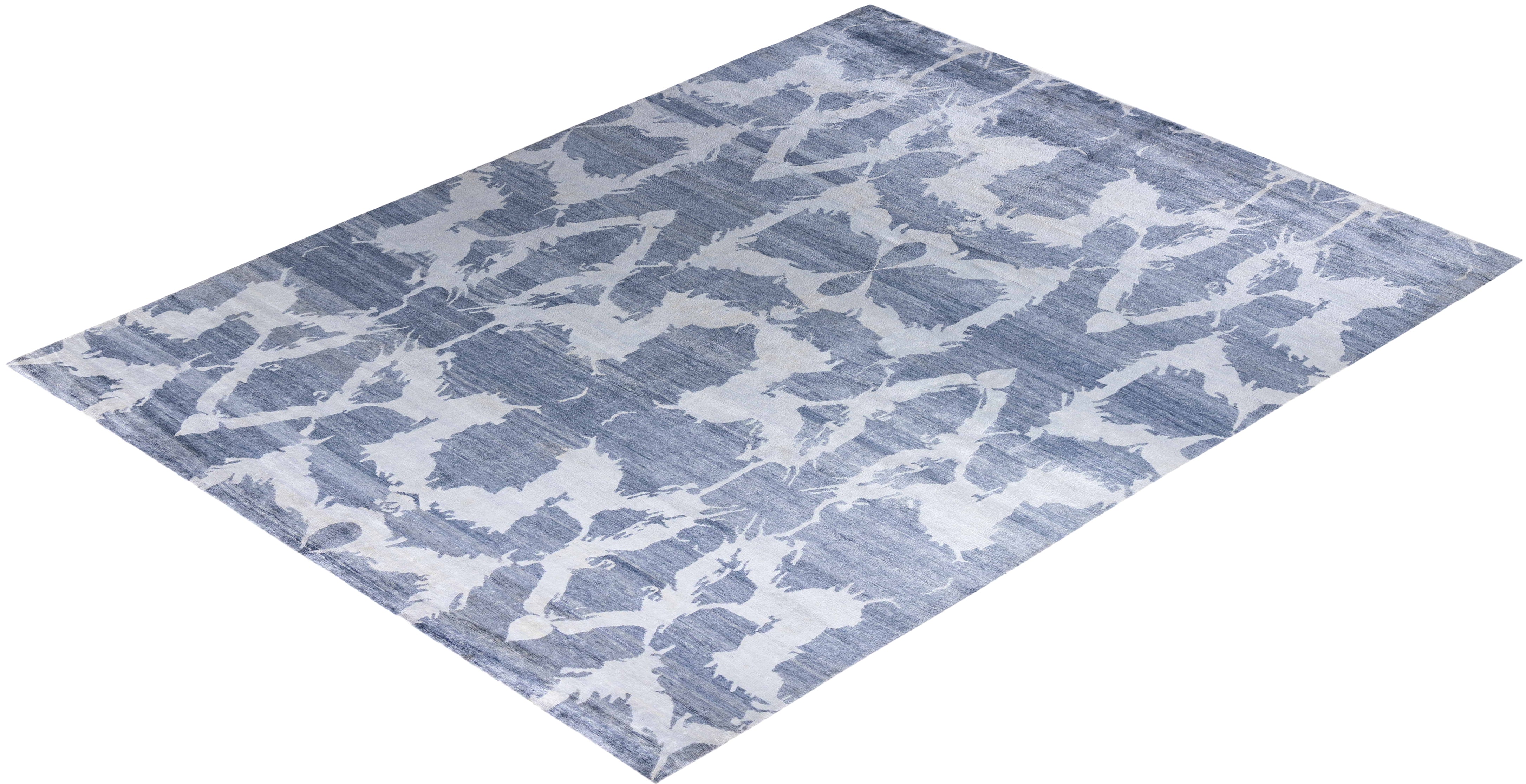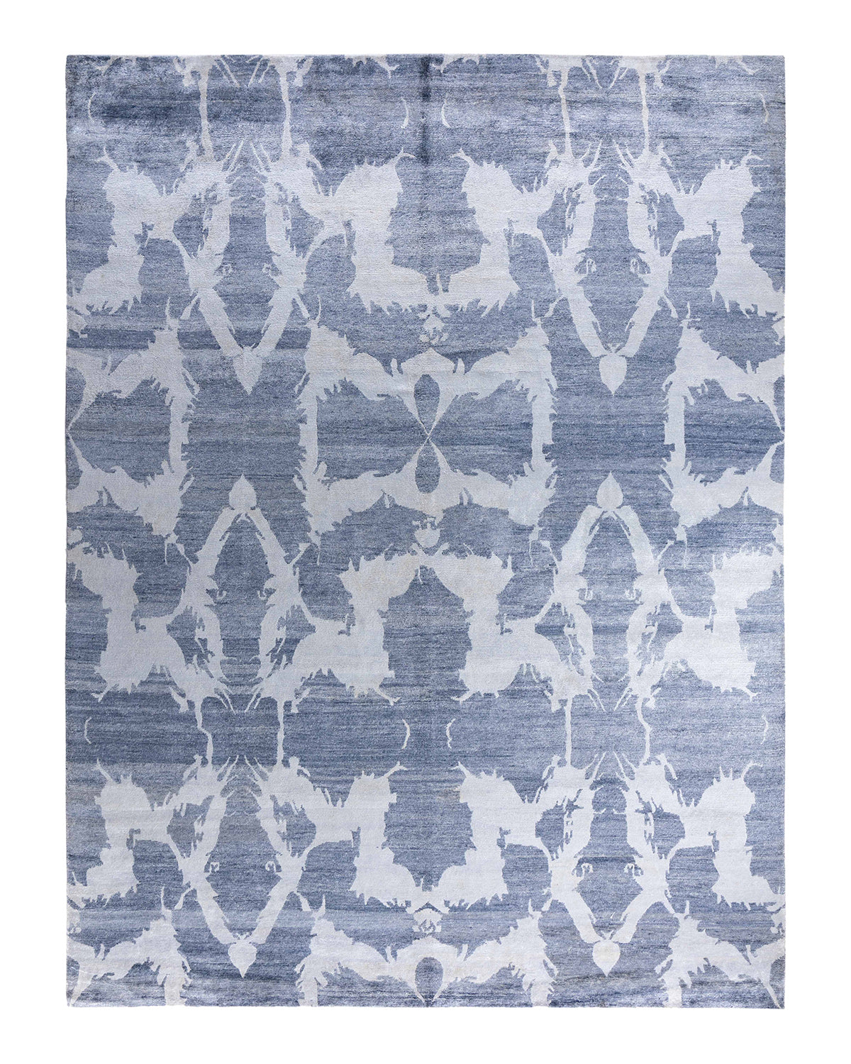 Contemporary Modern Hand Knotted Abstract Silk Gray Area Rug 9' 2" x 11' 10"