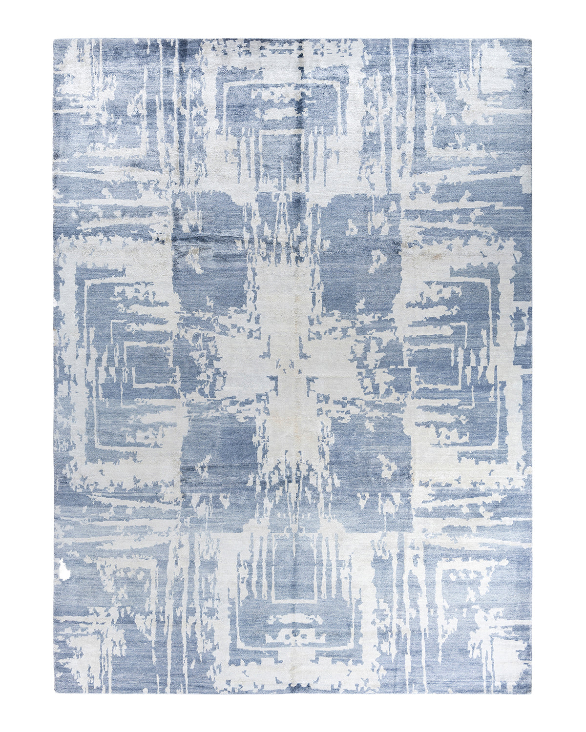 Contemporary Modern Hand Knotted Abstract Silk Gray Area Rug 9' 1" x 12' 2"