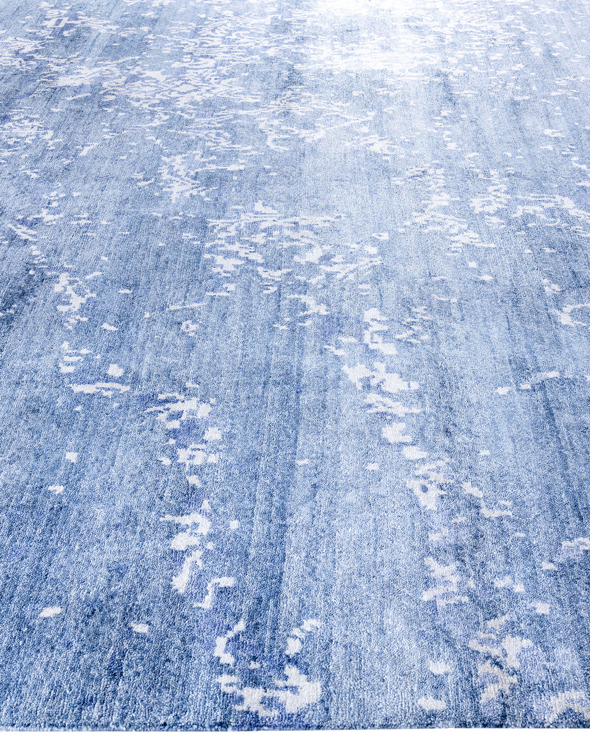 Contemporary Modern Hand Knotted Abstract Silk Gray Area Rug 9' 1" x 12' 0"