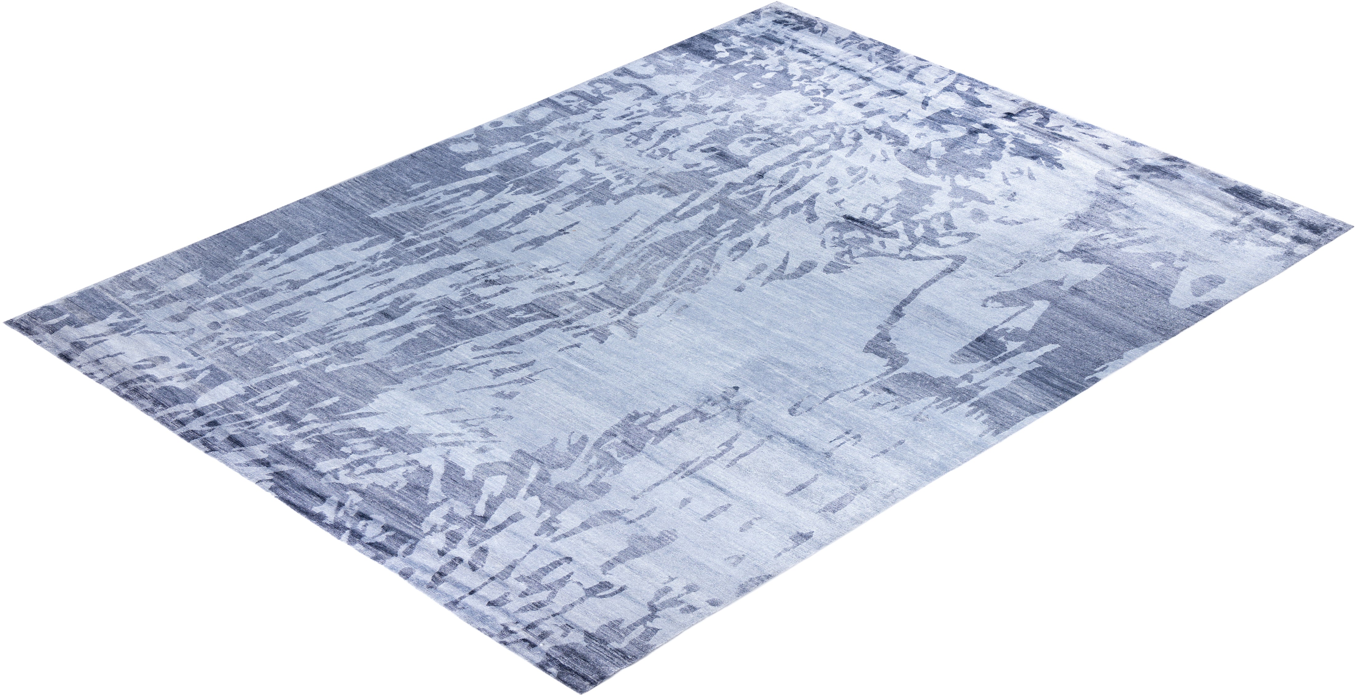 Contemporary Modern Hand Knotted Abstract Silk Gray Area Rug 9' 1" x 12' 1"