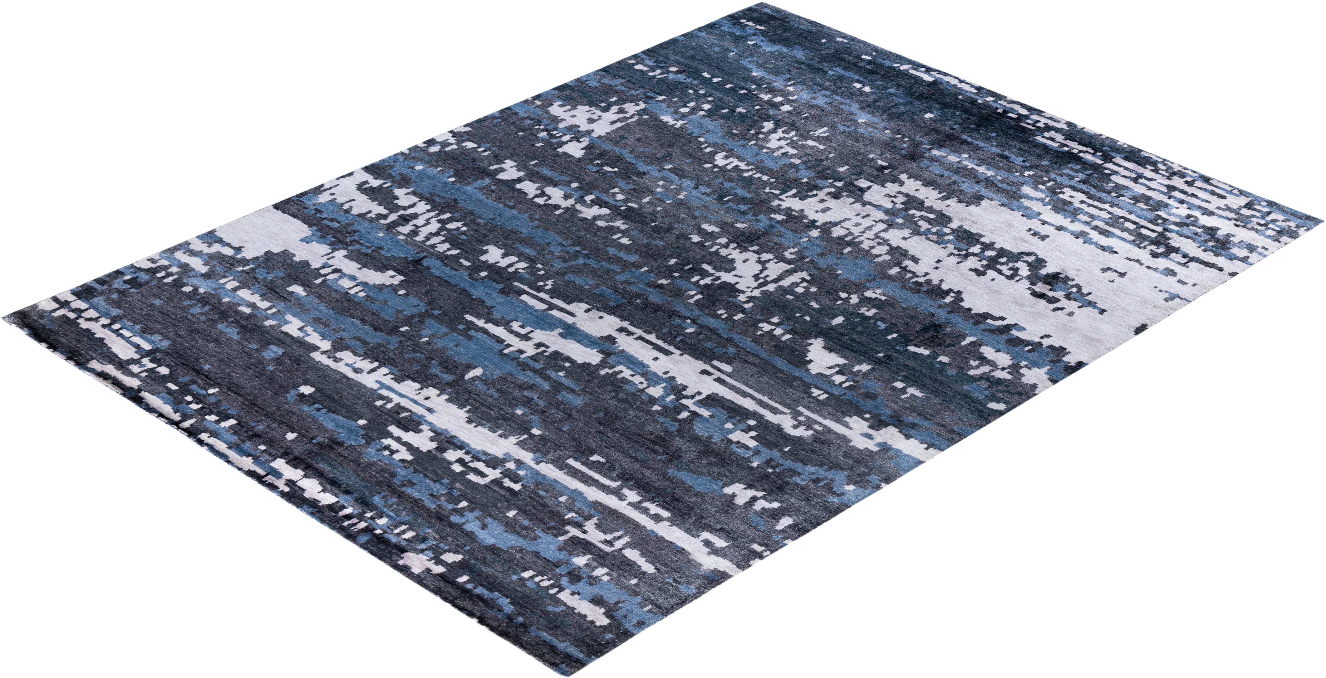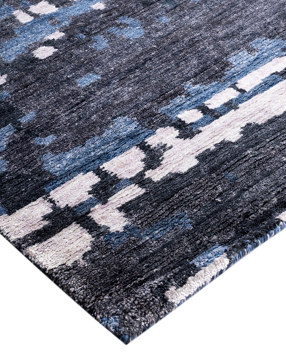 Contemporary Modern Hand Knotted Abstract Silk Black Area Rug 9' 1" x 12' 1"