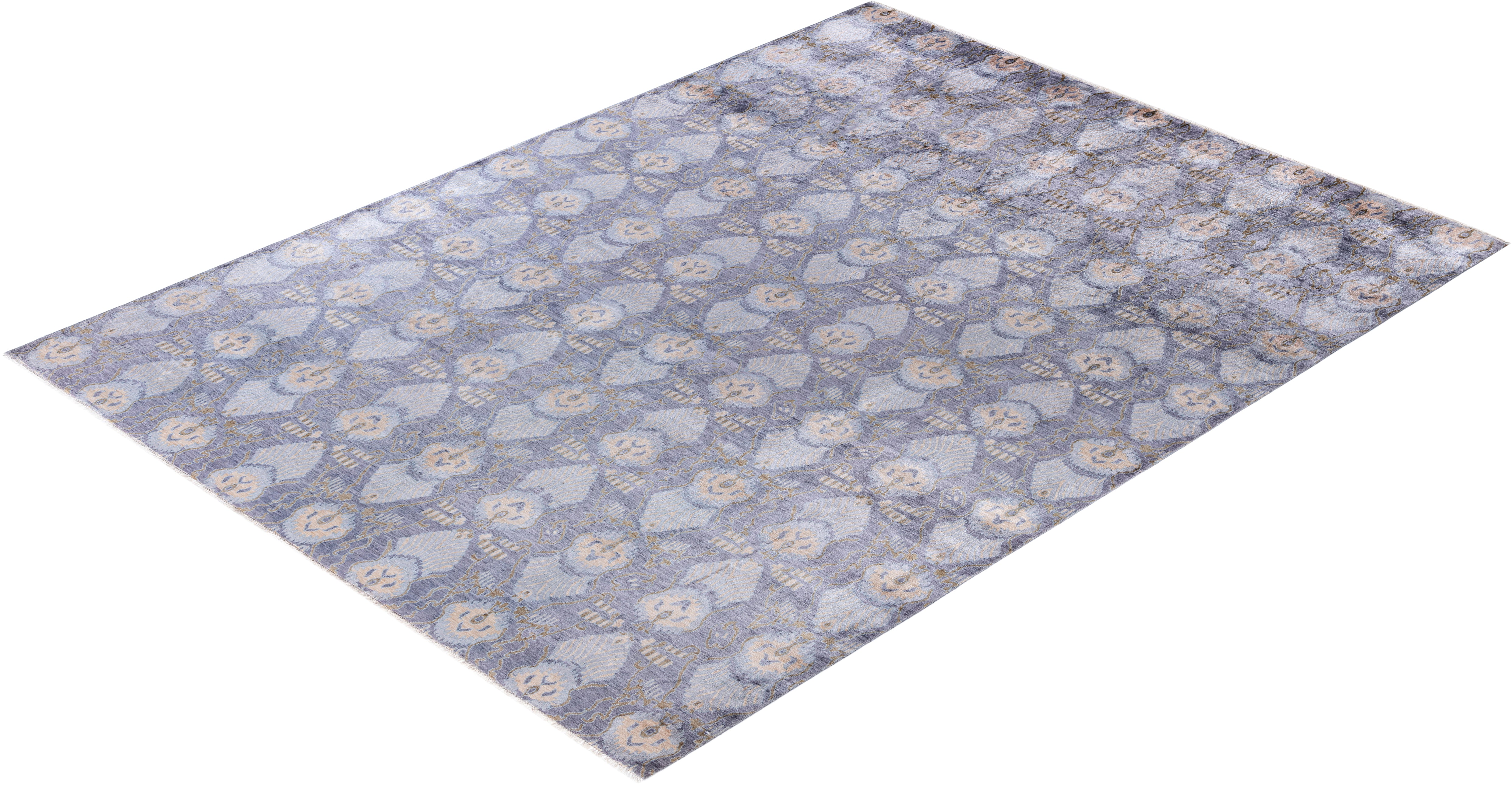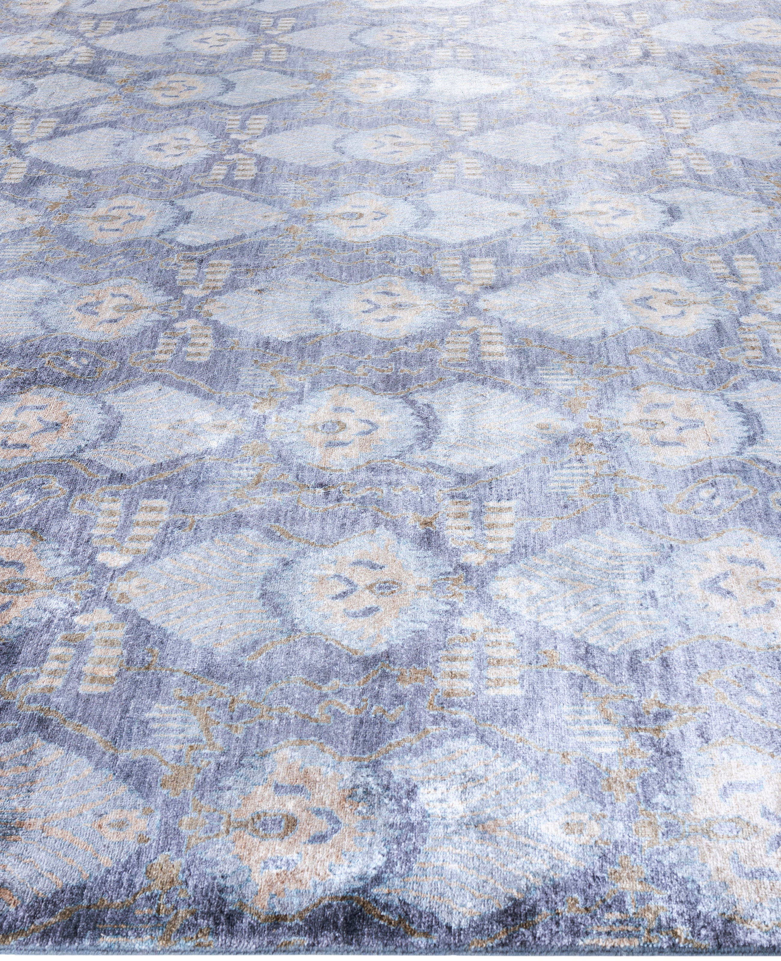 Traditional Geometric Silk Hand Knotted Gray Area Rug 9' 0" x 12' 2"