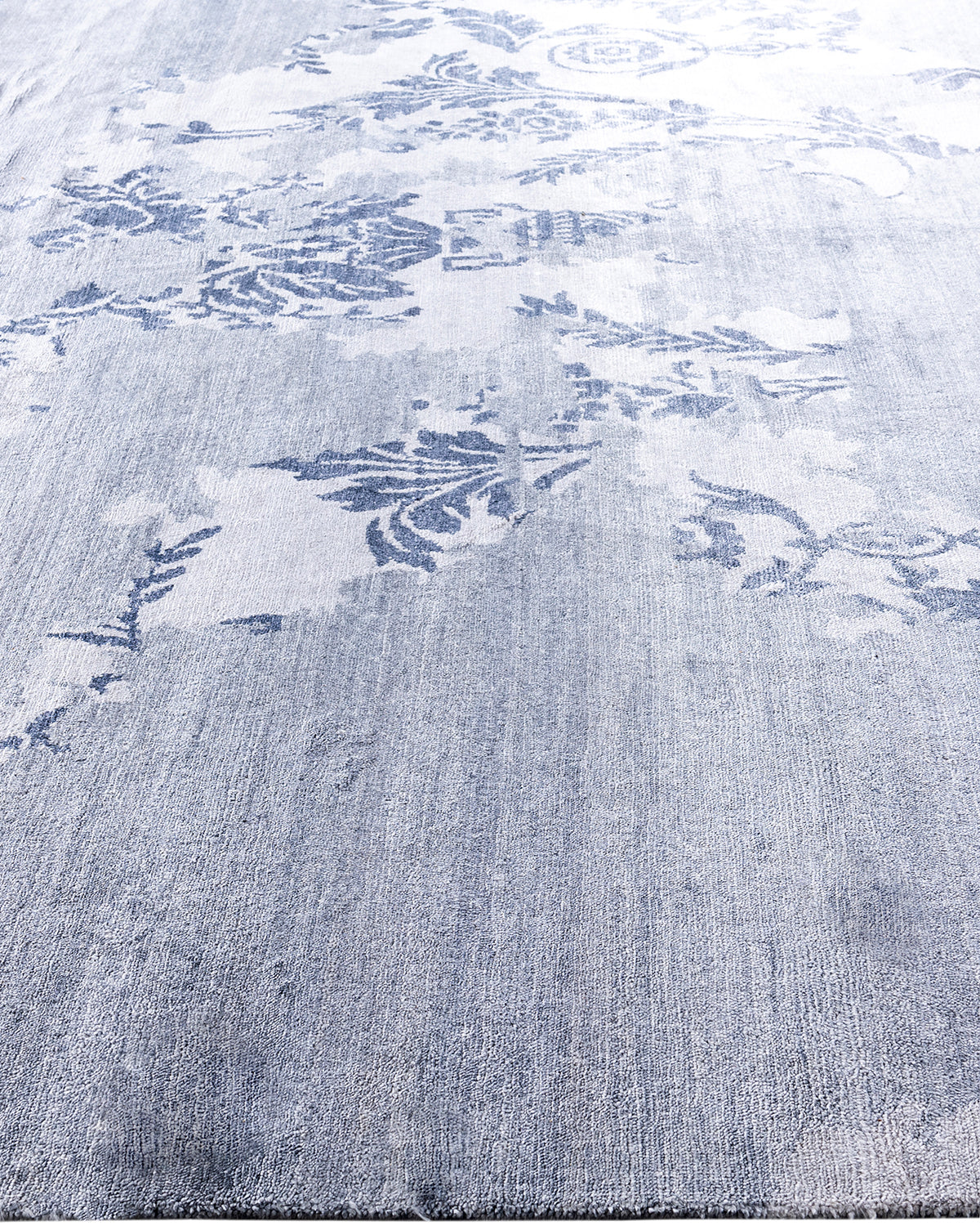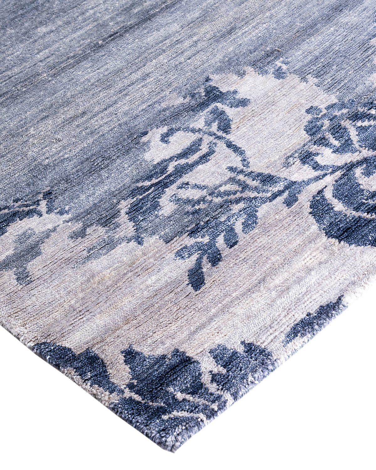 Contemporary Modern Hand Knotted Abstract Silk Gray Area Rug 9' 2" x 12' 4"