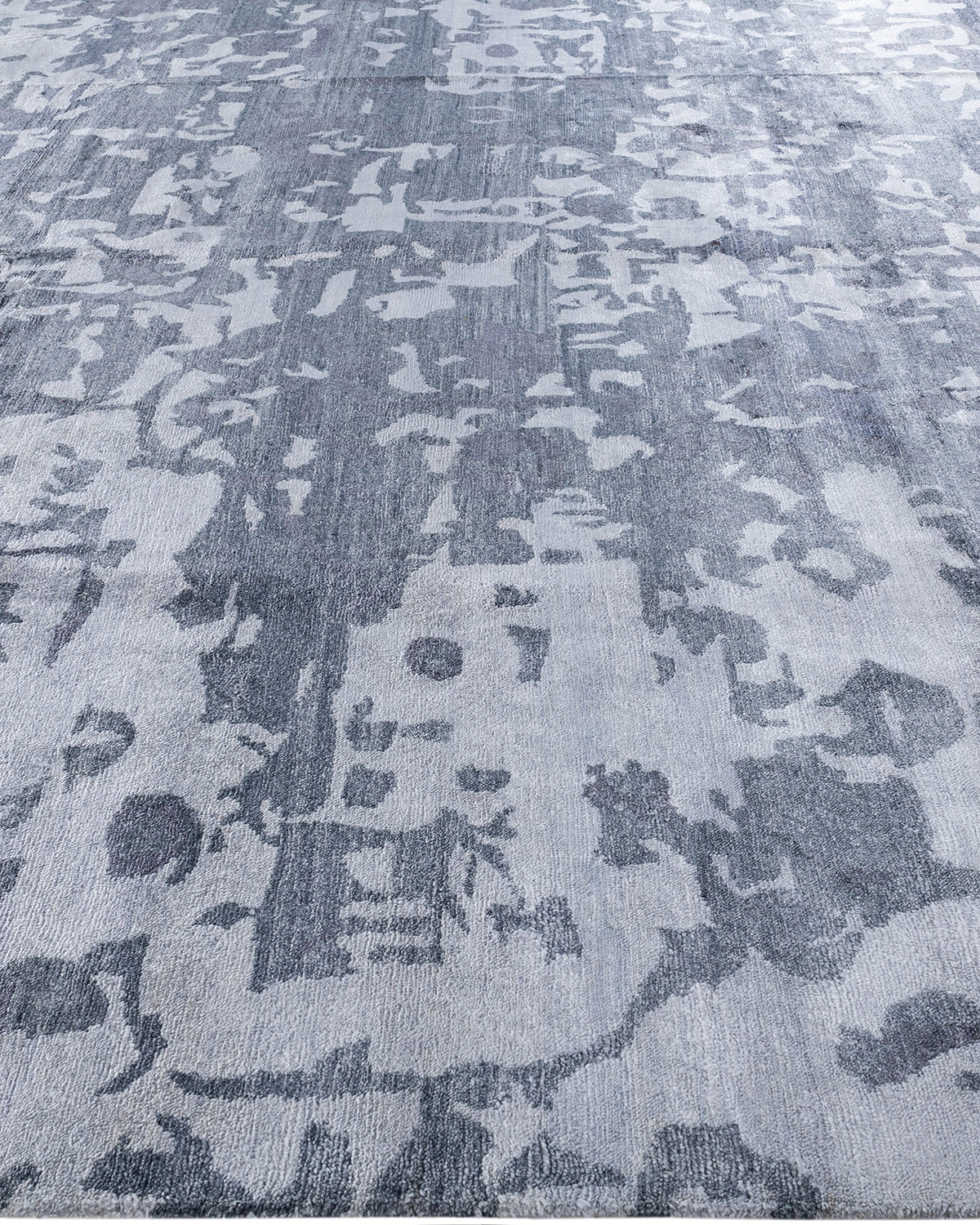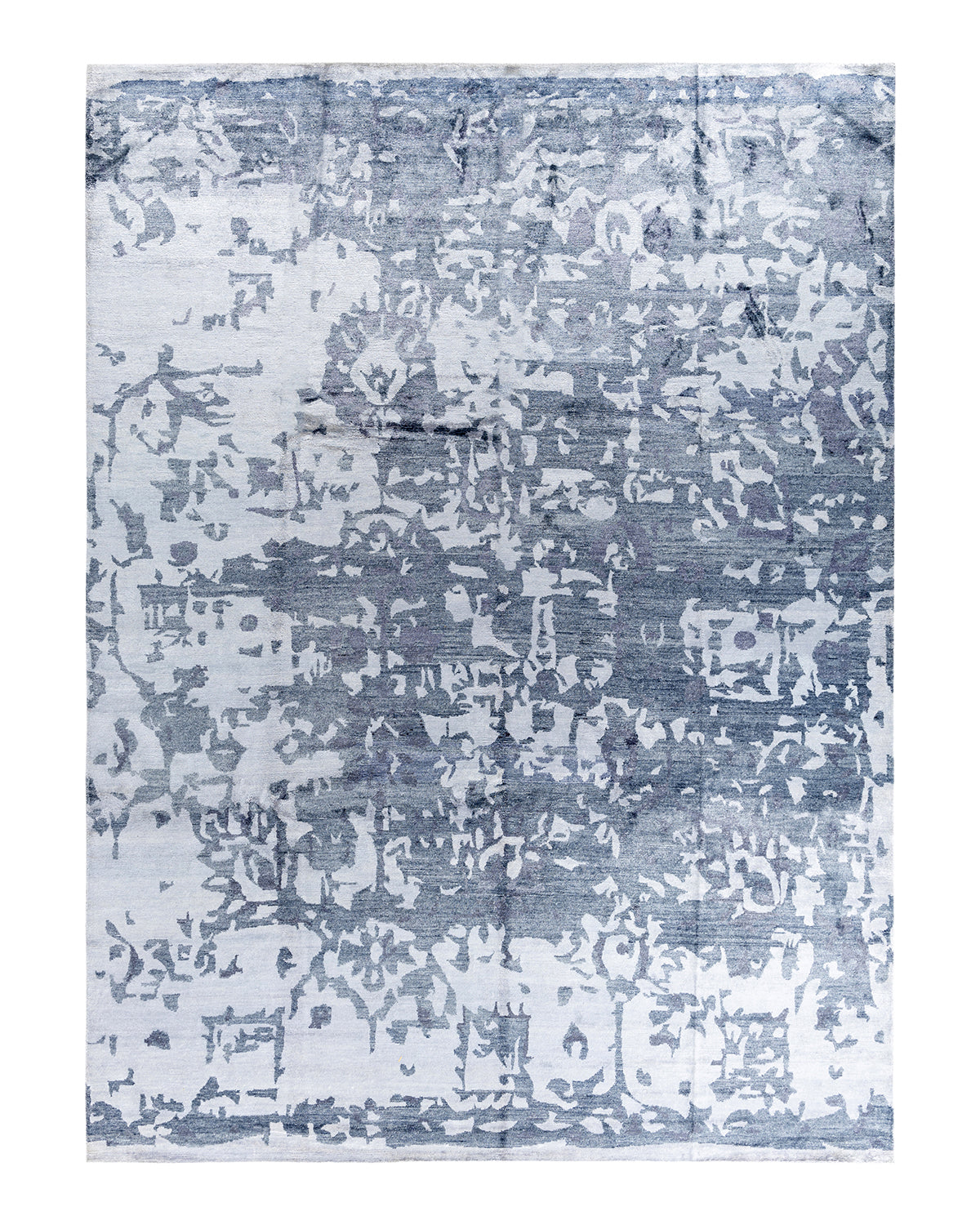 Contemporary Modern Hand Knotted Abstract Silk Gray Area Rug 9' 2" x 12' 4"