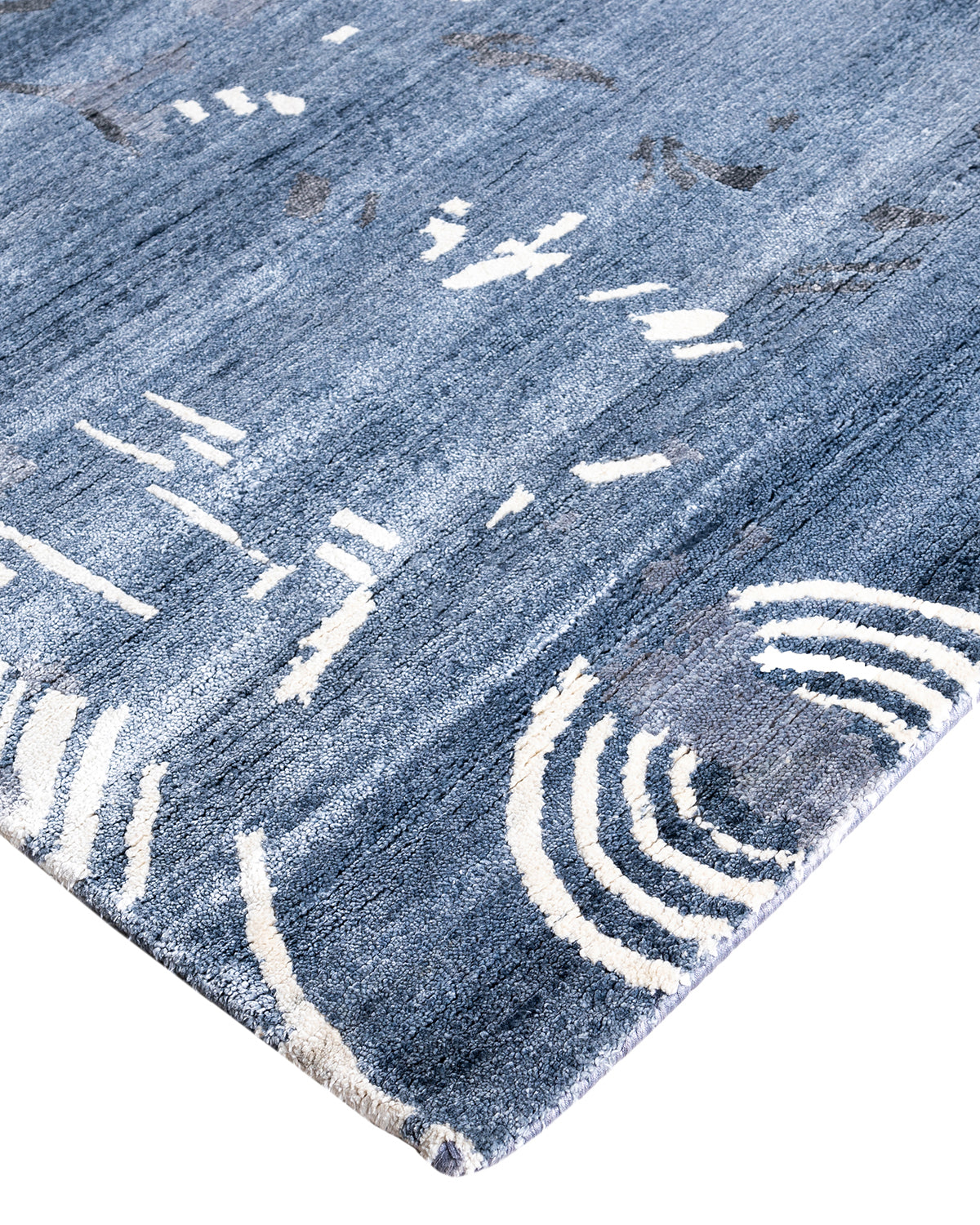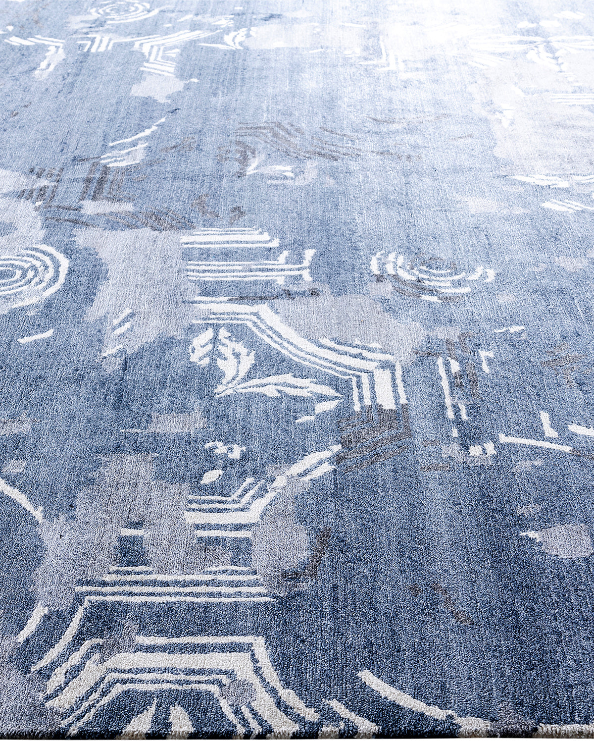 Contemporary Modern Hand Knotted Abstract Silk Gray Area Rug 9' 1" x 12' 3"