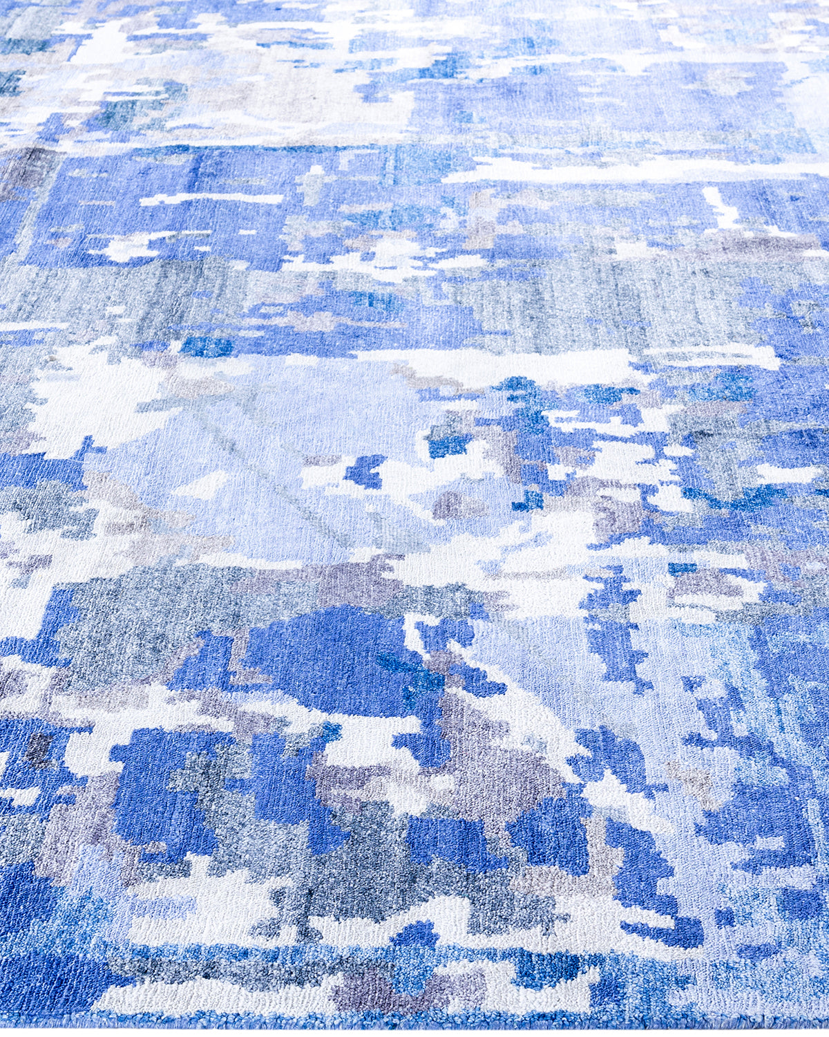 Contemporary Modern Hand Knotted Abstract Silk Purple Area Rug 9' 1" x 11' 10"