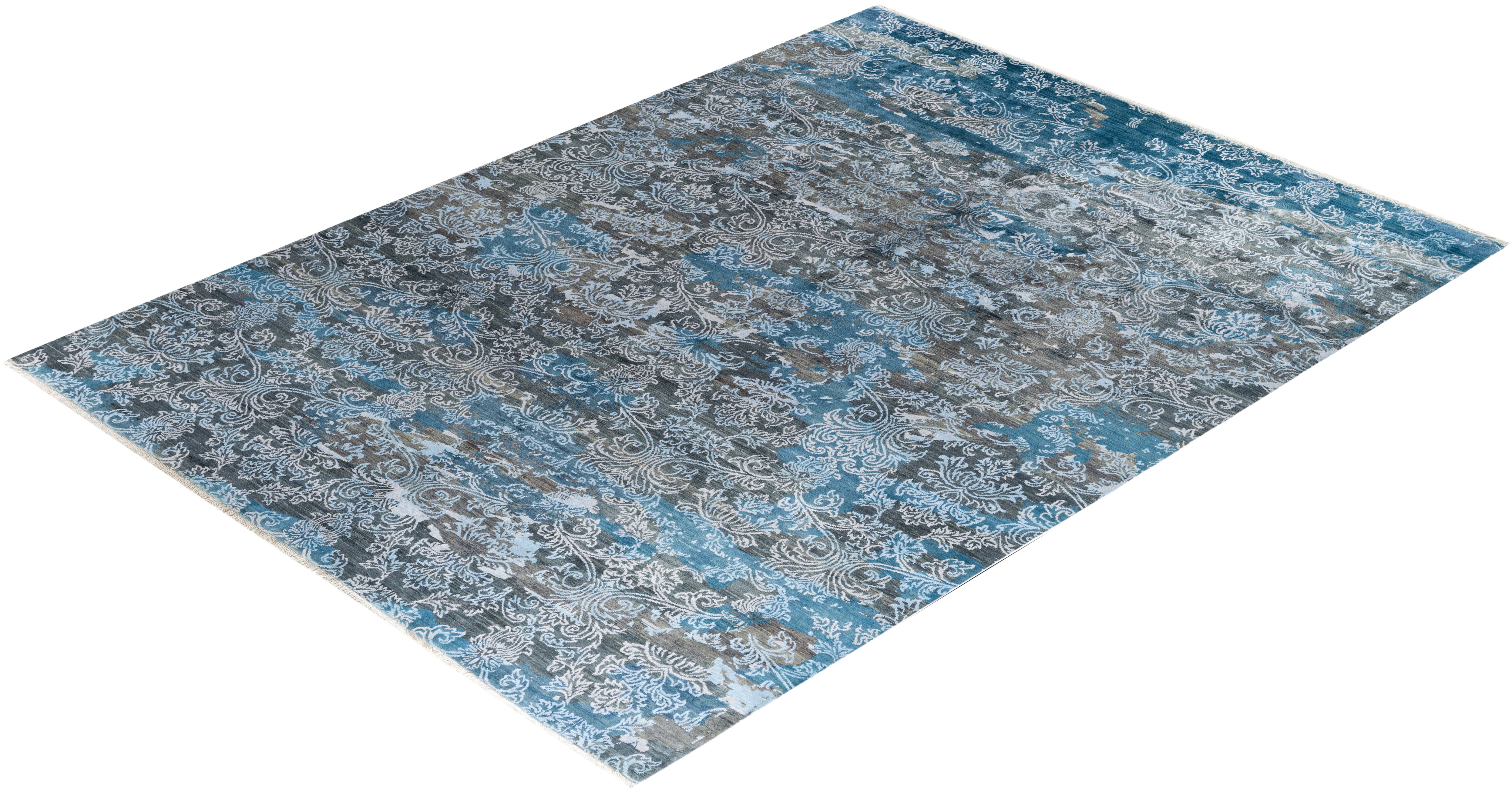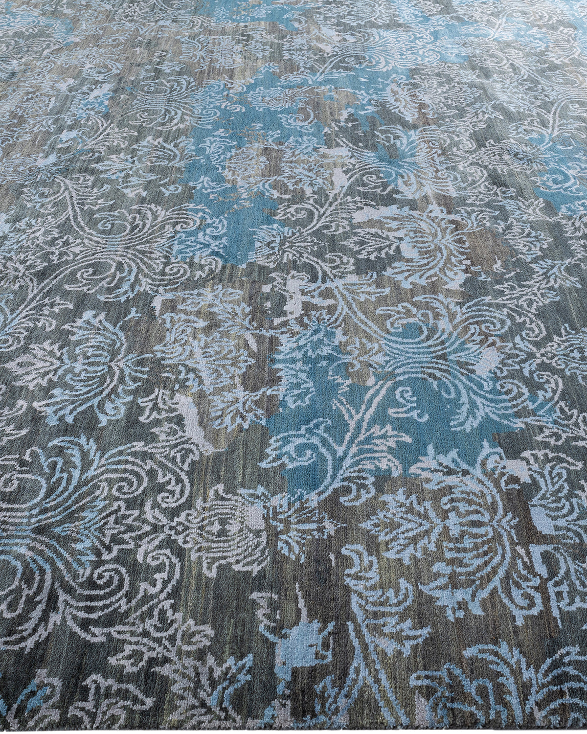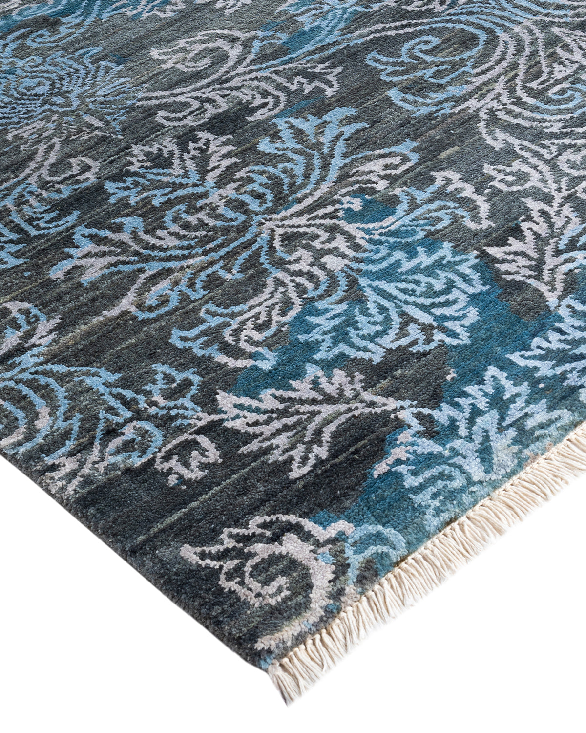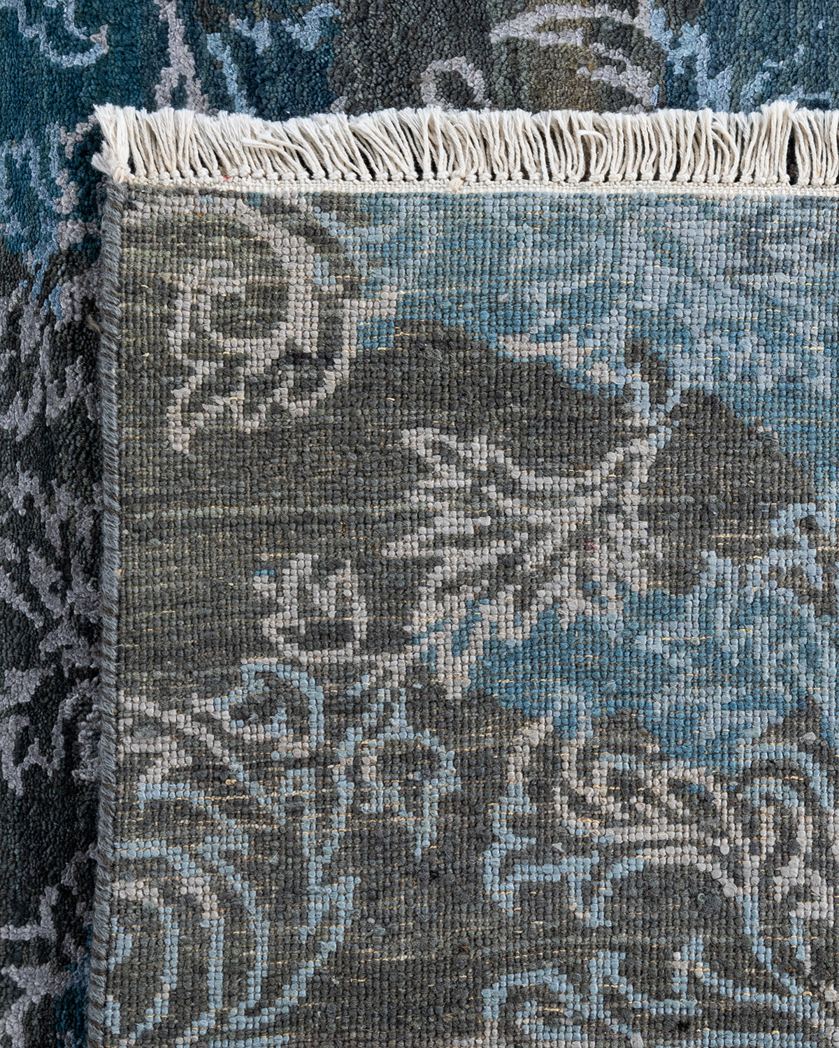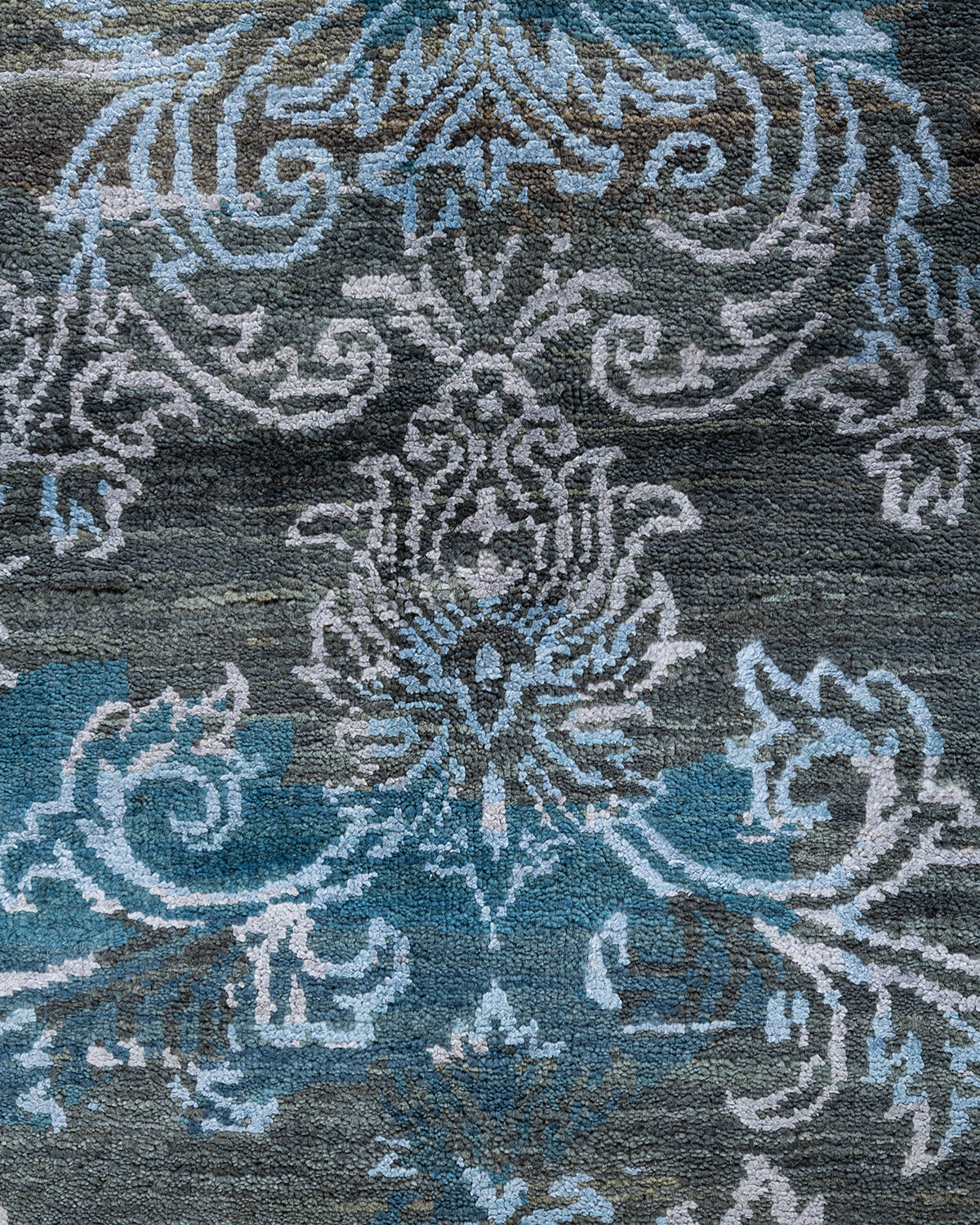 Traditional Ikat Hand Knotted Abstract Silk & Wool Blend Gray Area Rug 9' 0" x 12' 2"