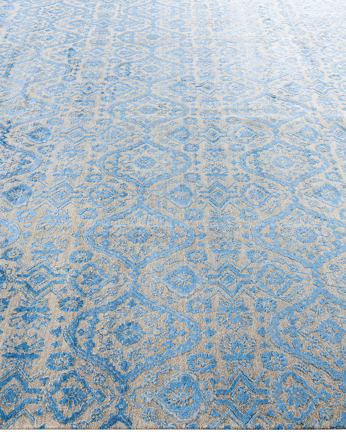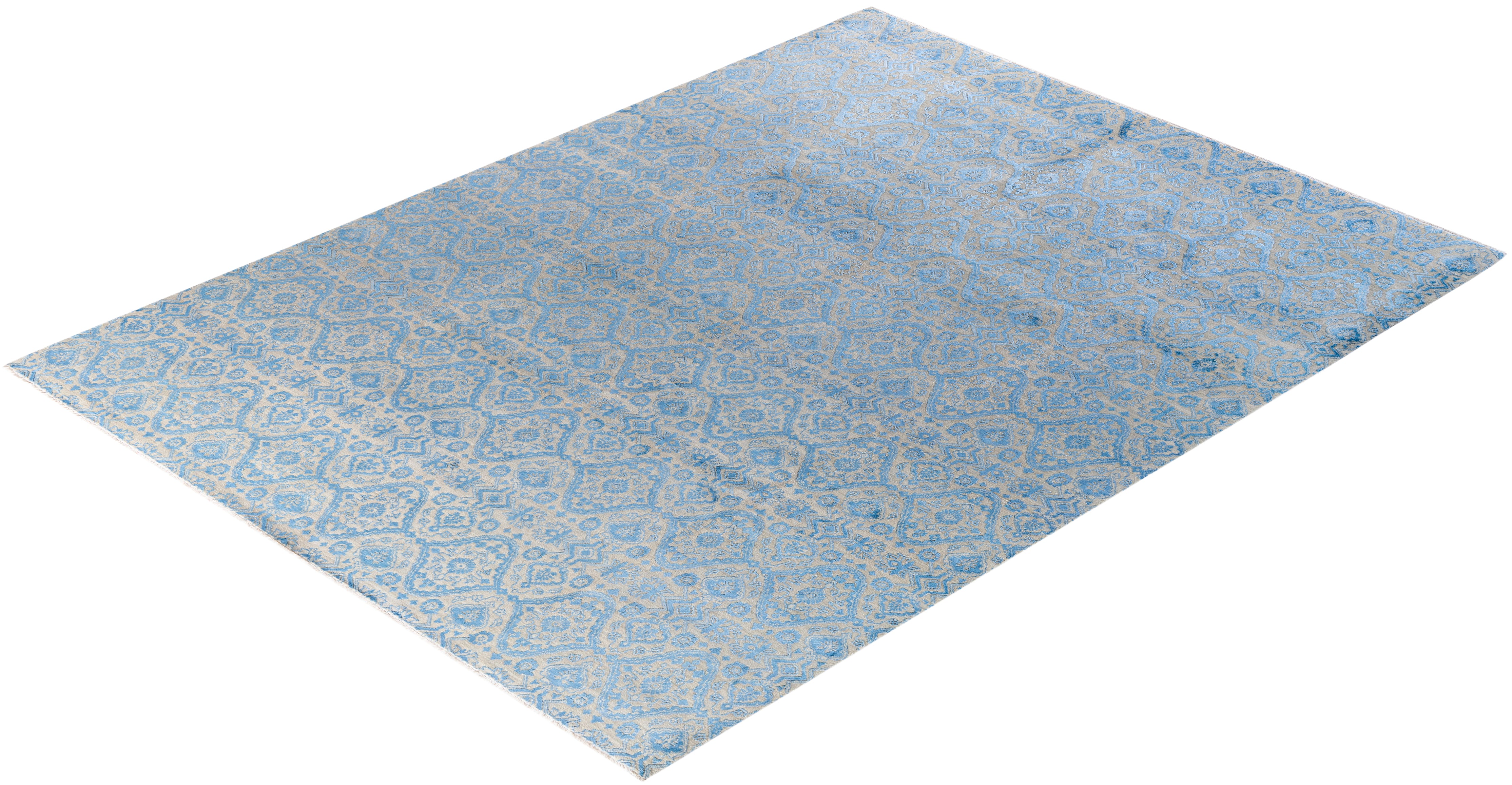 Traditional Ikat Hand Knotted Geometric Silk & Wool Blend Beige Area Rug 9' 3" x 12' 4"
