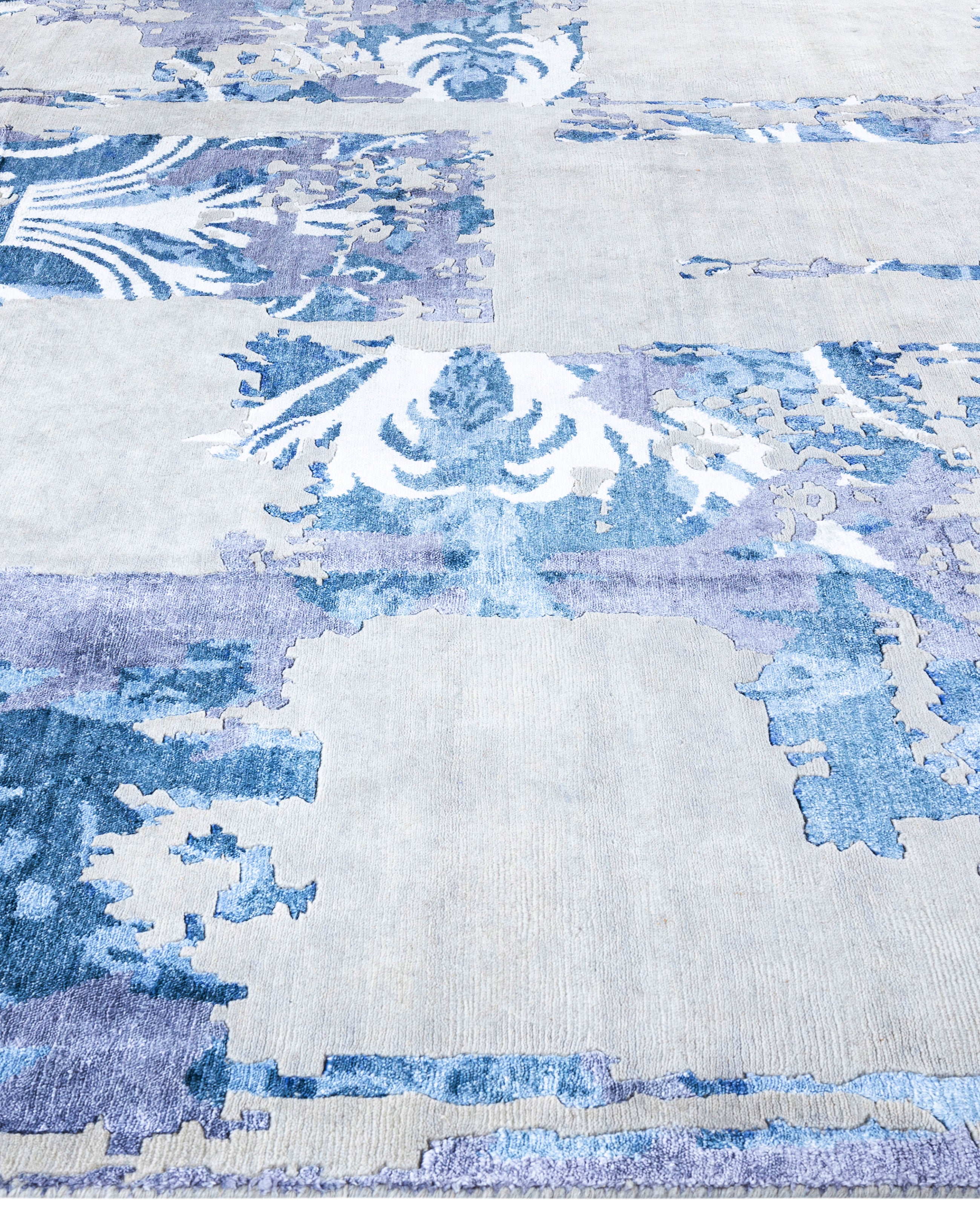 Contemporary Abstarct Wool, Silk Hand Knotted Gray Area Rug 9' 3" x 12' 2"