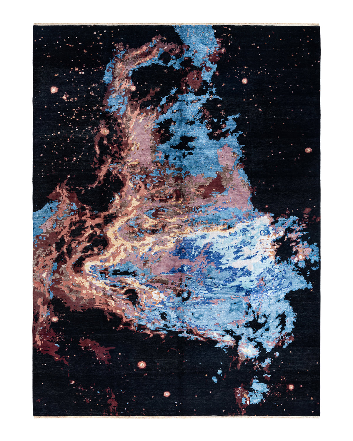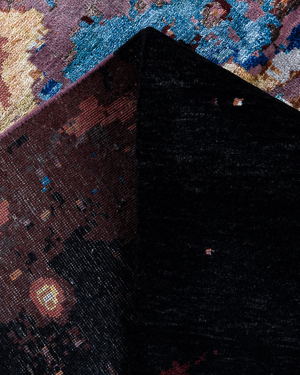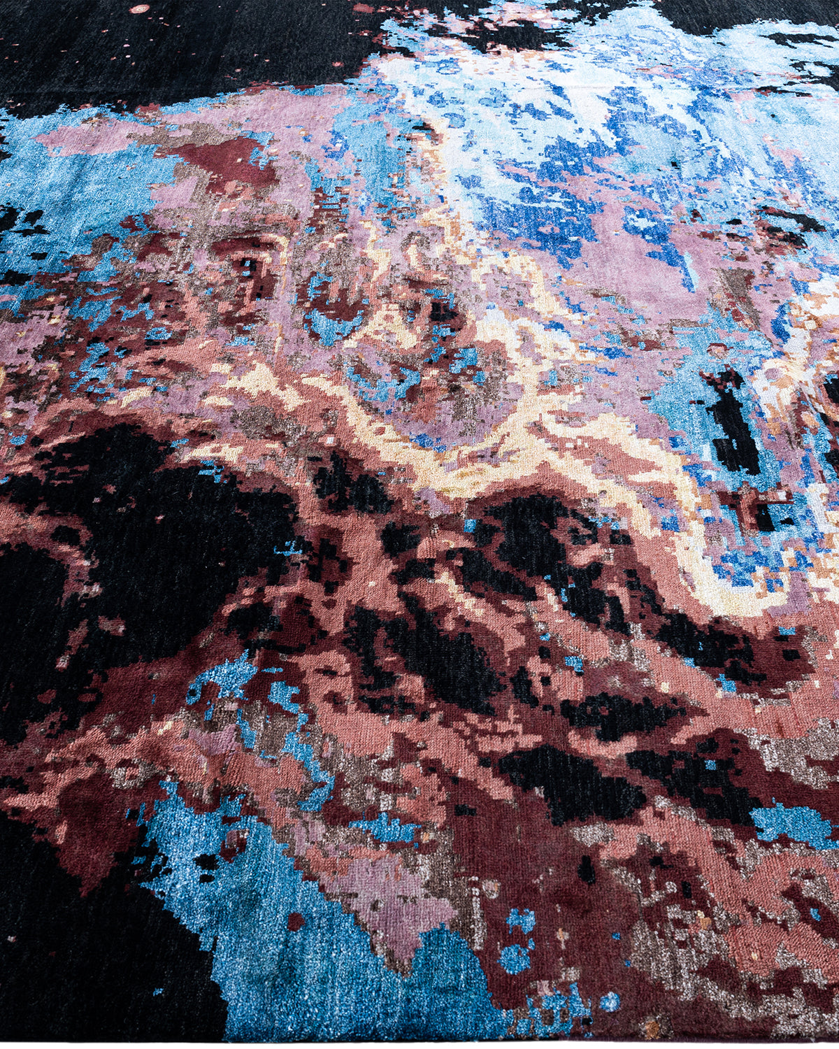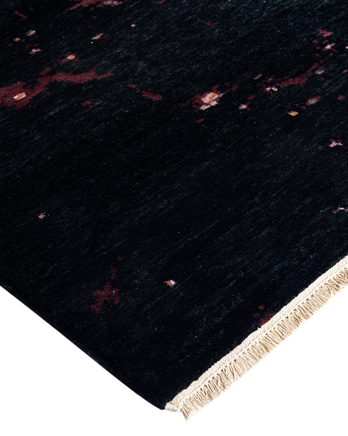 Traditional Ikat Hand Knotted Abstract Silk & Wool Blend Black Area Rug 9' 1" x 12' 1"