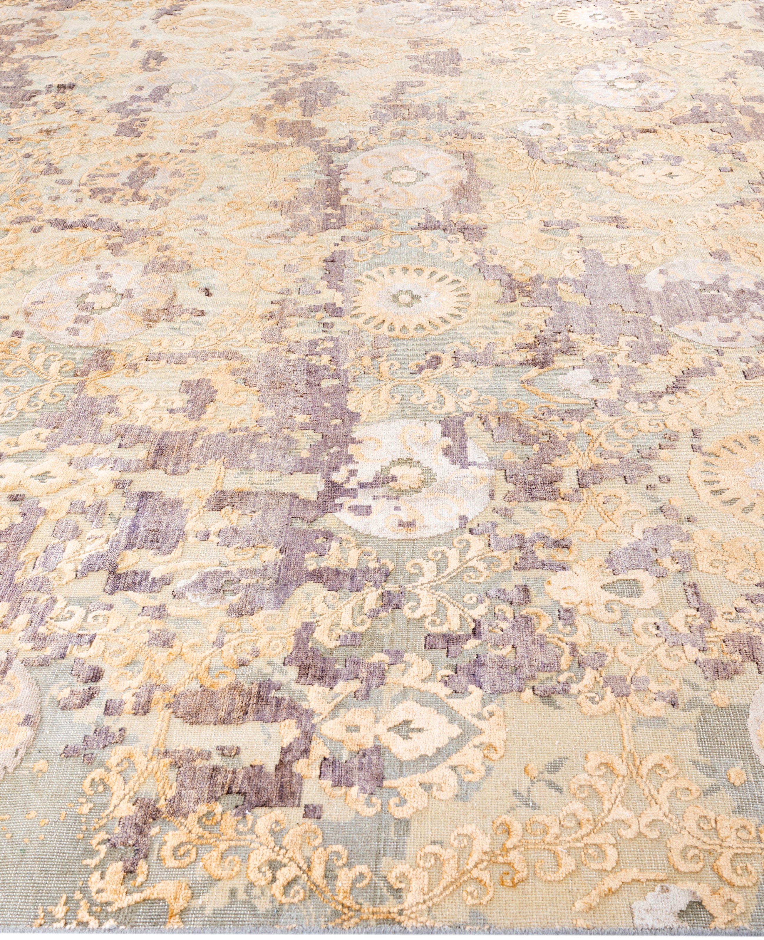 Traditional Abstarct Wool, Silk Hand Knotted Gray Area Rug 8' 10" x 11' 10"