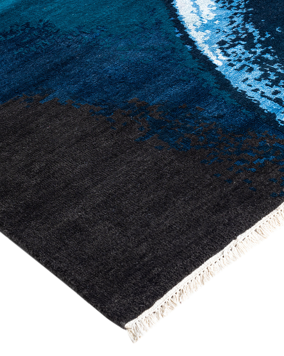Traditional Ikat Hand Knotted Abstract Silk & Wool Blend Black Area Rug 9' 2" x 12' 1"
