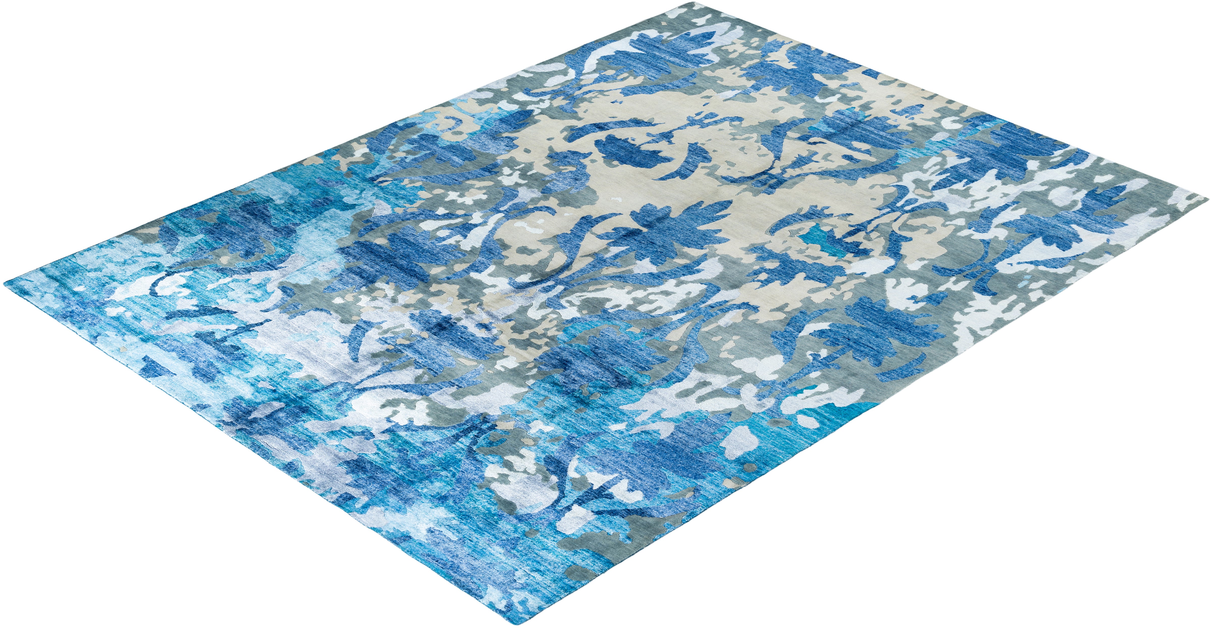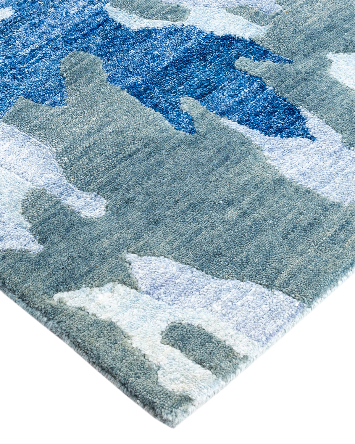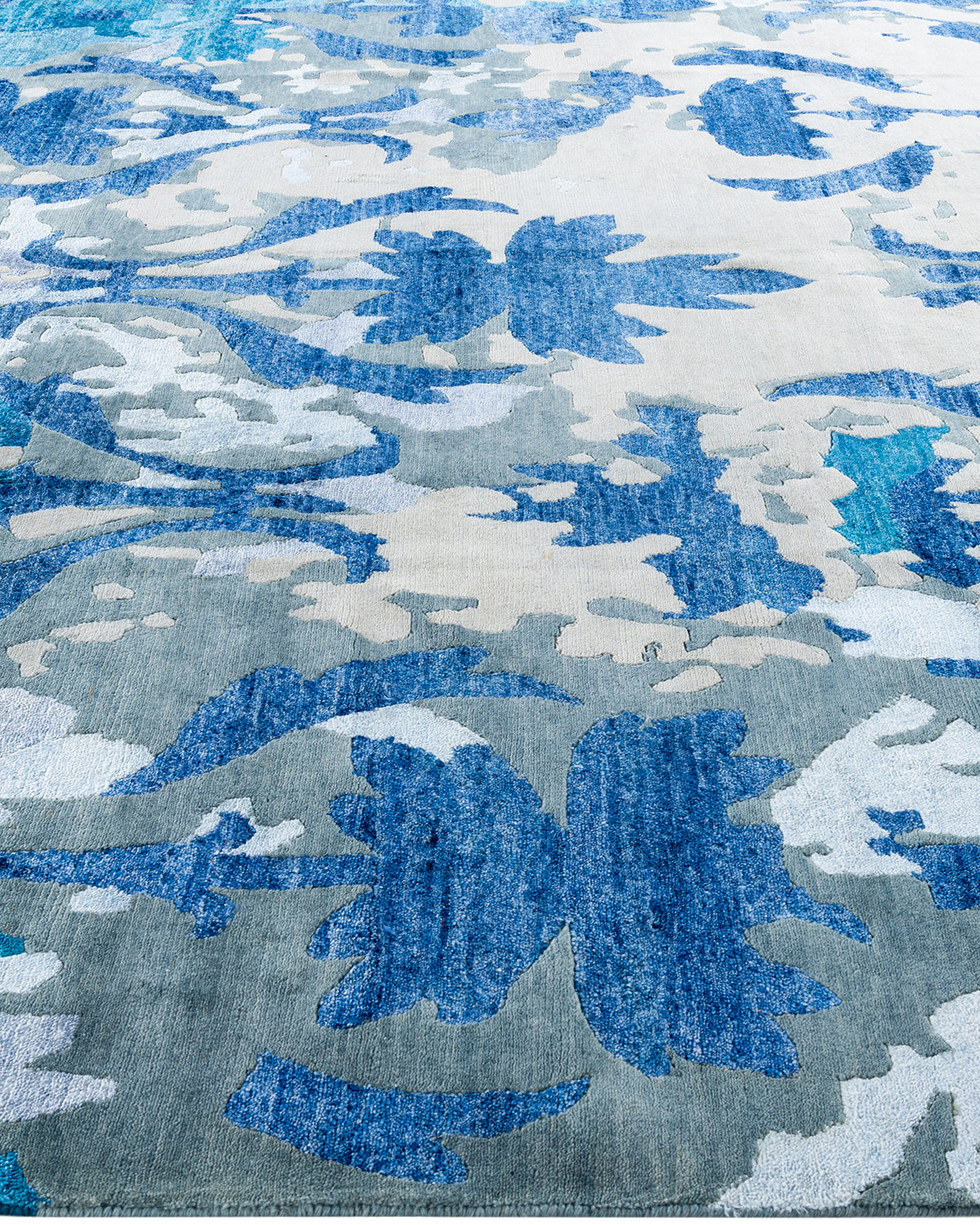Contemporary Modern Hand Knotted Abstract Silk & Wool Blend Gray Area Rug 9' 0" x 11' 10"