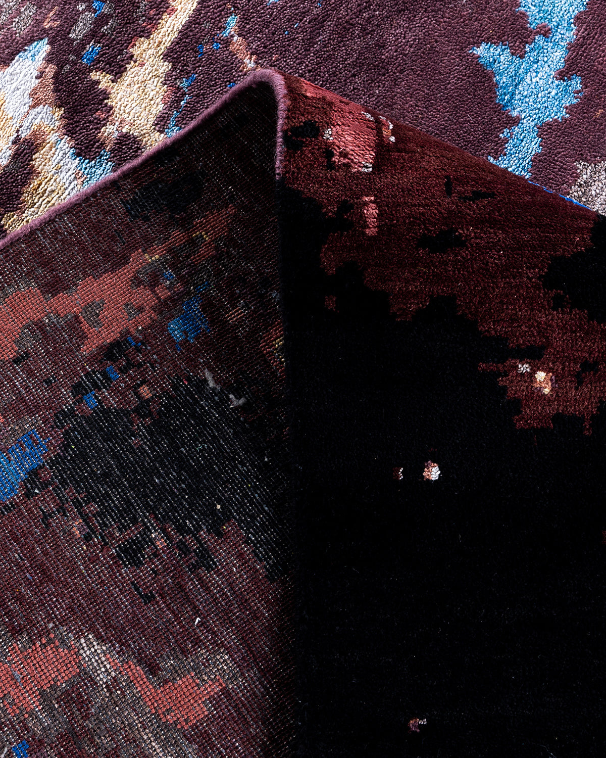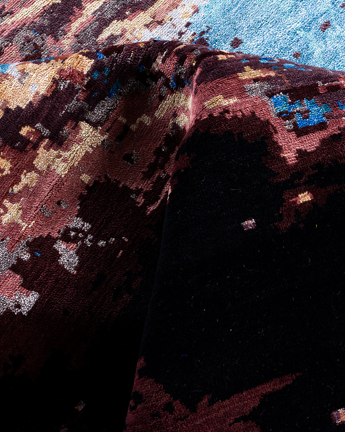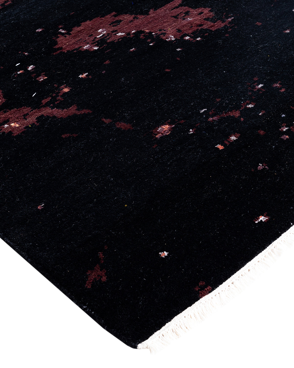 Traditional Ikat Hand Knotted Abstract Silk & Wool Blend Black Area Rug 9' 2" x 12' 3"