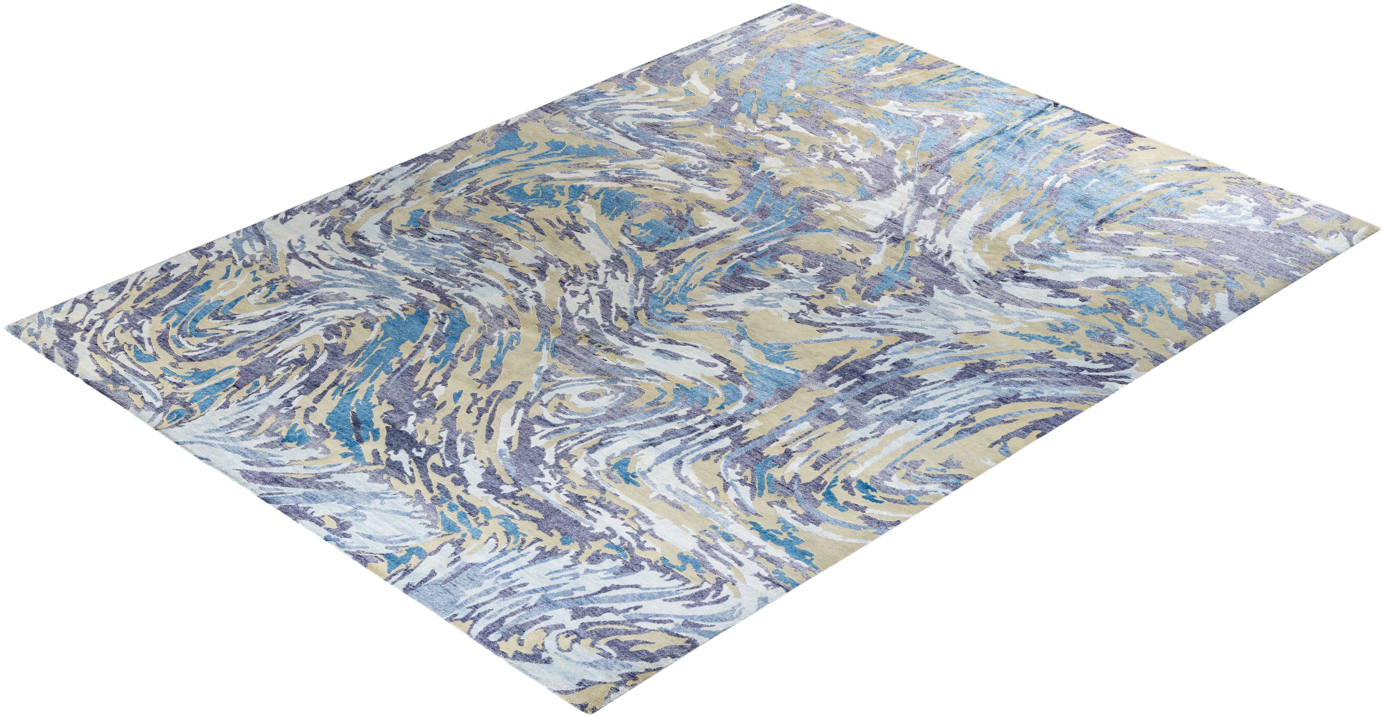 Contemporary Modern Hand Knotted Abstract Silk & Wool Blend Ivory Area Rug 9' 1" x 12' 0"