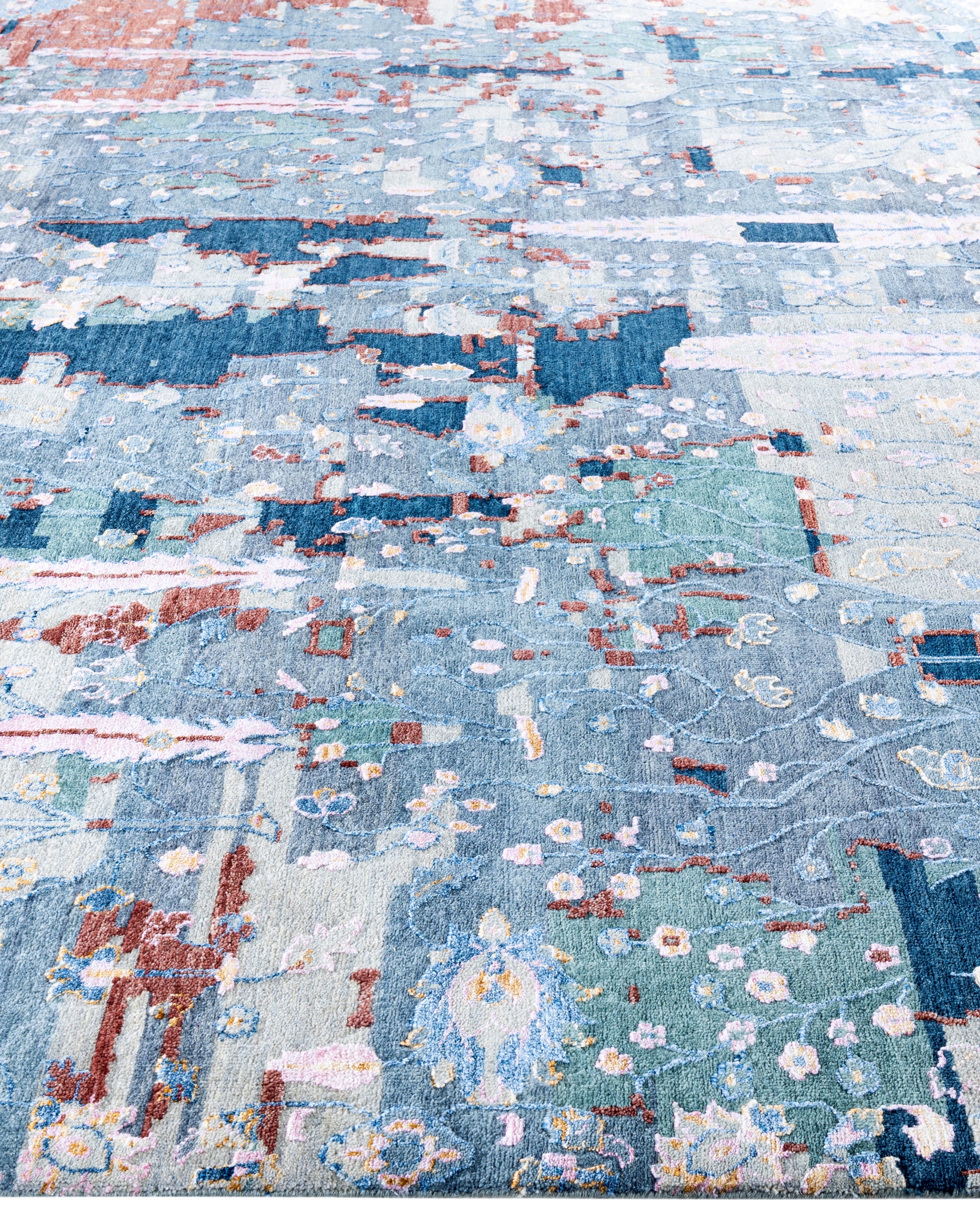 Traditional Abstarct Wool, Silk Hand Knotted Gray Area Rug 9' 2" x 12' 2"