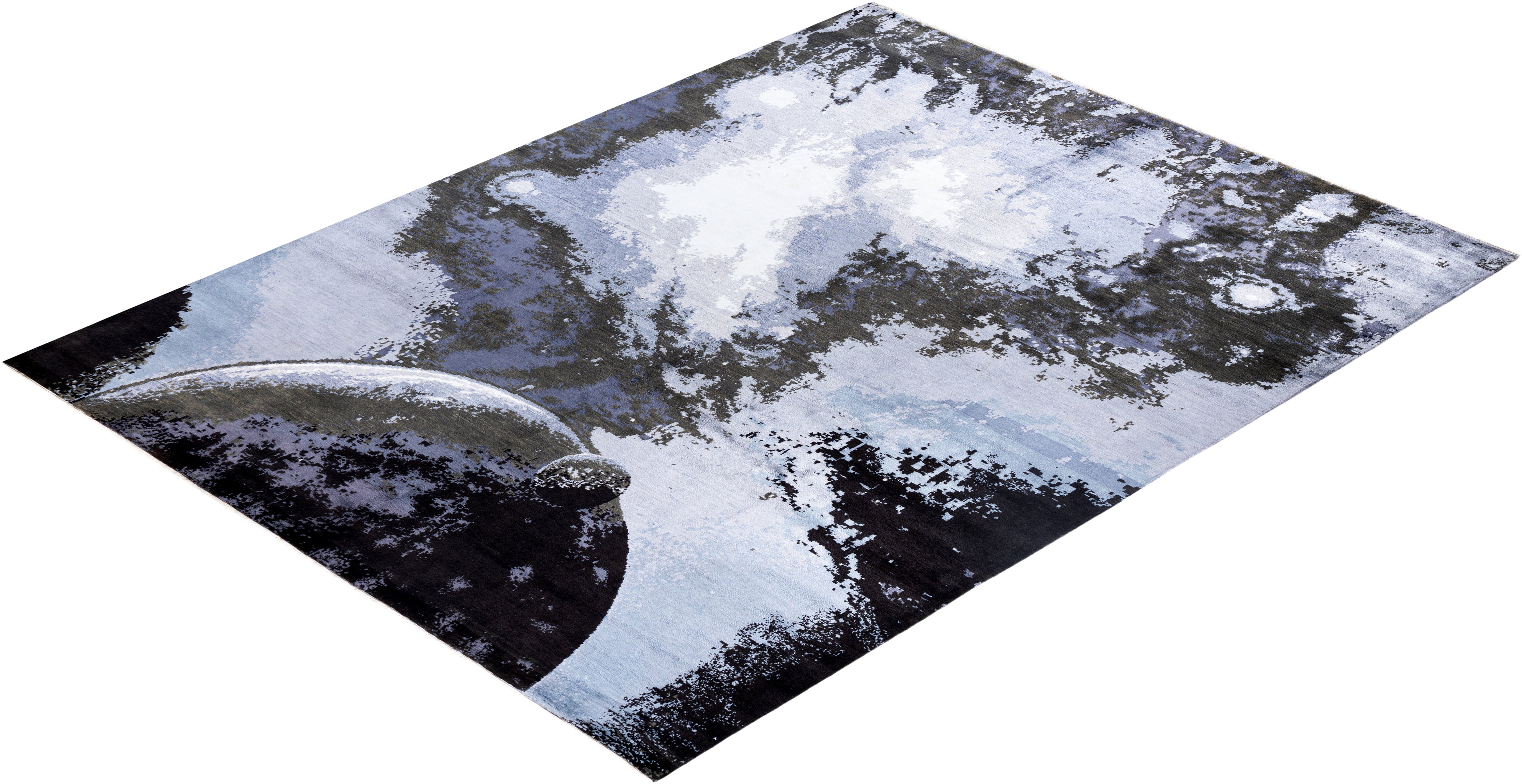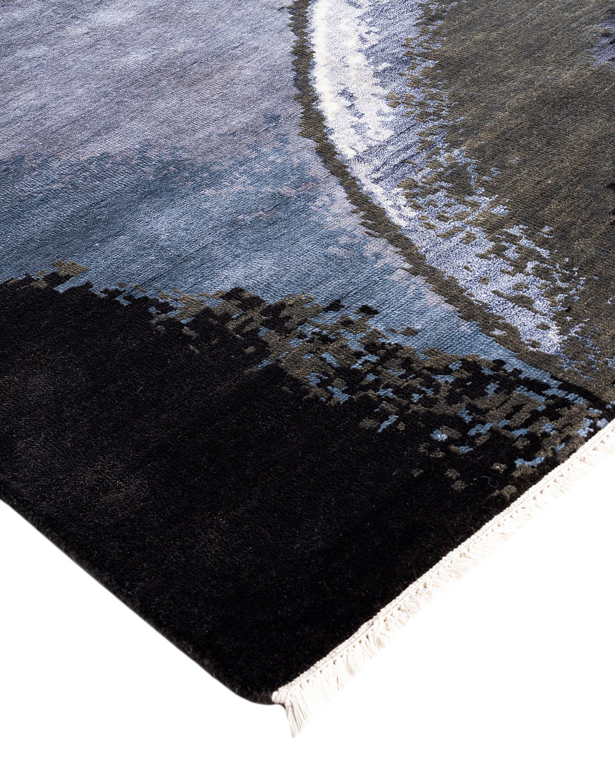 Traditional Ikat Hand Knotted Abstract Silk & Wool Blend Gray Area Rug 9' 4" x 12' 2"