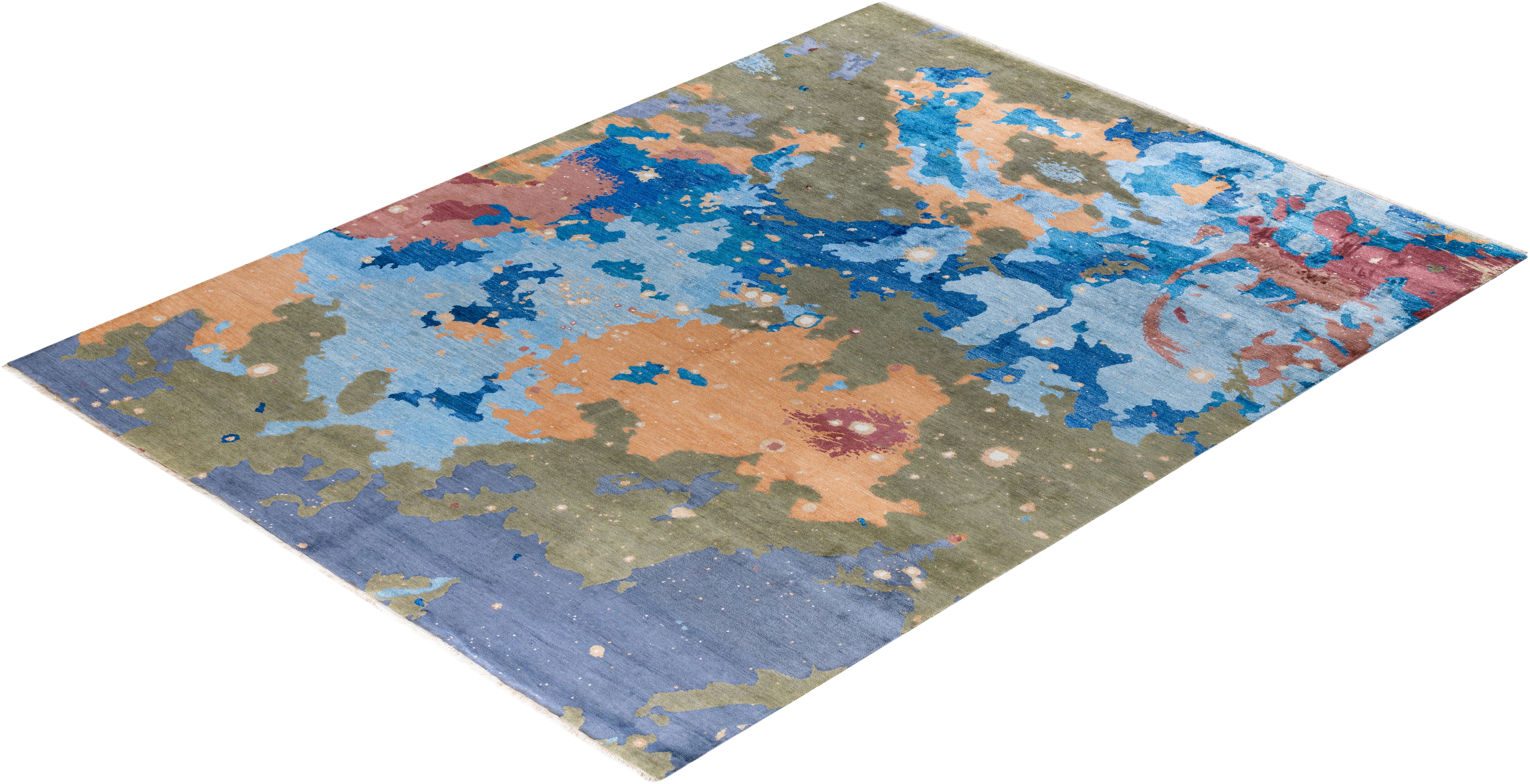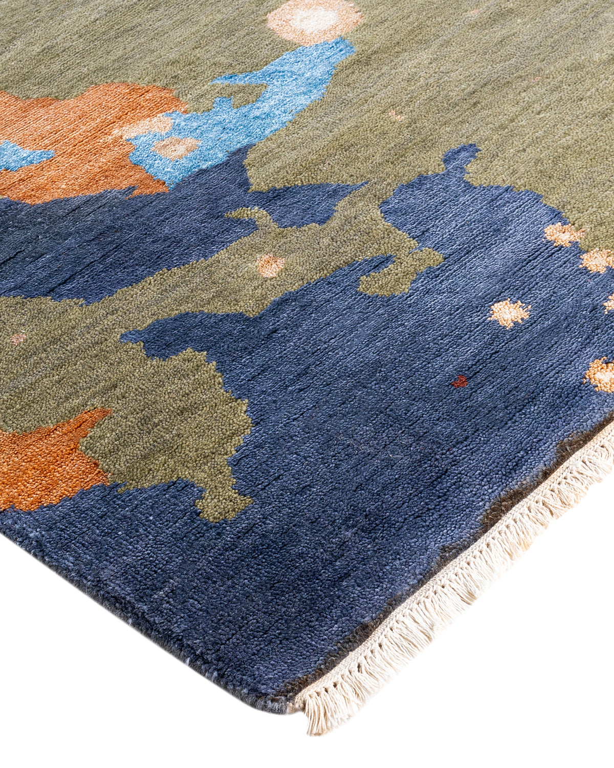 Traditional Ikat Hand Knotted Abstract Silk & Wool Blend Green Area Rug 9' 2" x 12' 1"