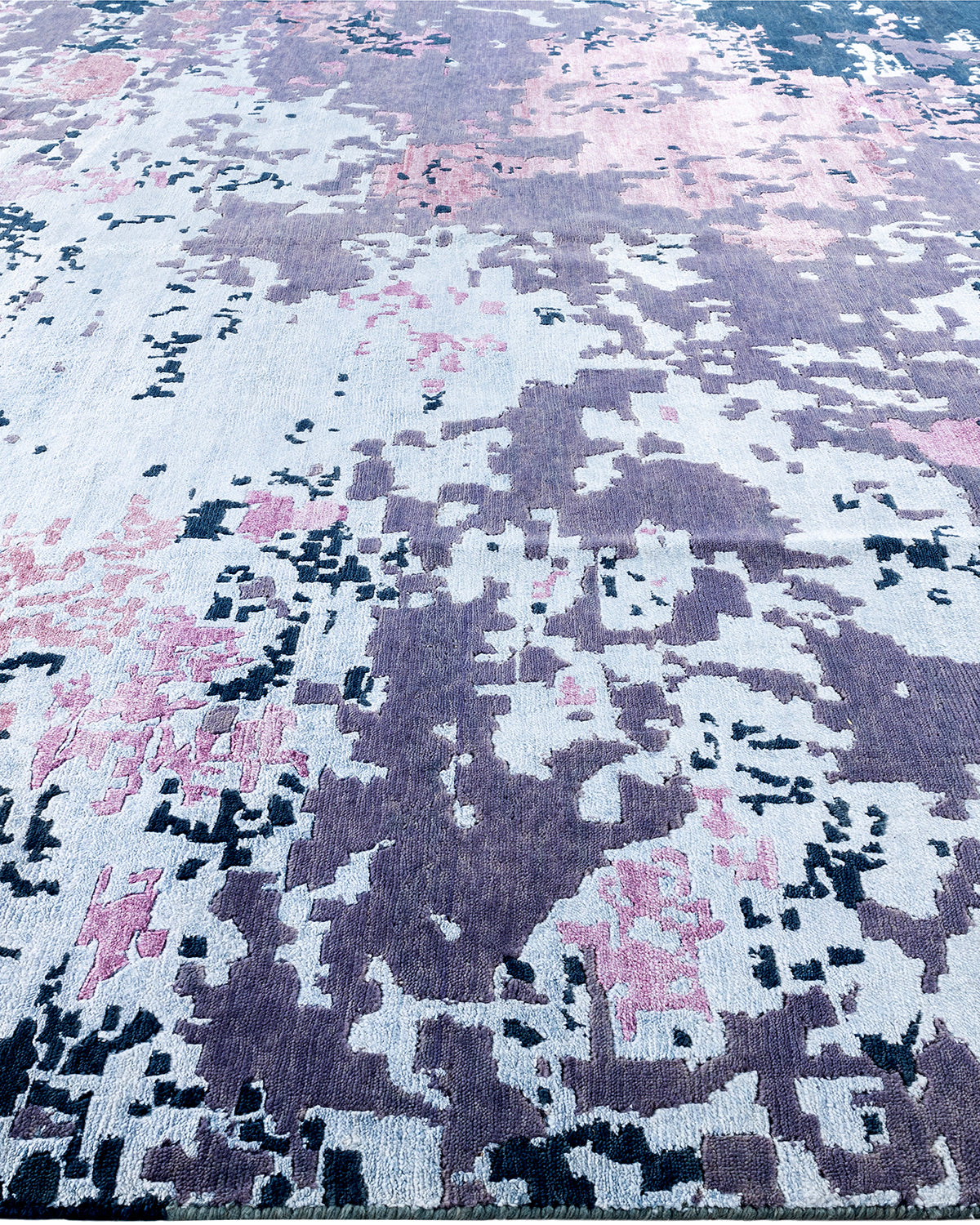 Contemporary Modern Hand Knotted Abstract Silk & Wool Blend Gray Area Rug 8' 10" x 12' 0"