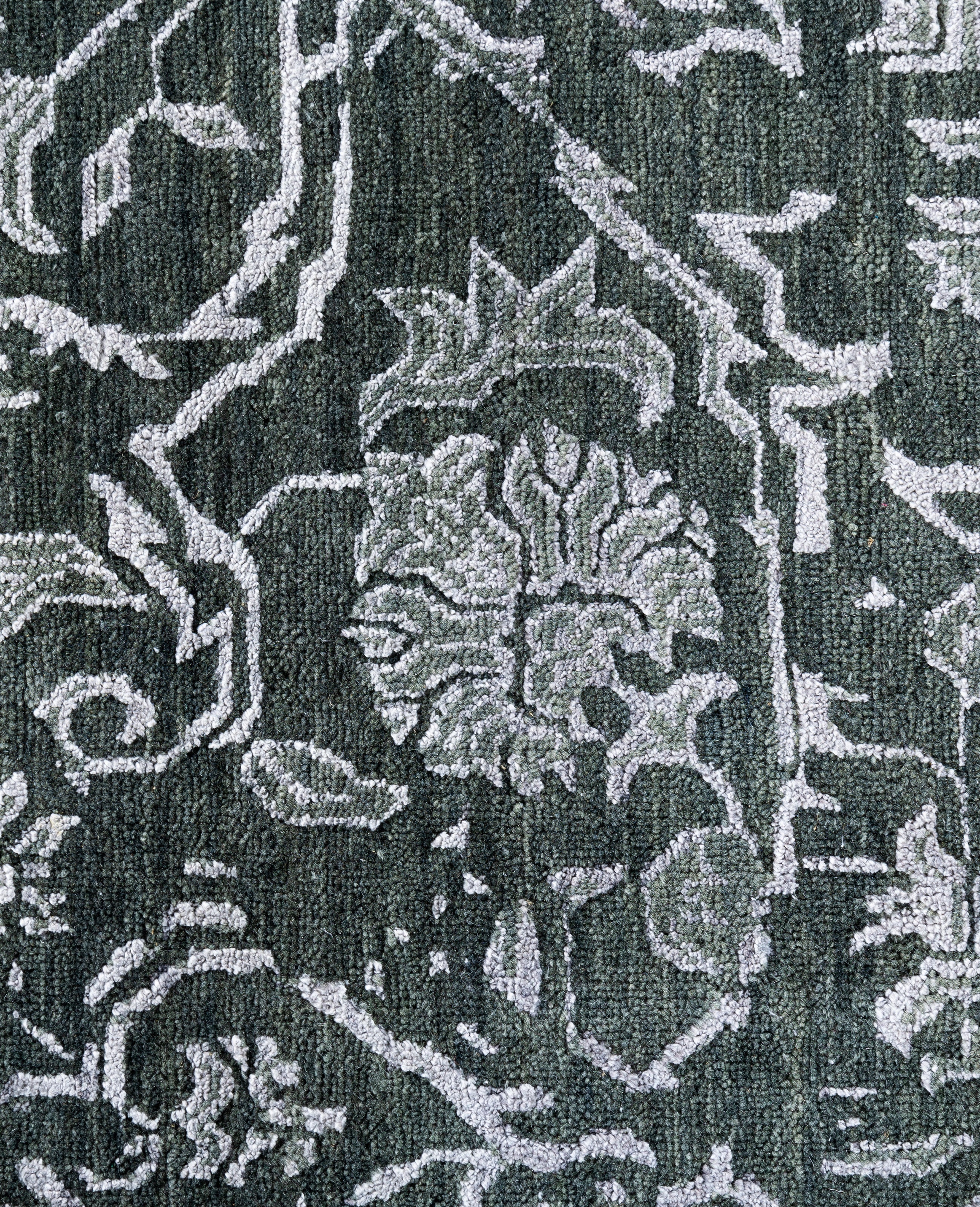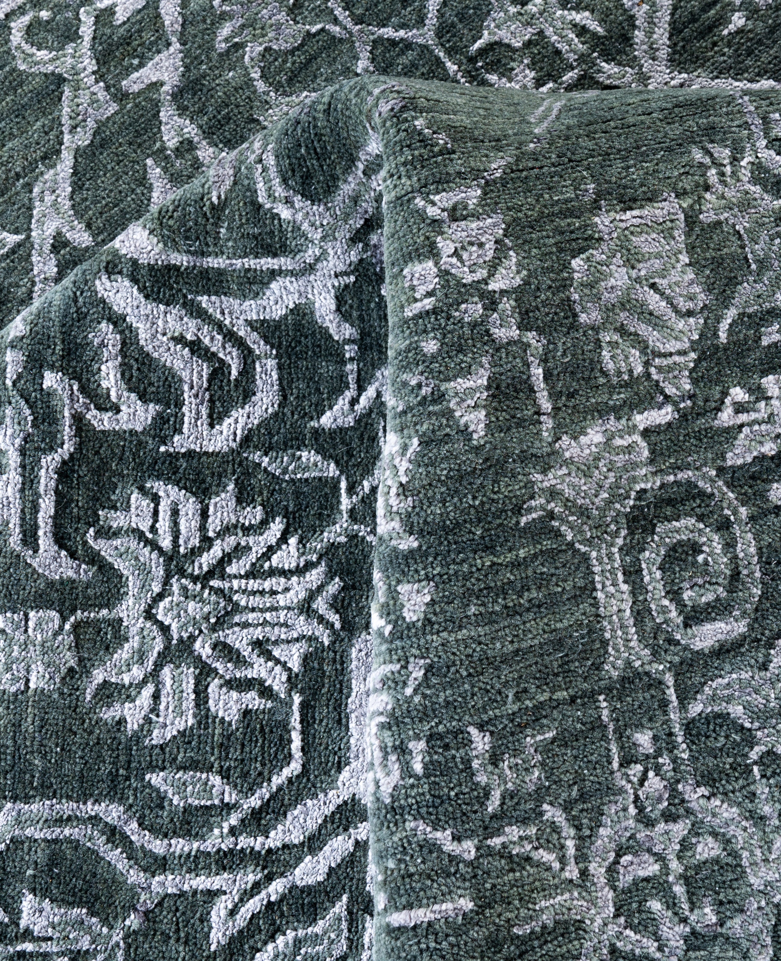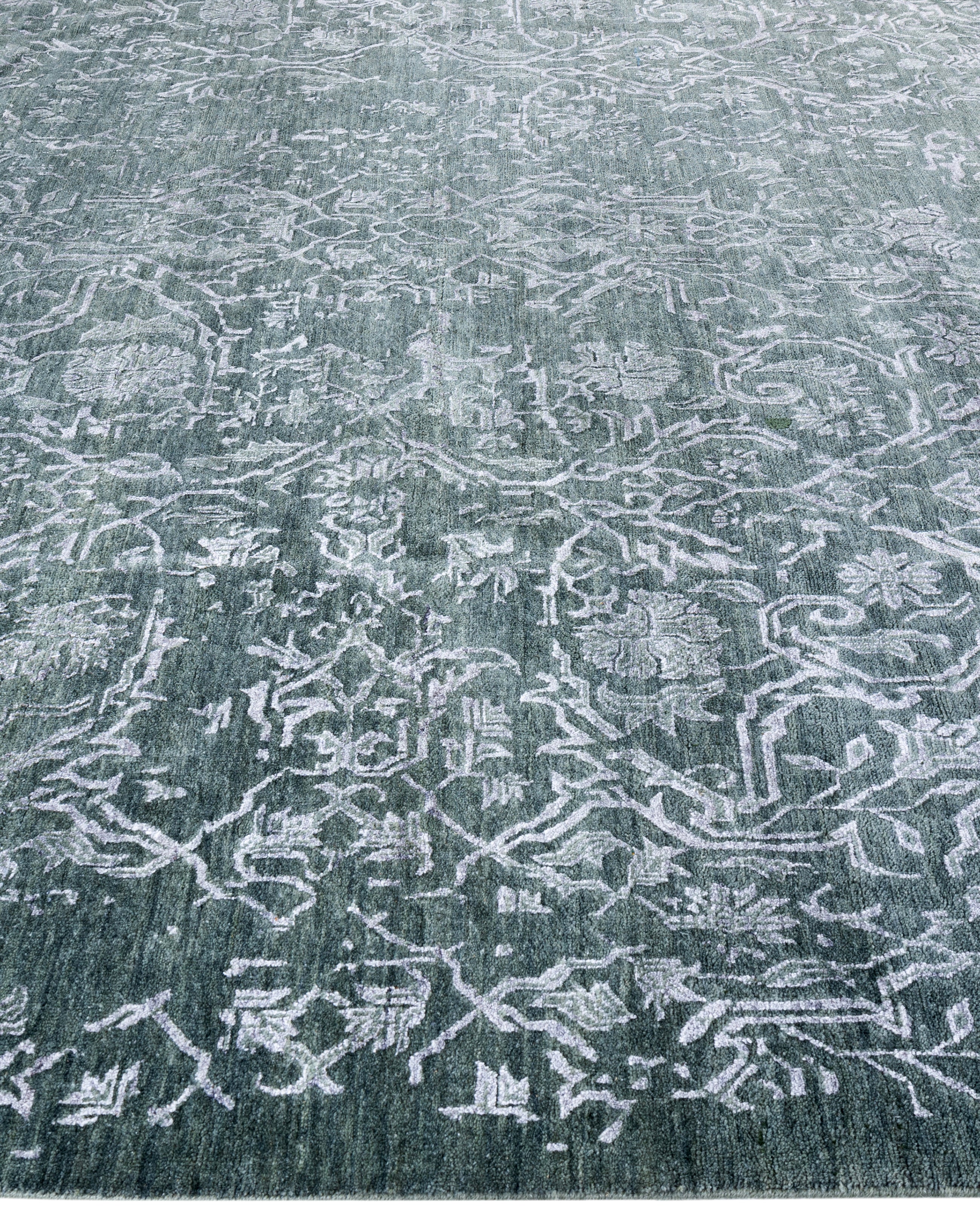 Traditional Abstarct Wool, Silk Hand Knotted Green Area Rug 9' 1" x 12' 4"