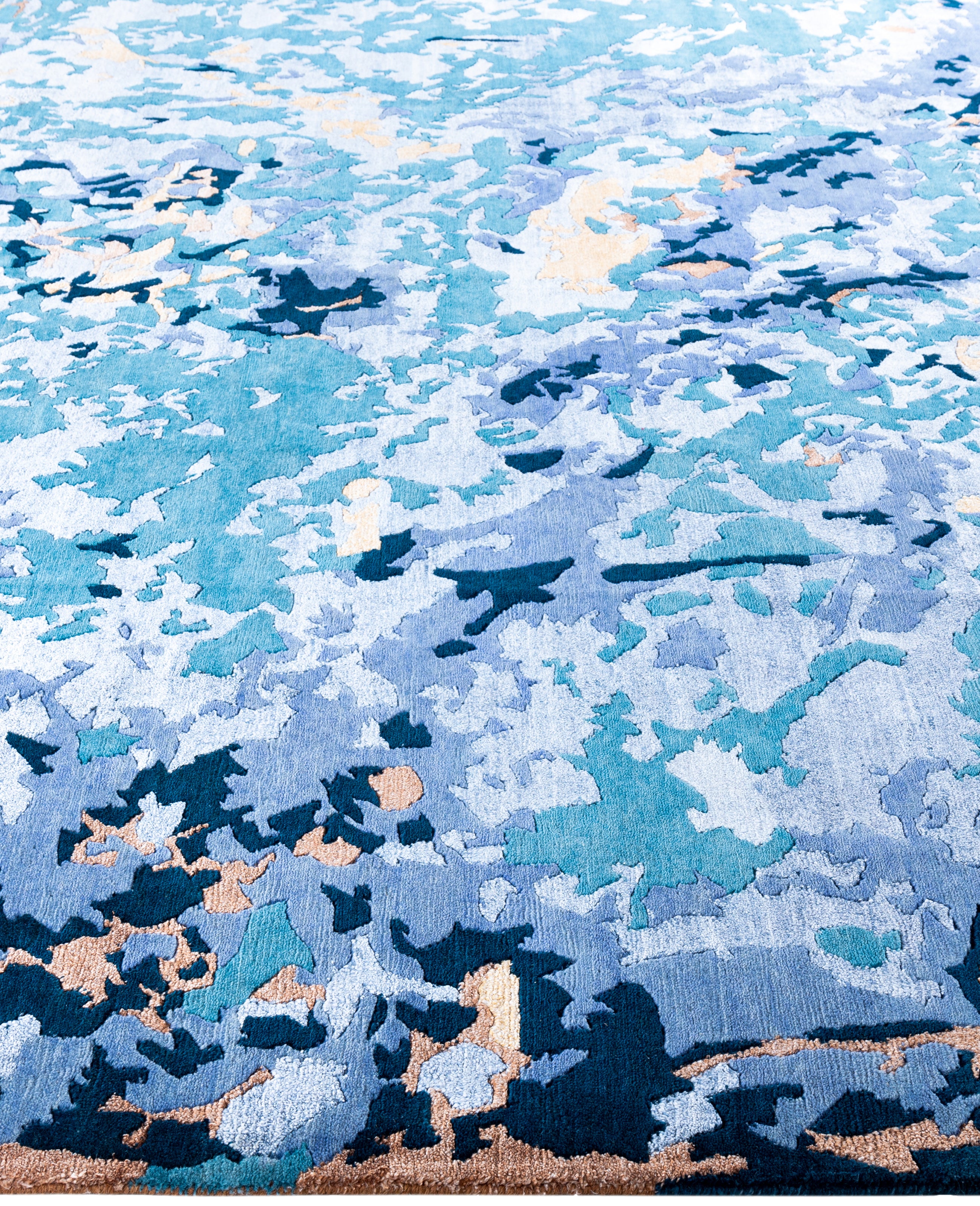 Contemporary Abstarct Wool, Silk Hand Knotted Green Area Rug 9' 3" x 11' 10"