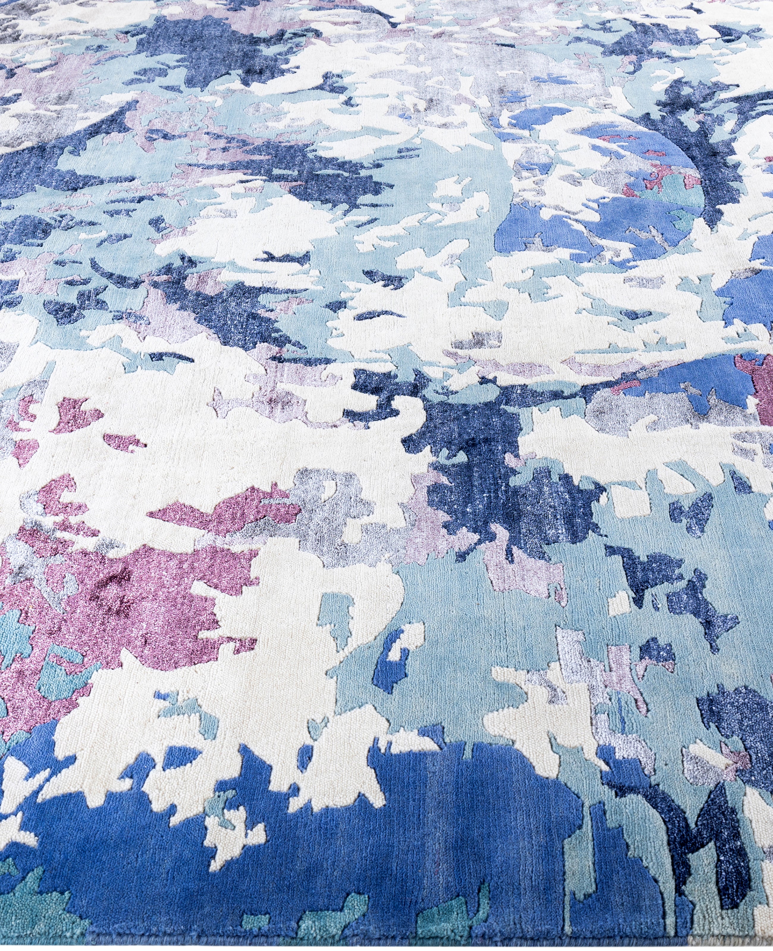 Contemporary Abstarct Wool, Silk Hand Knotted Gray Area Rug 9' 3" x 12' 1"