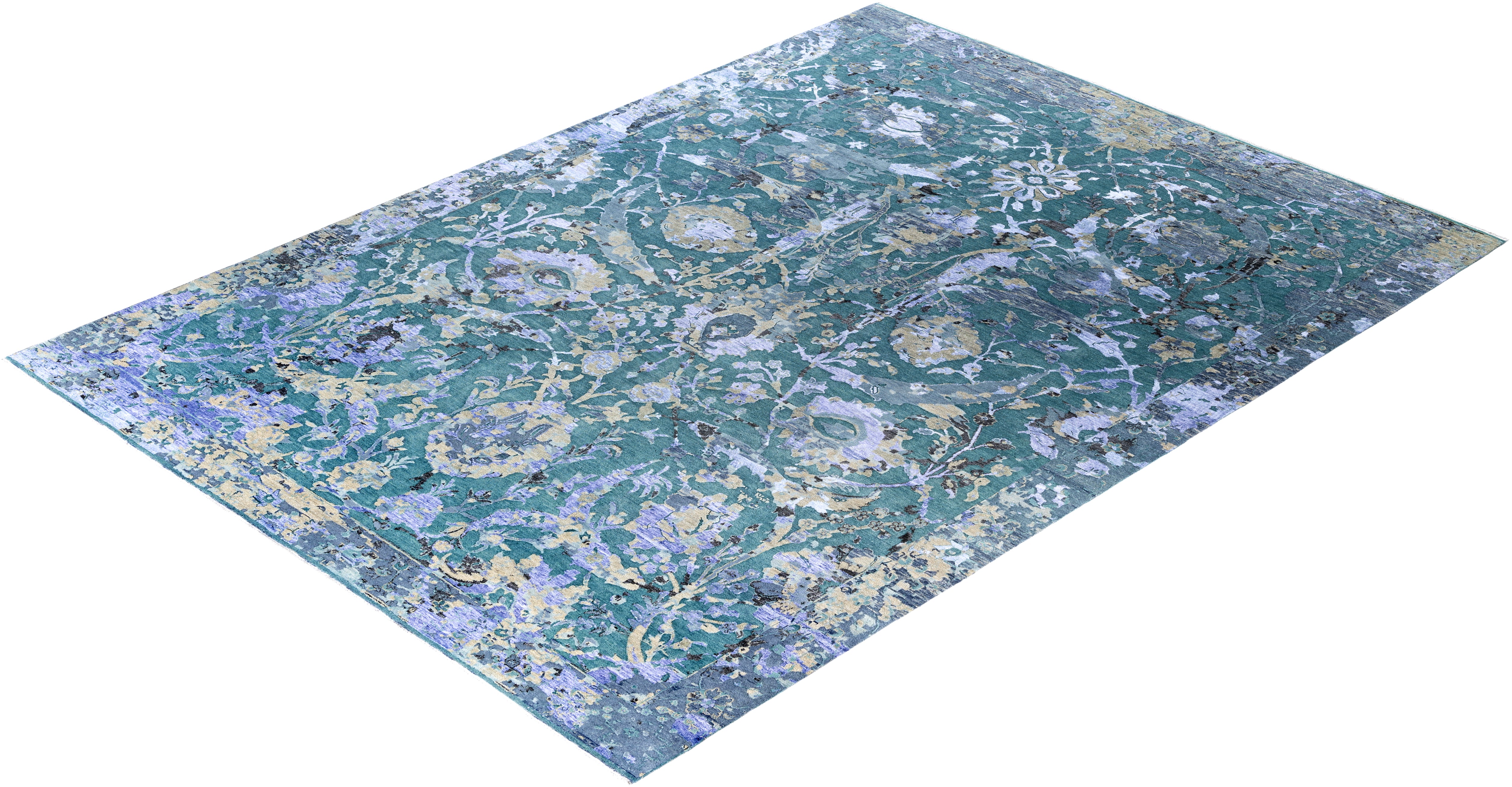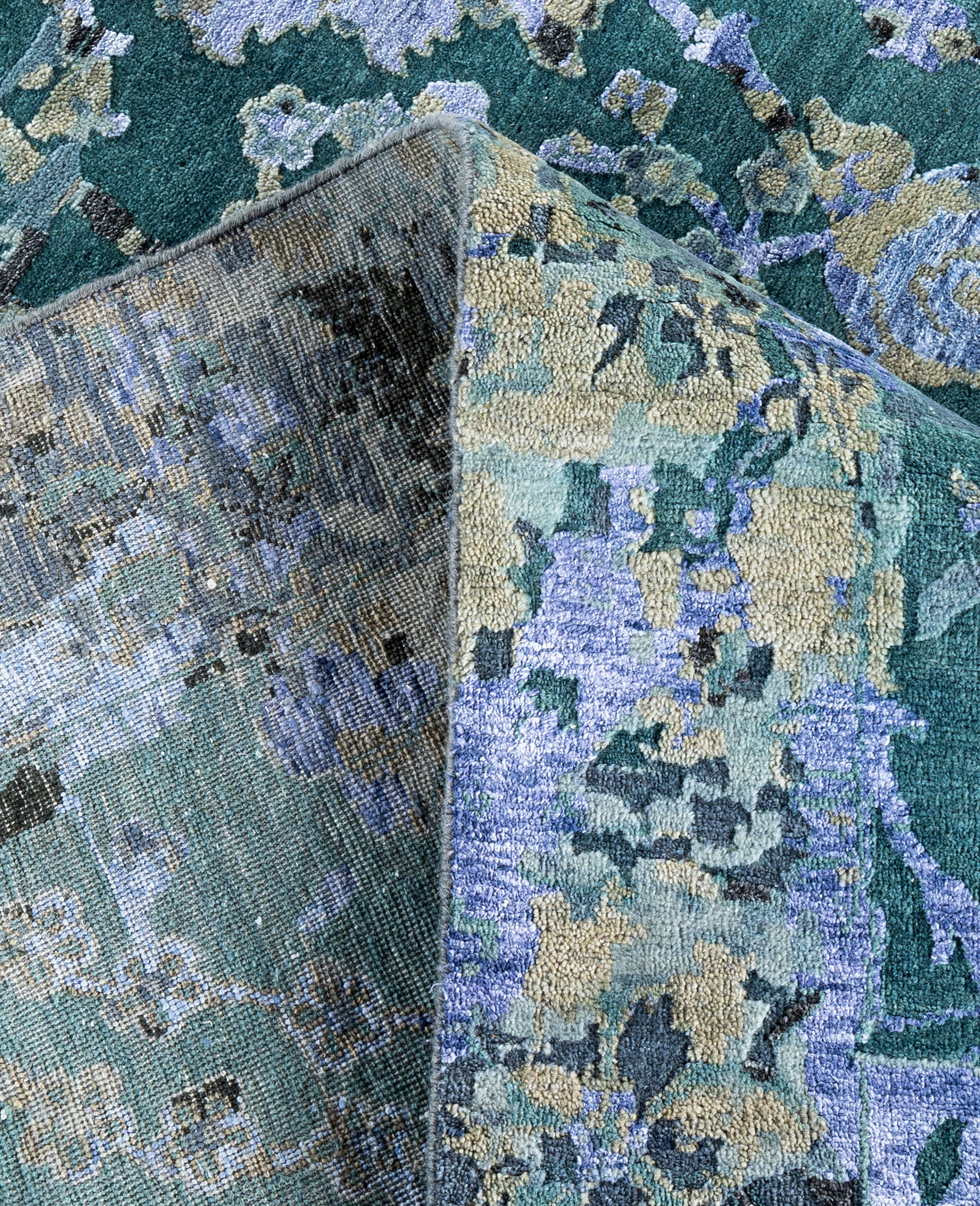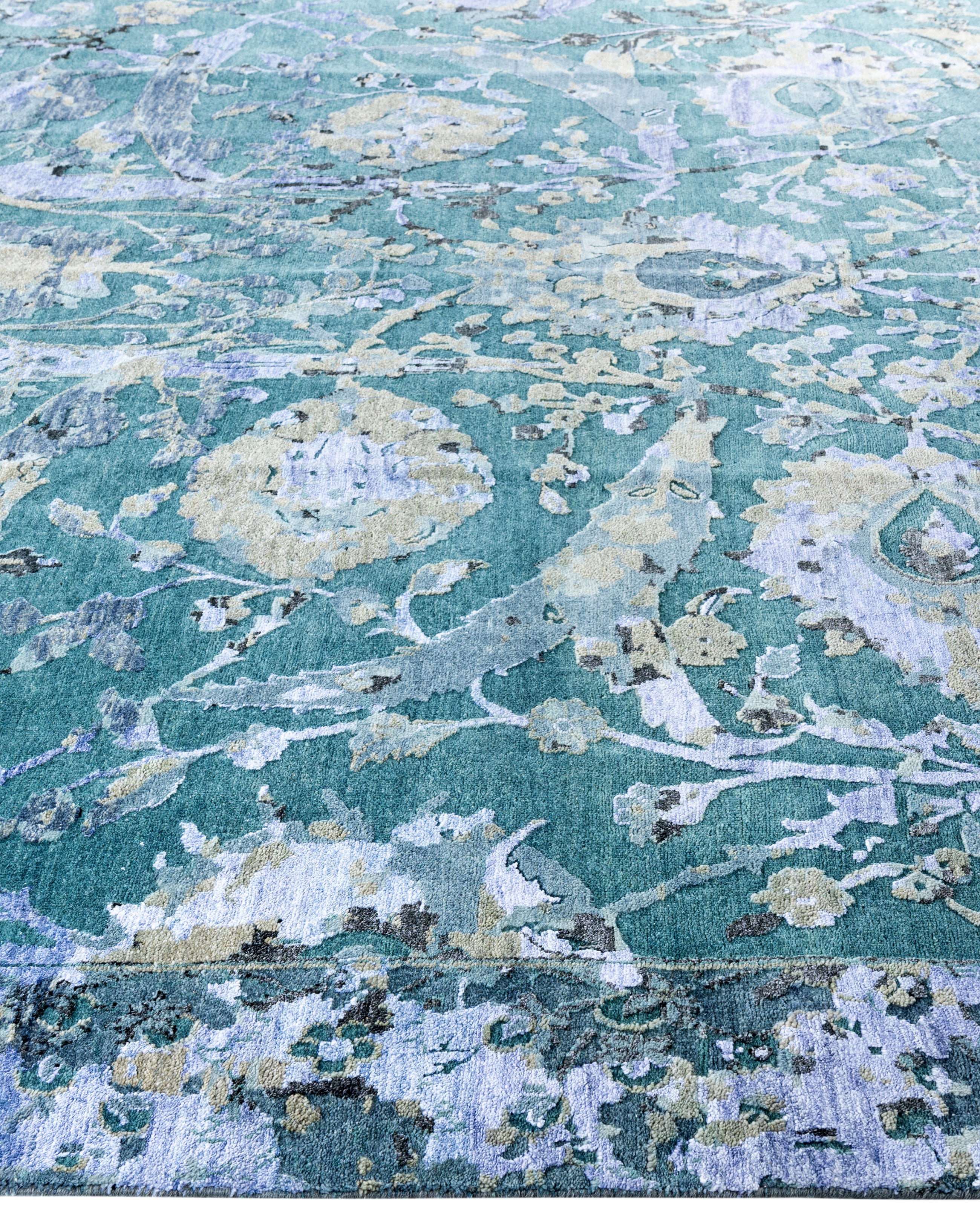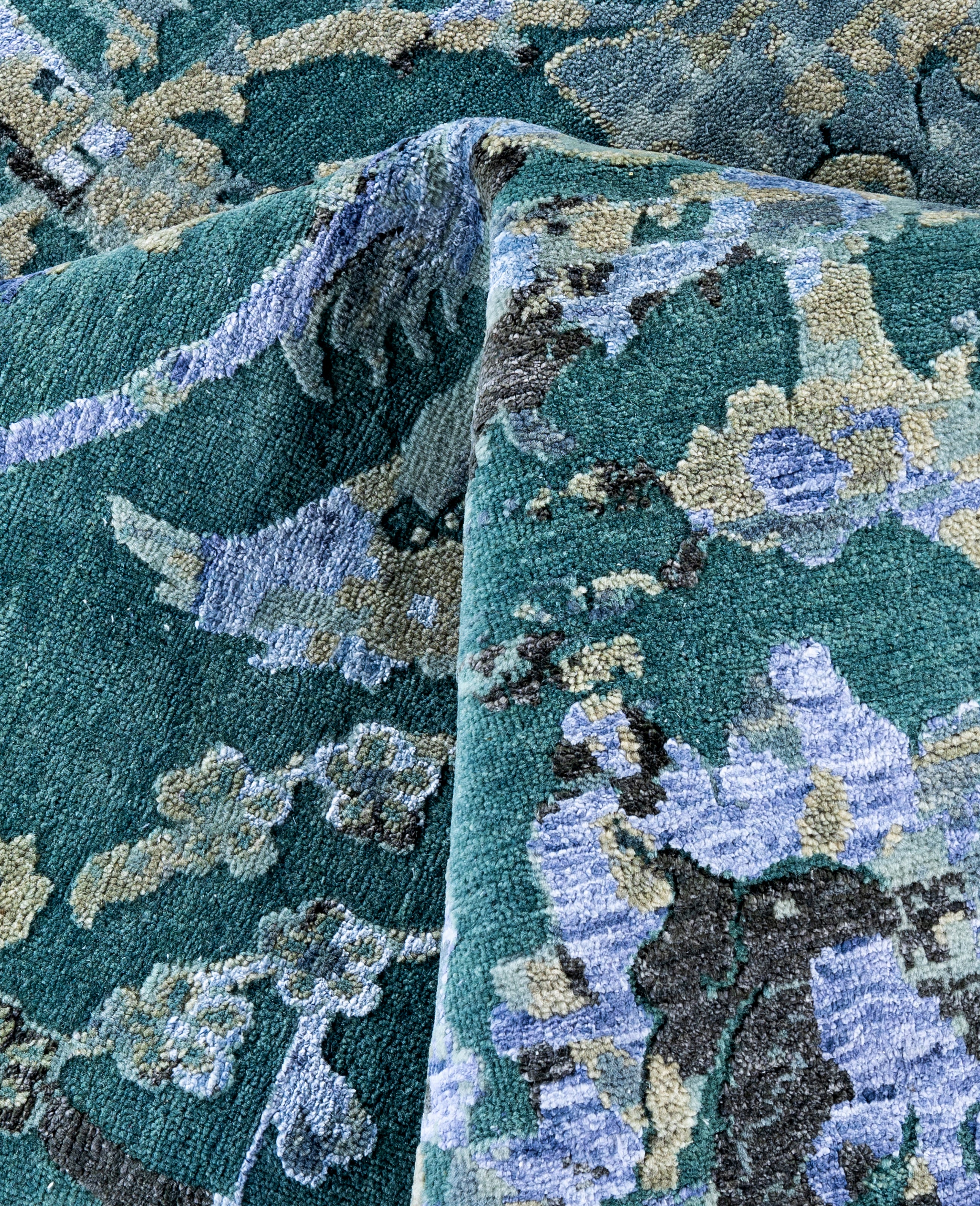 Traditional Abstarct Wool, Silk Hand Knotted Green Area Rug 9' 1" x 12' 4"