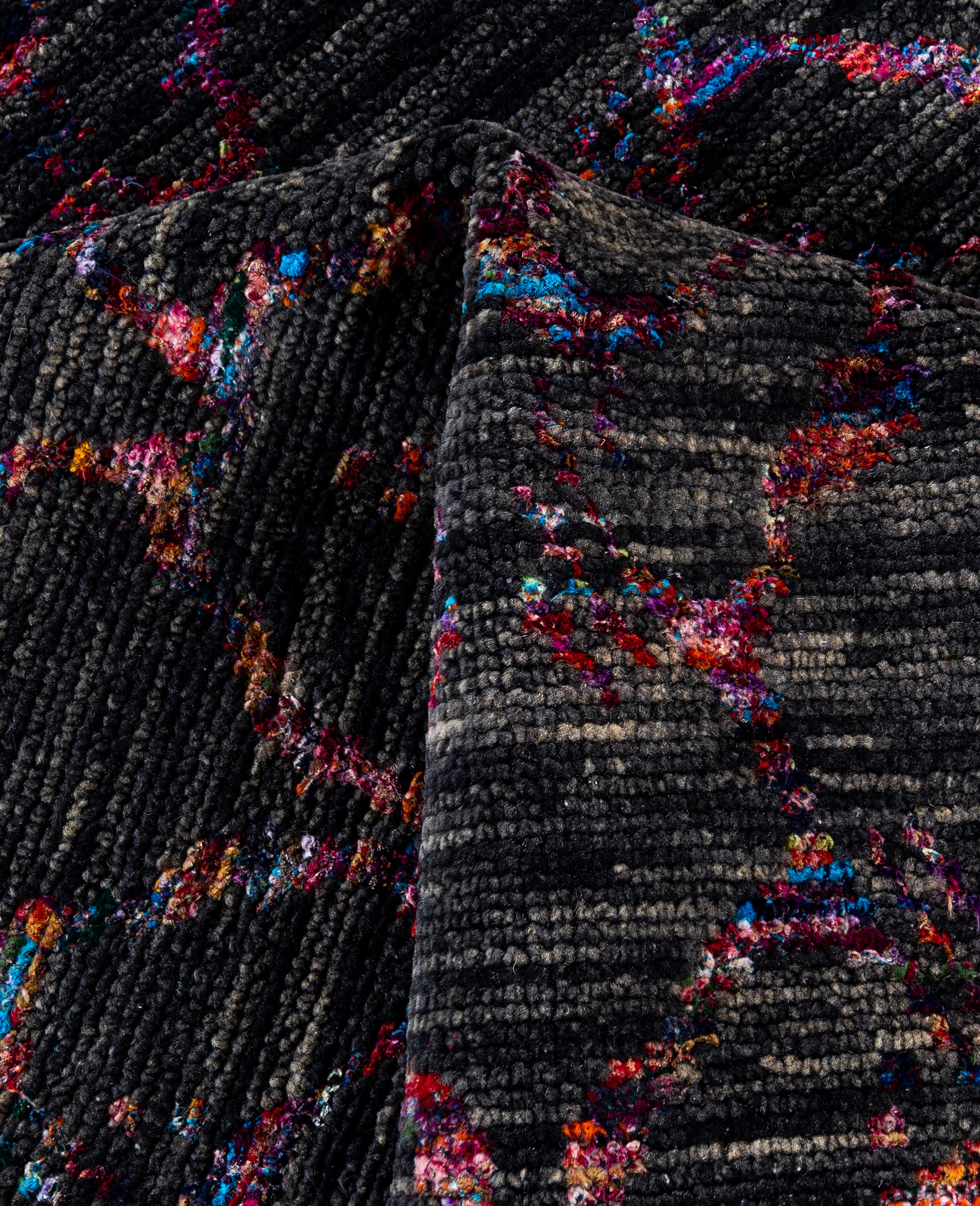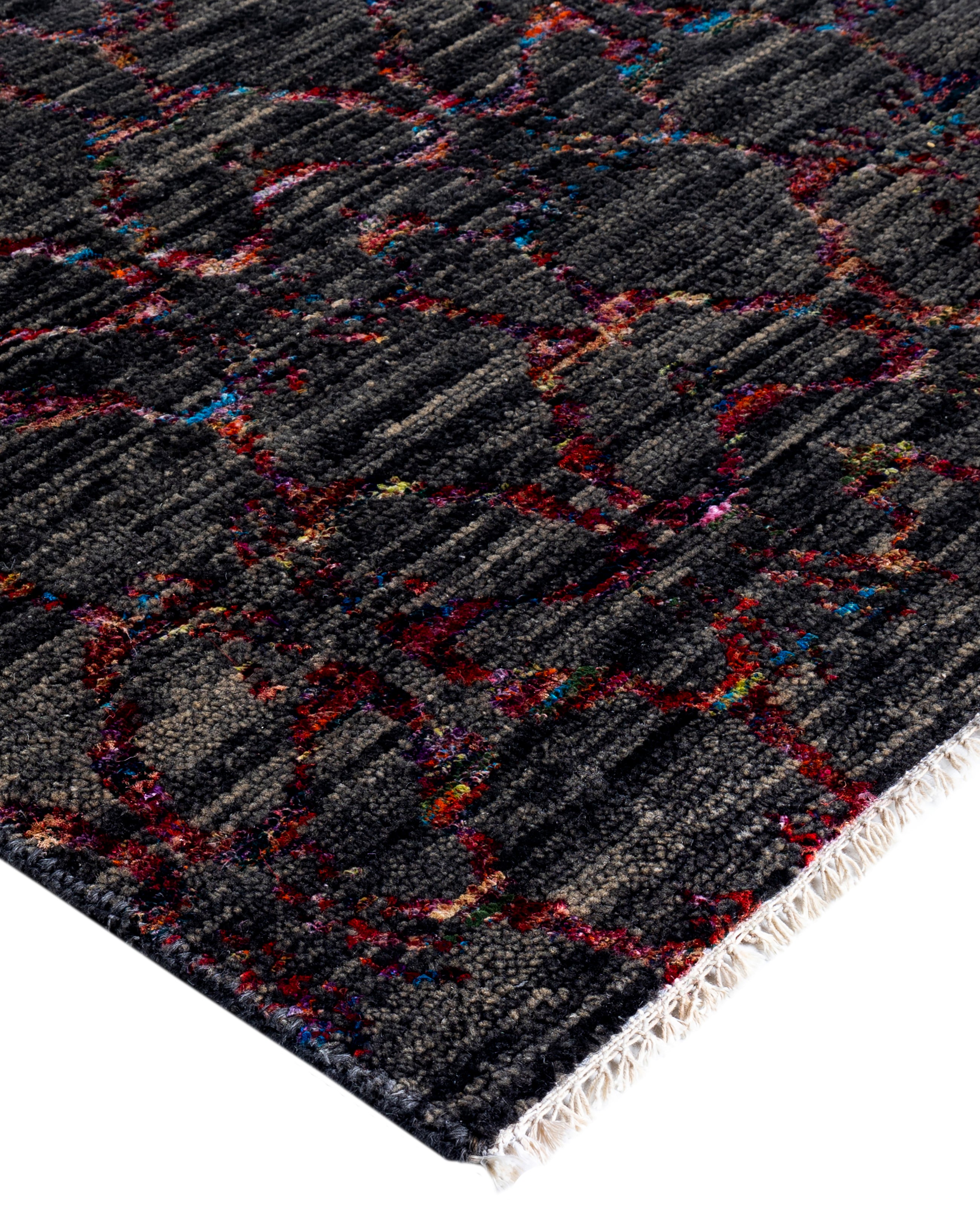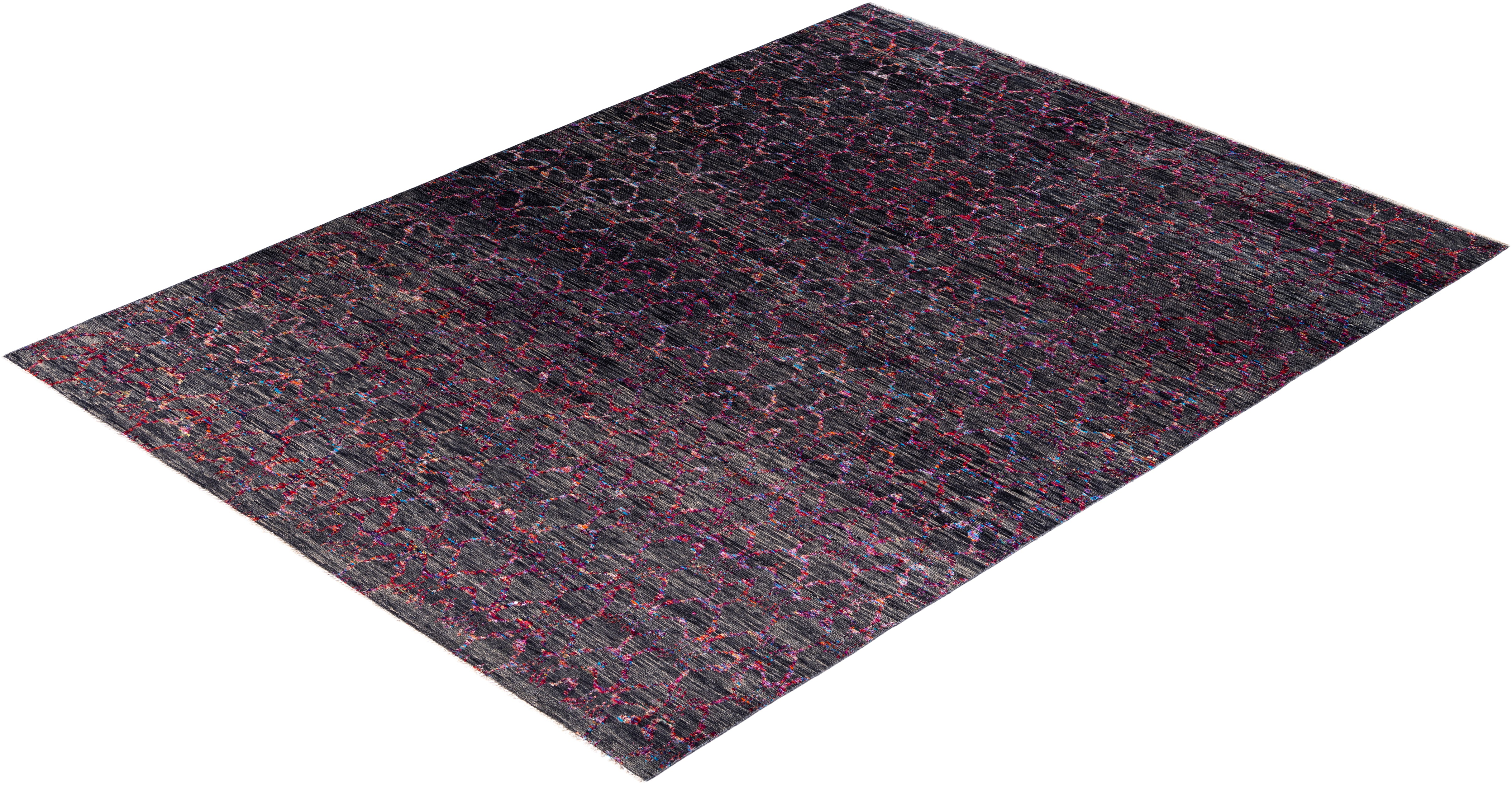 Contemporary Abstarct Wool, Silk Hand Knotted Black Area Rug 9' 0" x 11' 10"