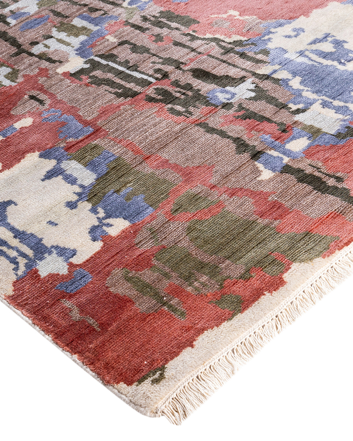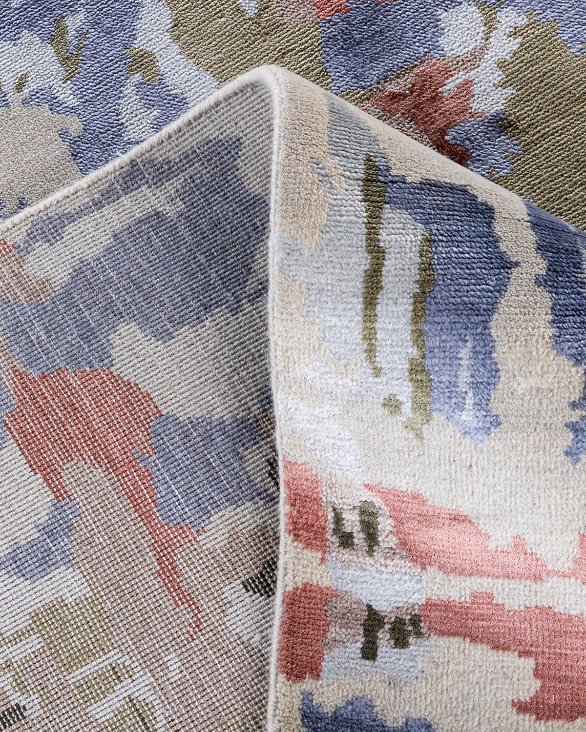 Traditional Ikat Hand Knotted Abstract Silk & Wool Blend Ivory Area Rug 9' 3" x 11' 10"