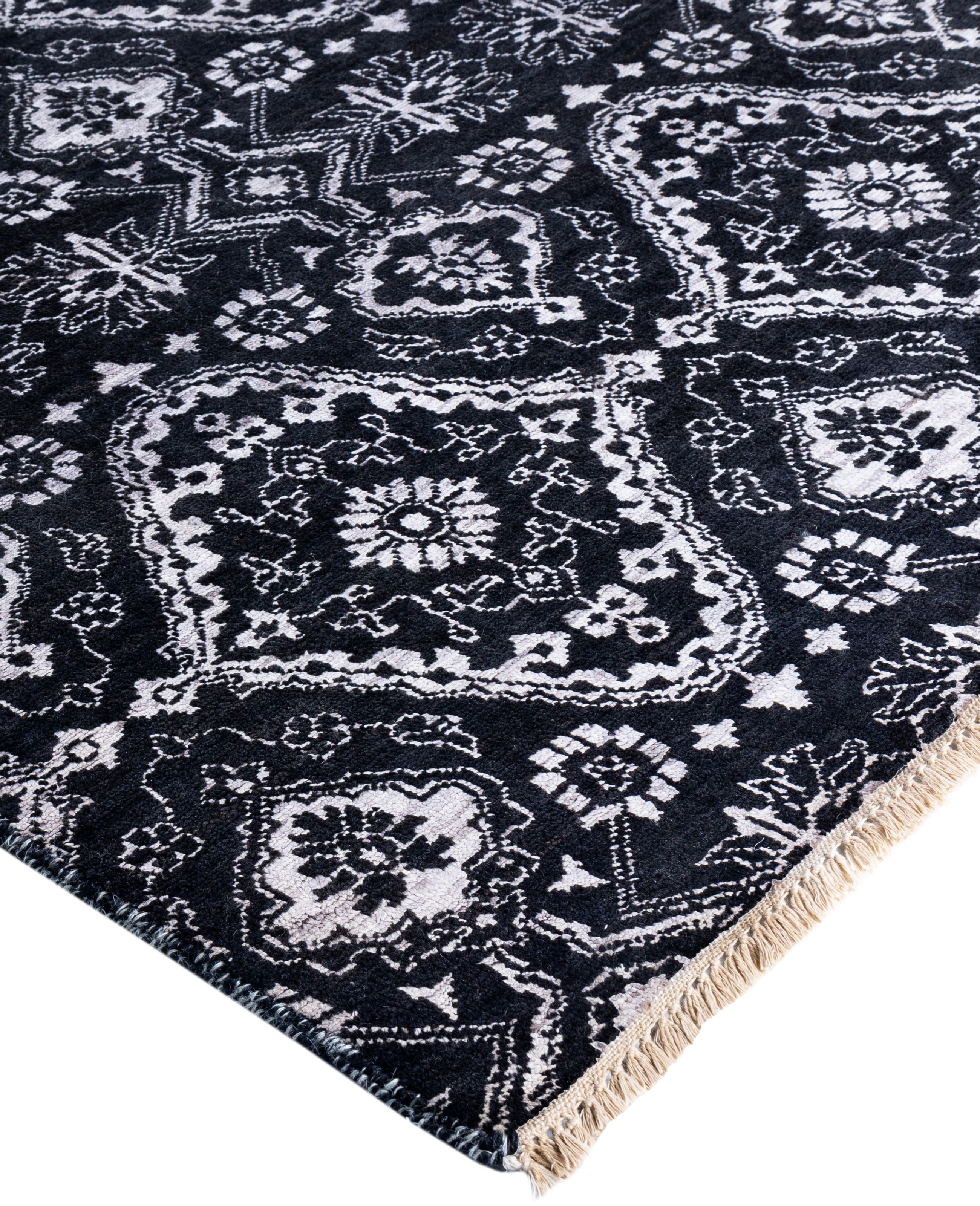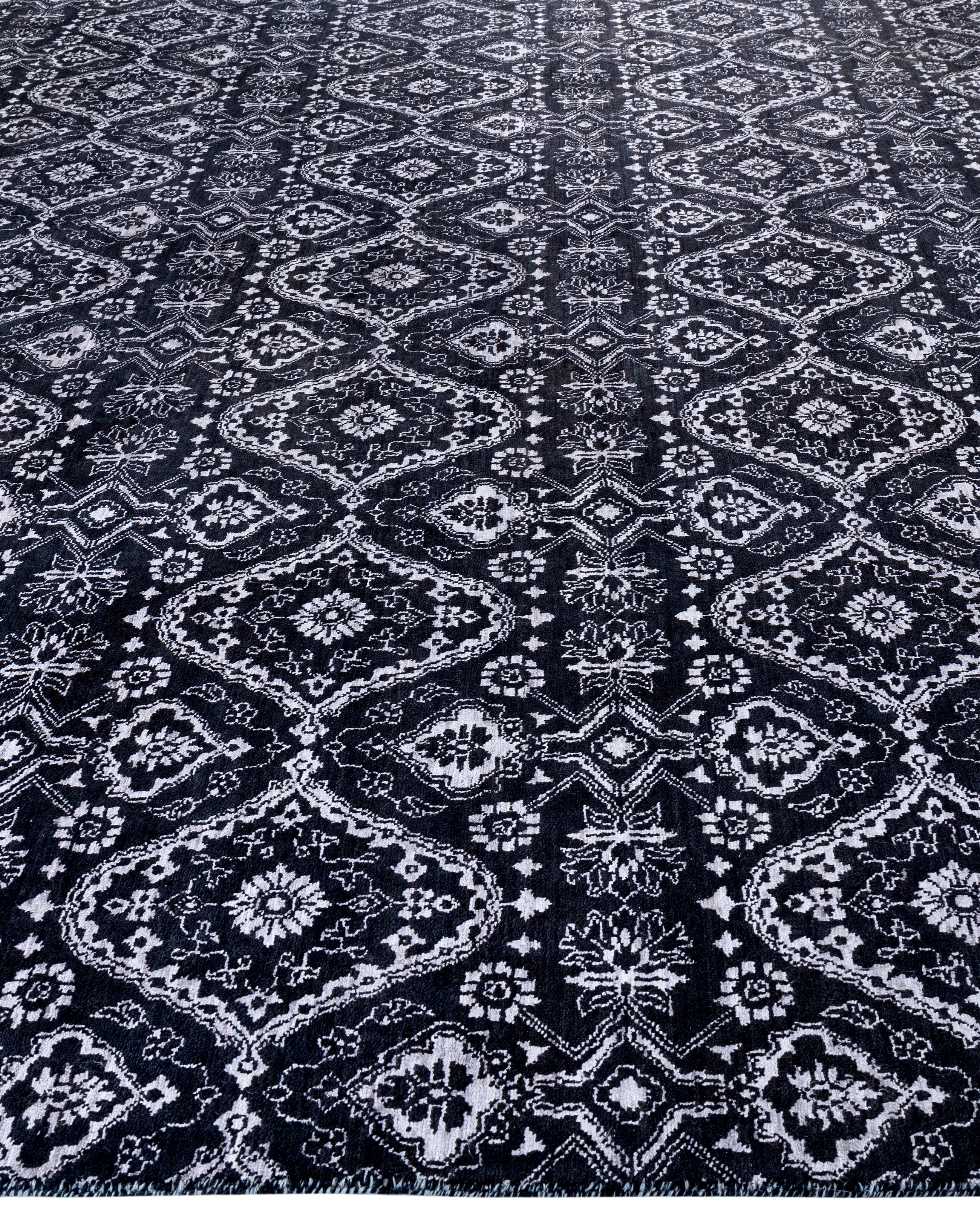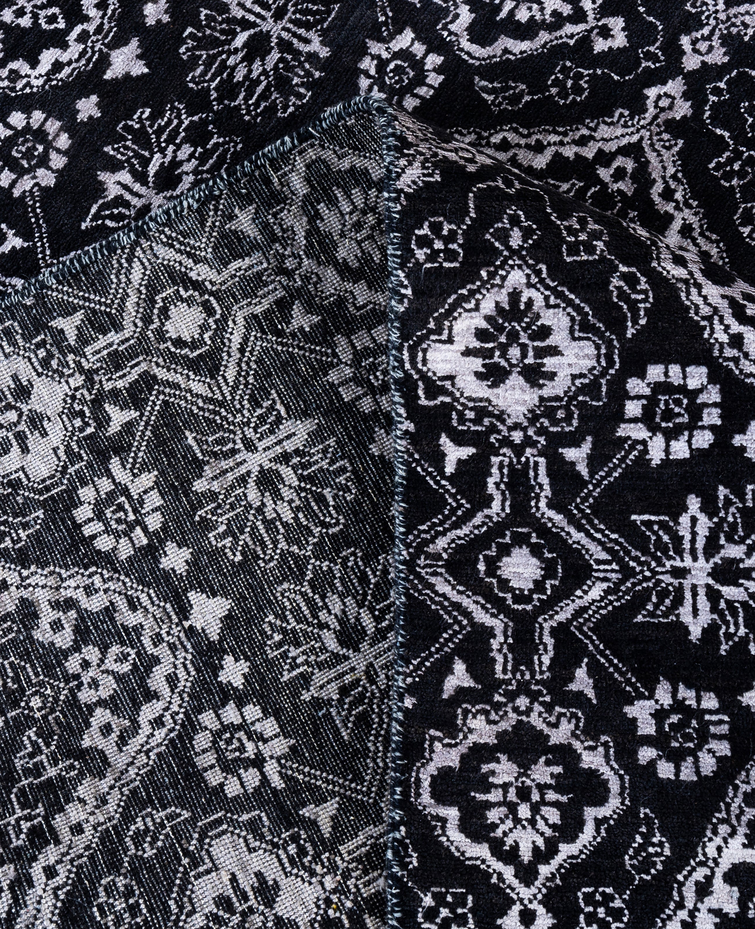 Traditional Floral Wool, Silk Hand Knotted Black Area Rug 9' 1" x 12' 1"