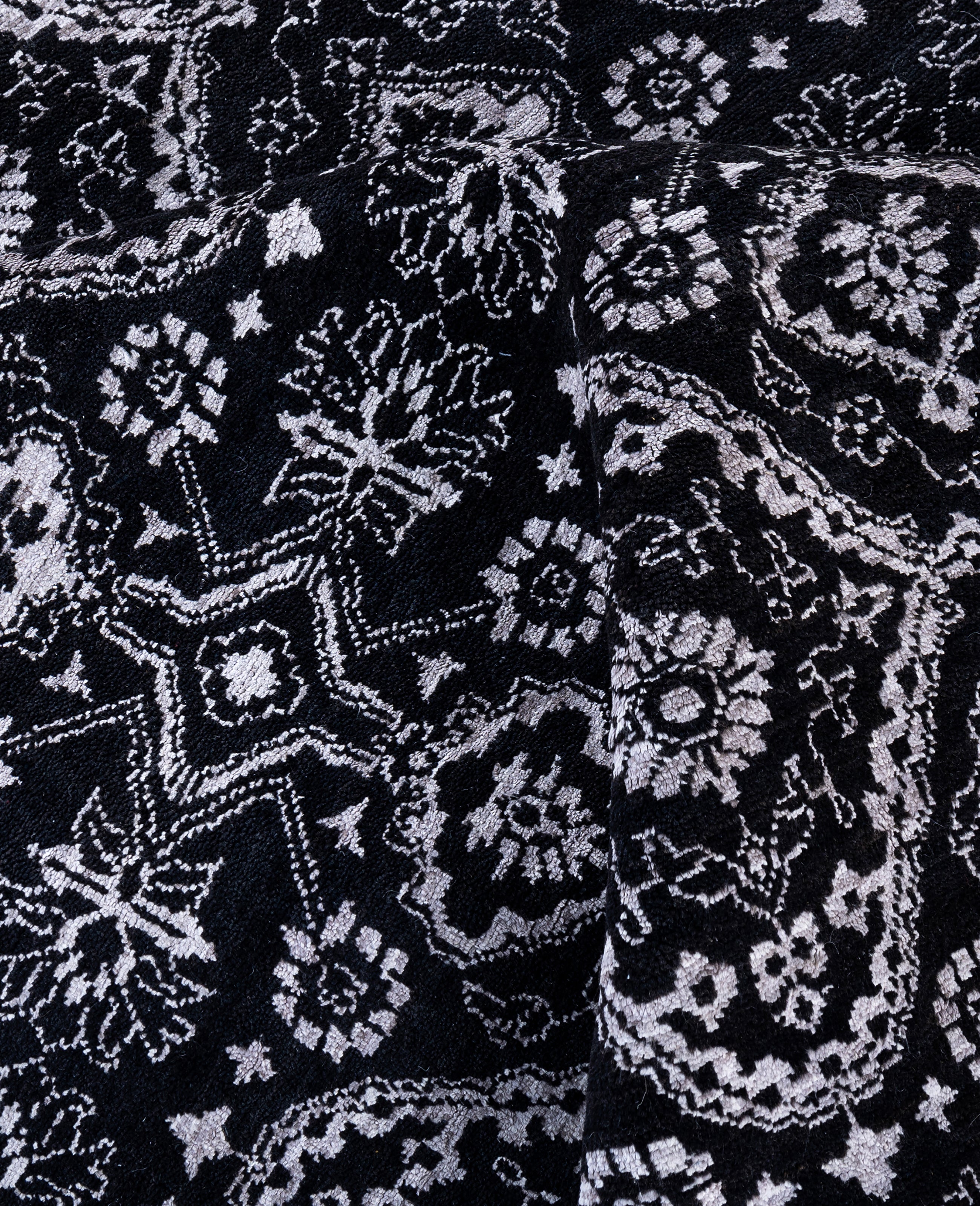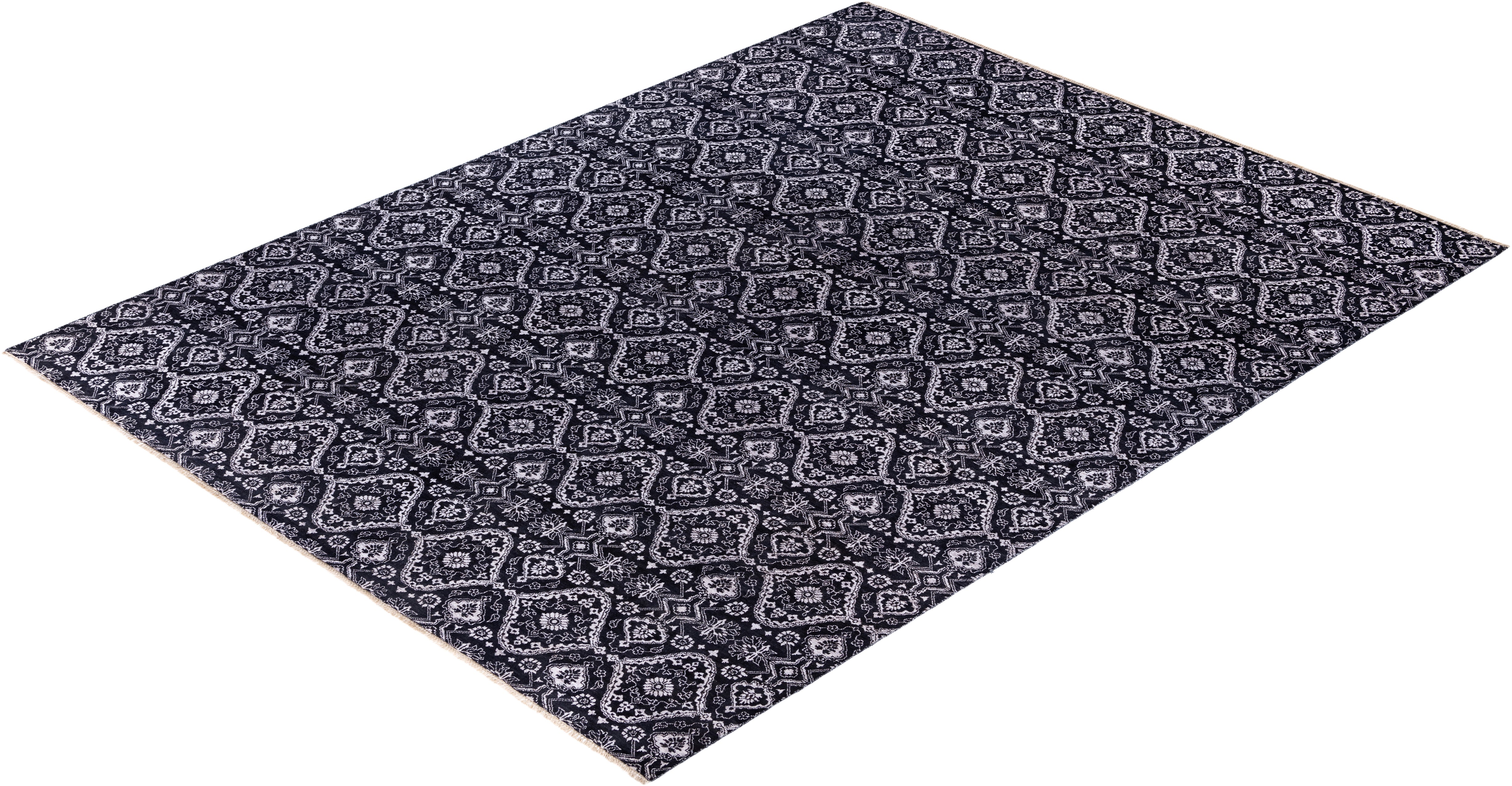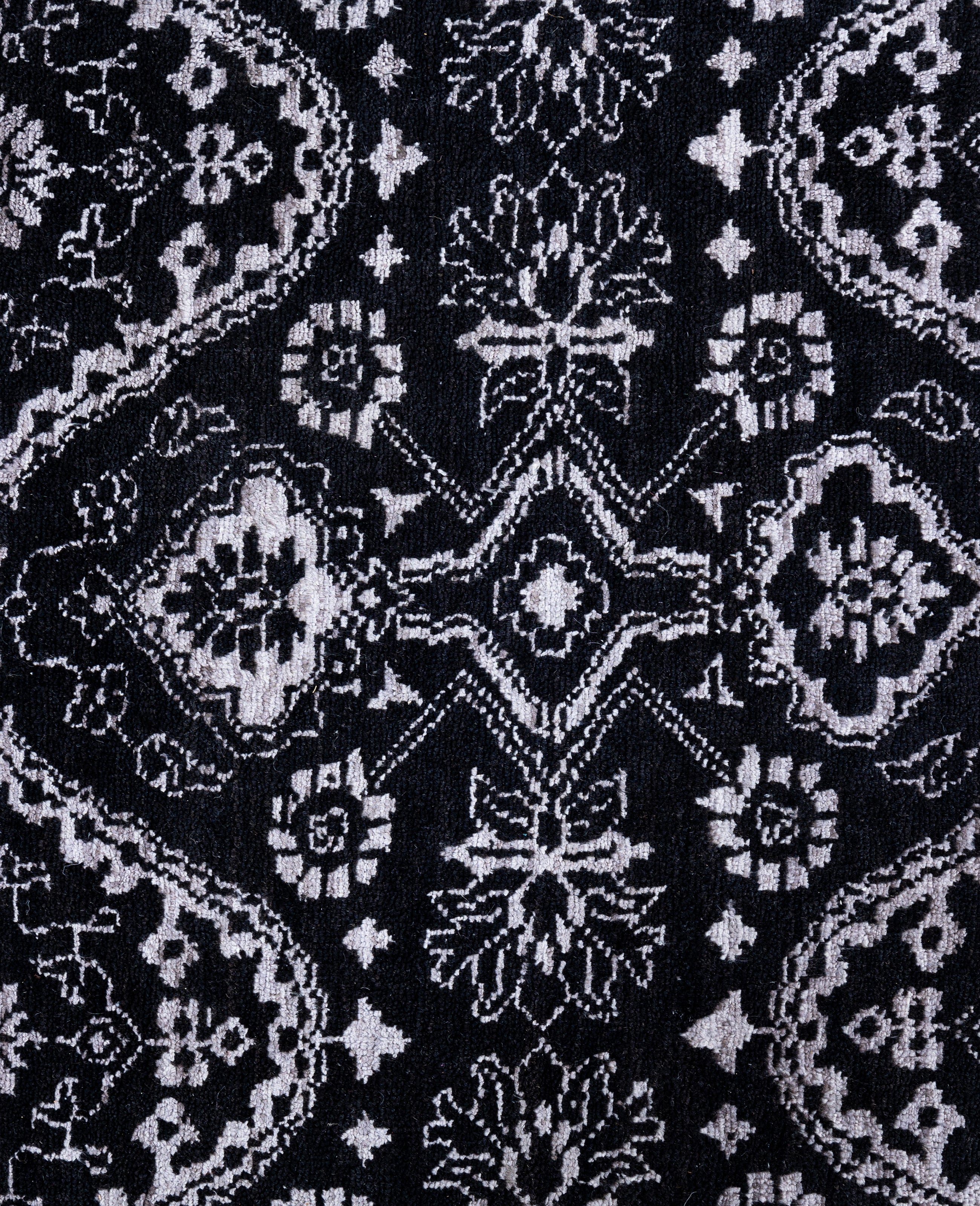 Traditional Floral Wool, Silk Hand Knotted Black Area Rug 9' 1" x 12' 1"