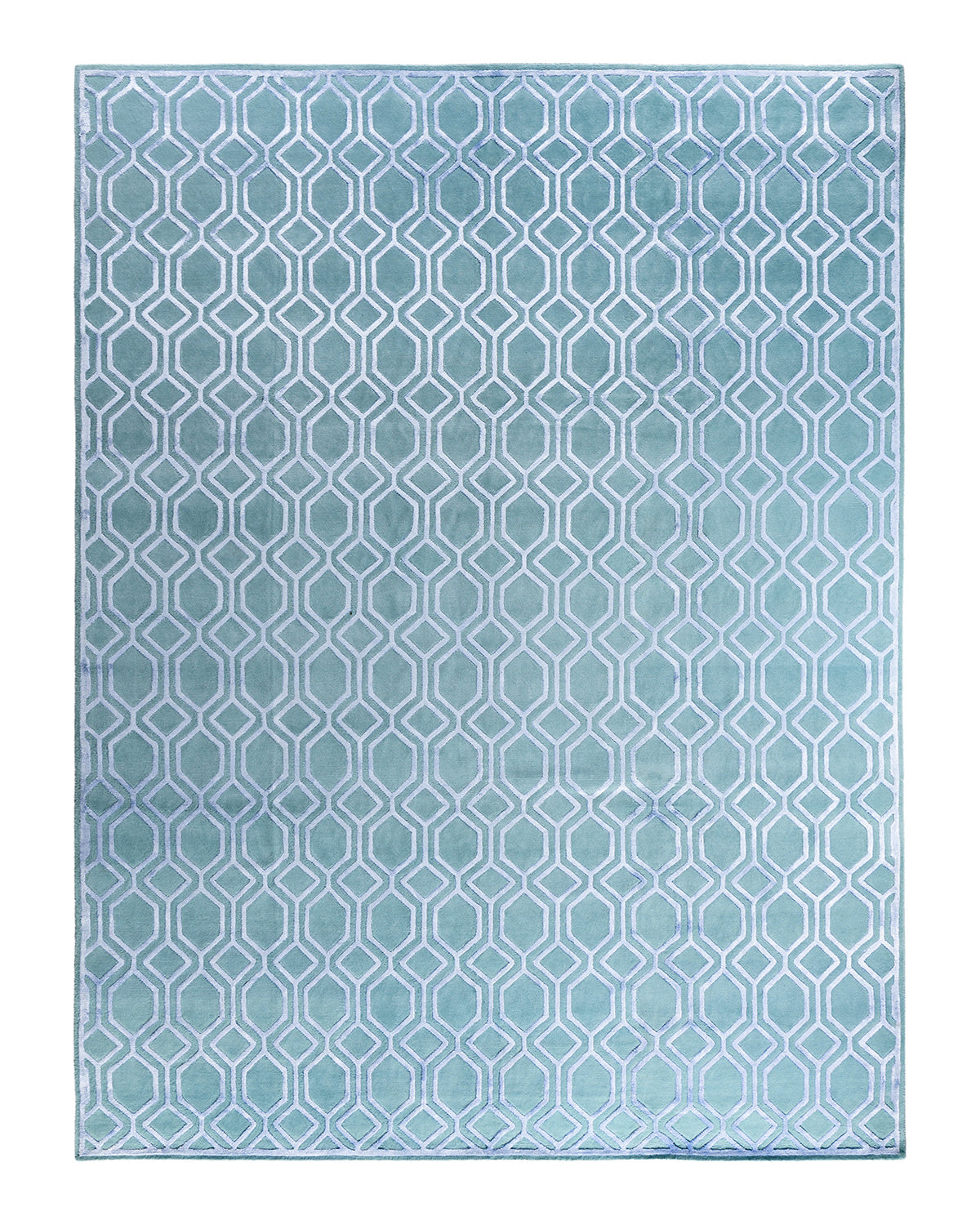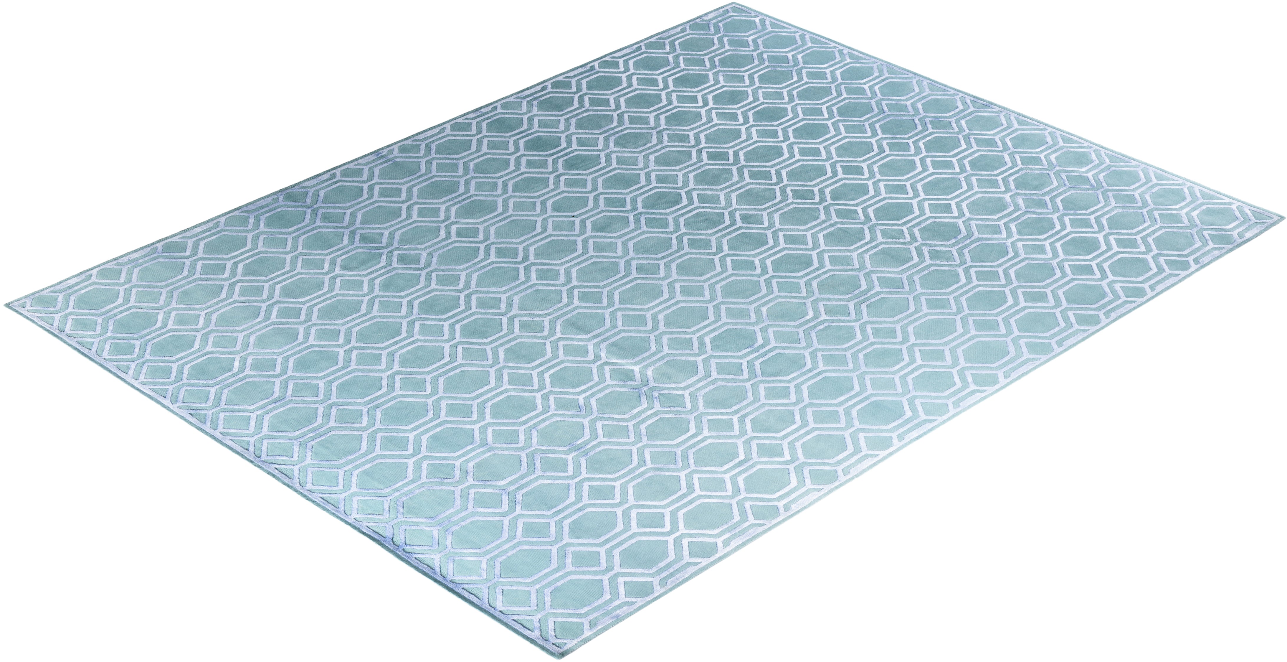 Contemporary Modern Hand Knotted Geometric Silk & Wool Blend Blue Area Rug 9' 2" x 12' 0"