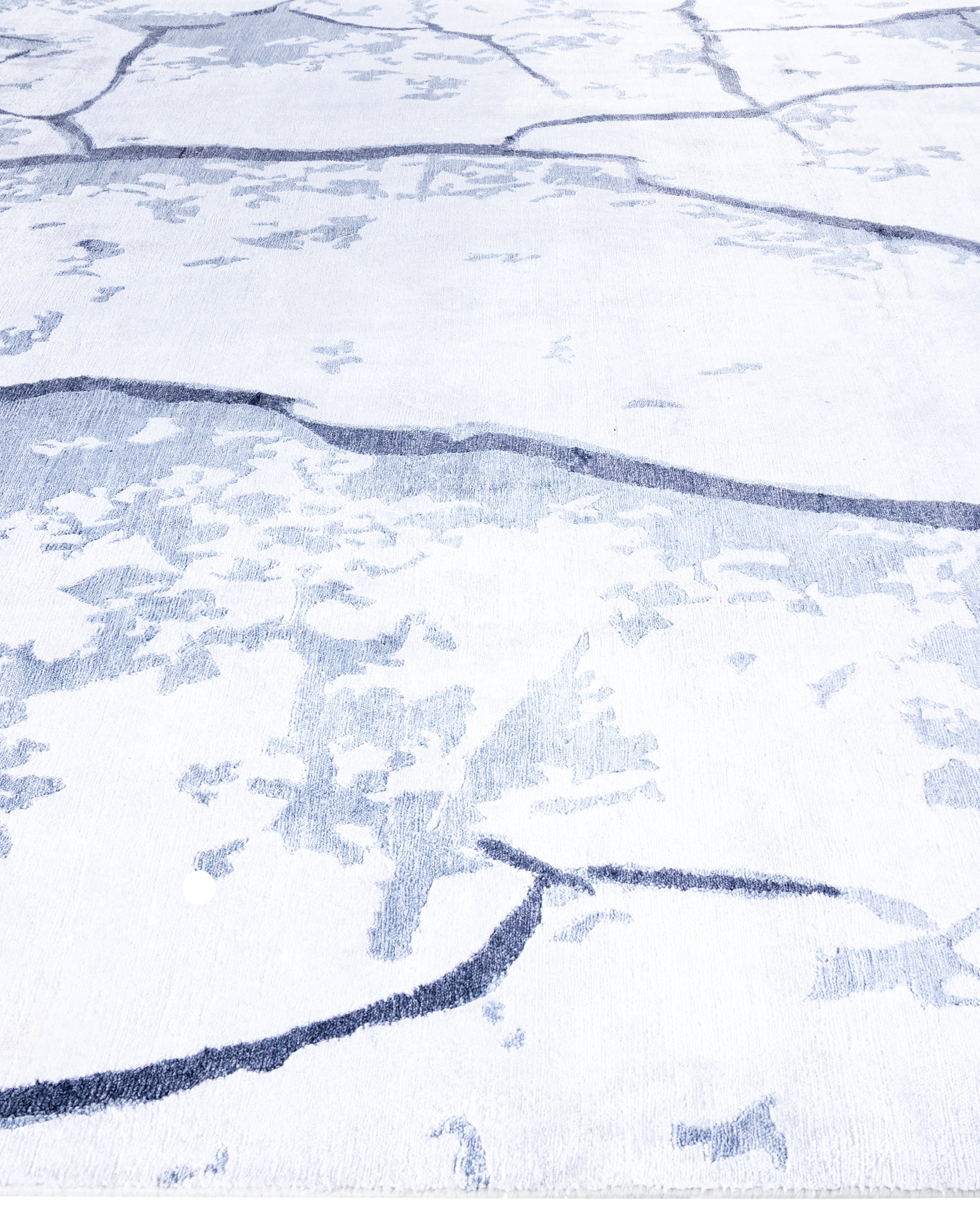 Contemporary Abstarct Silk Hand Knotted Ivory Area Rug 9' 0" x 12' 3"