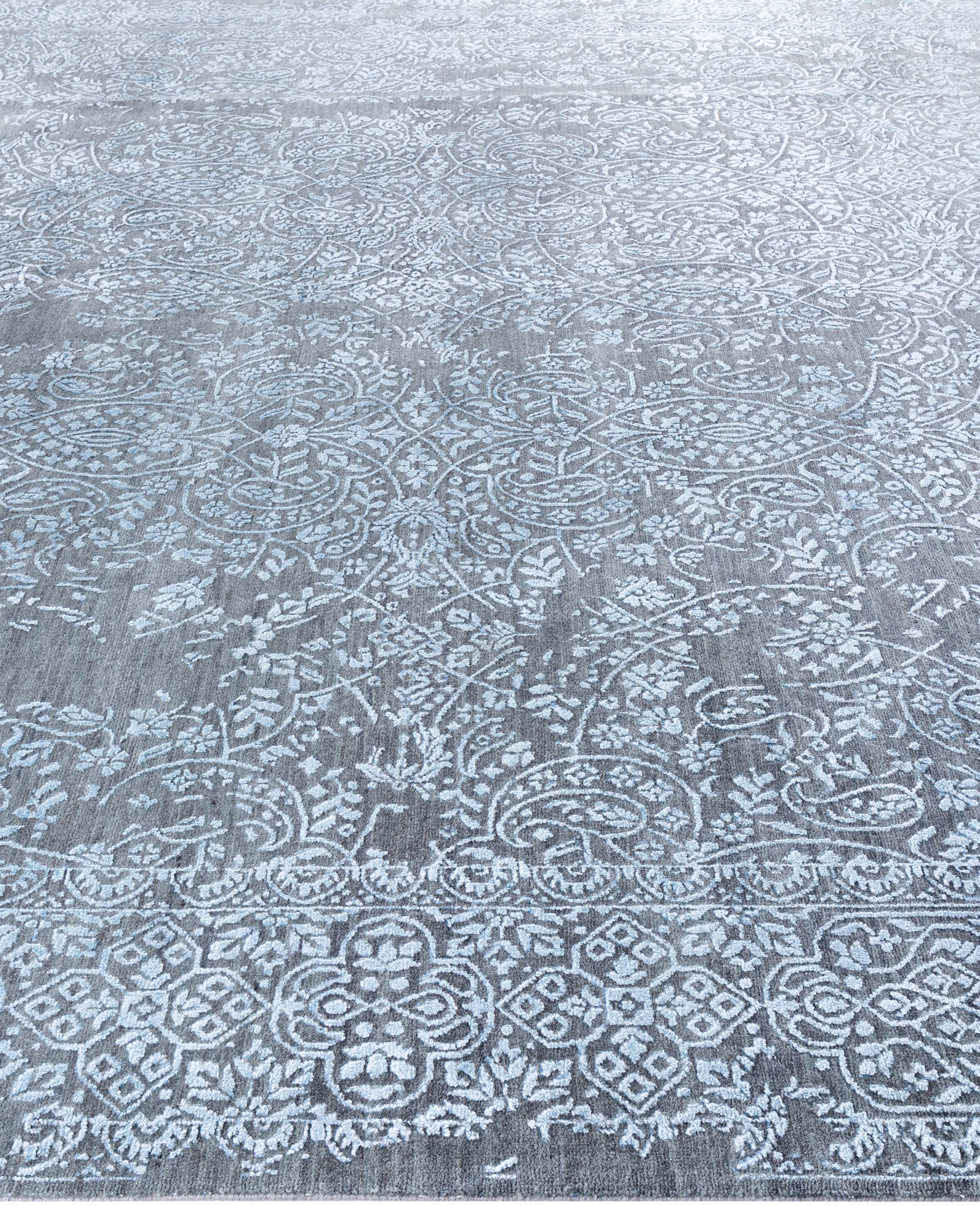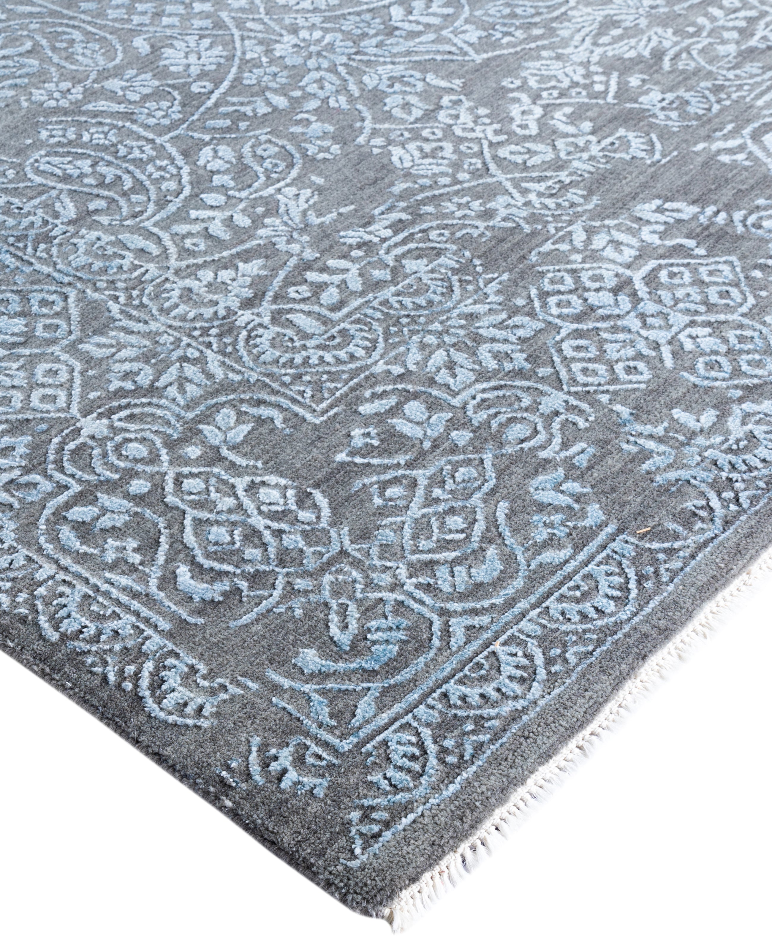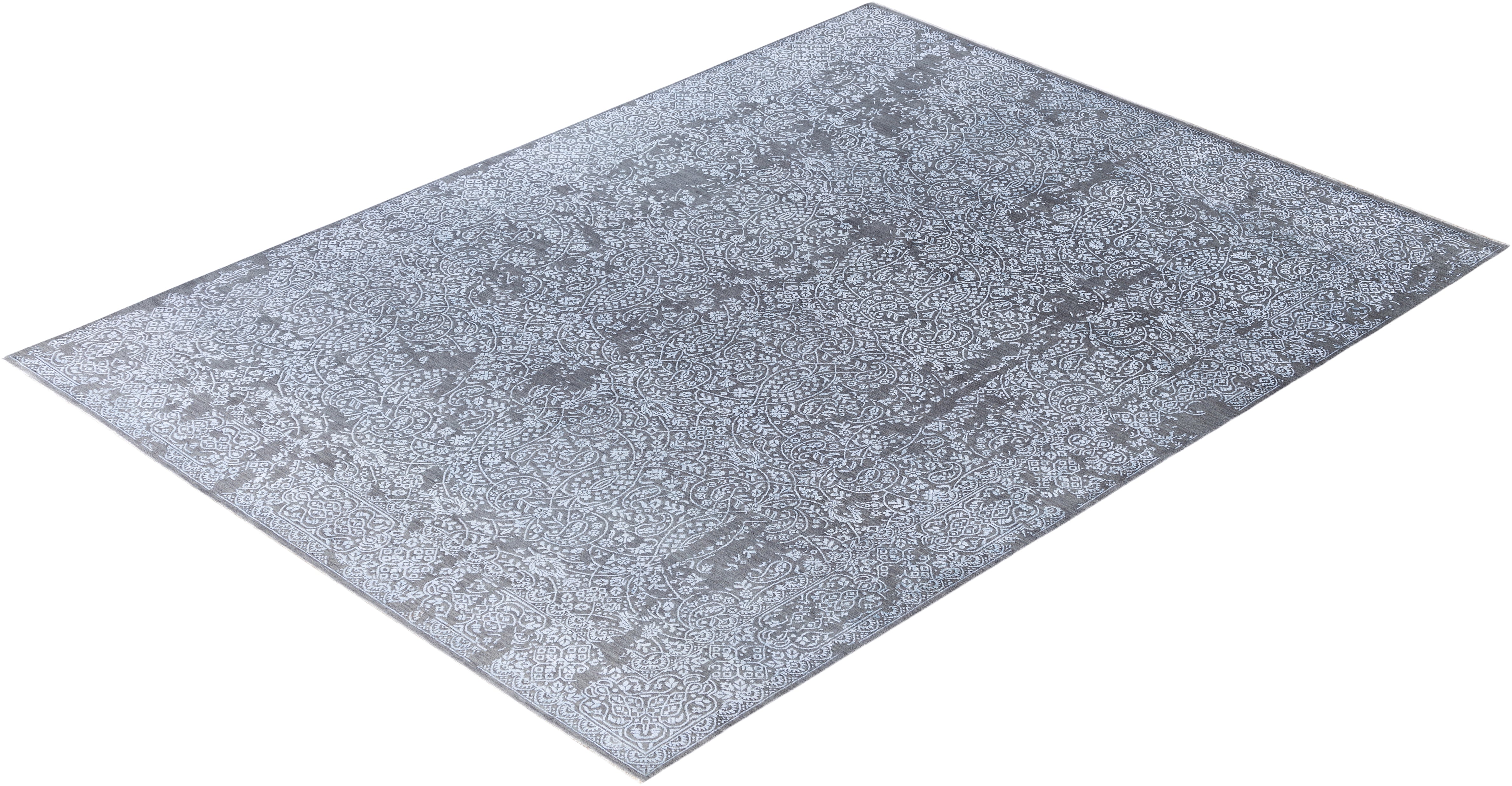 Traditional Abstarct Wool, Silk Hand Knotted Gray Area Rug 9' 0" x 12' 1"