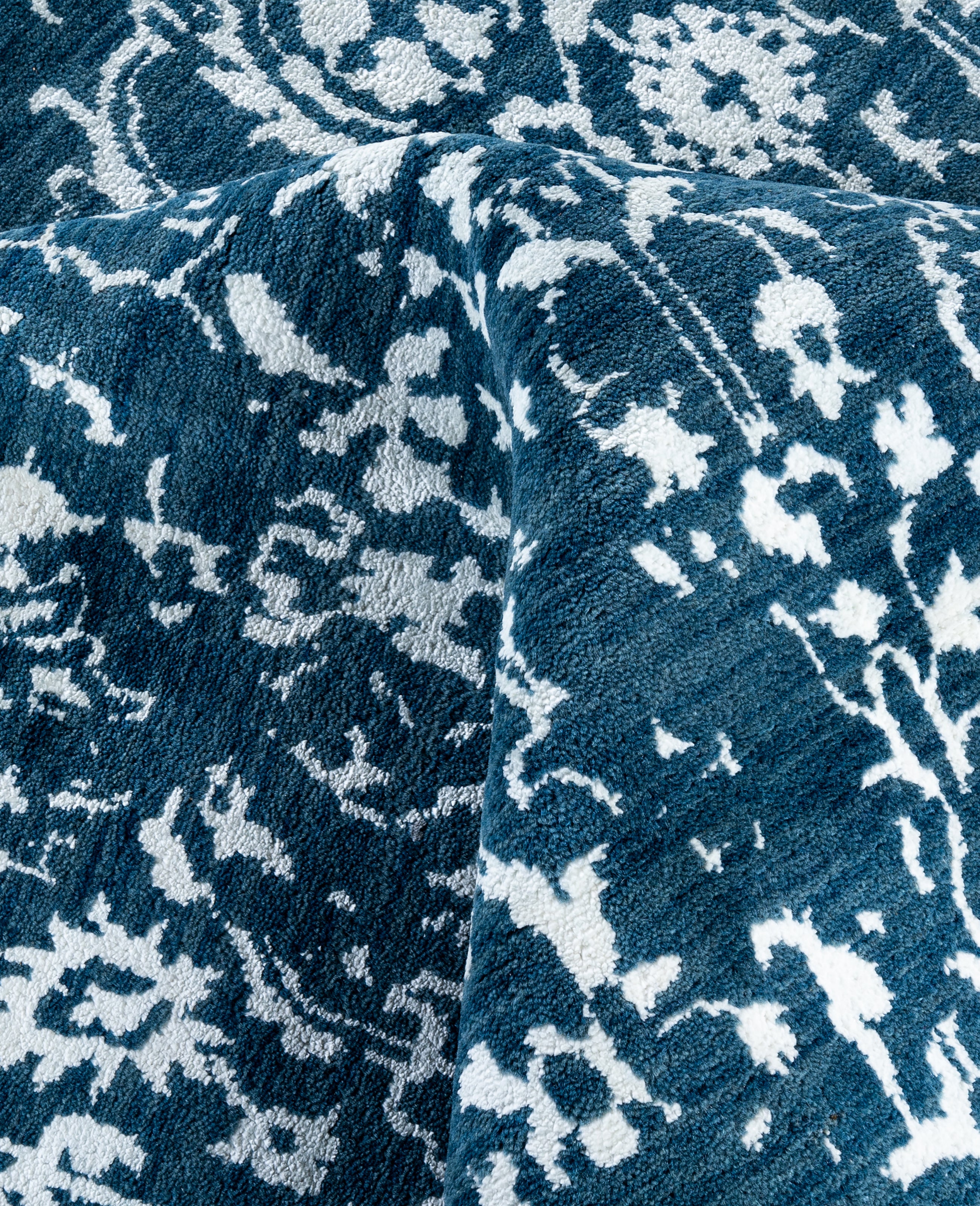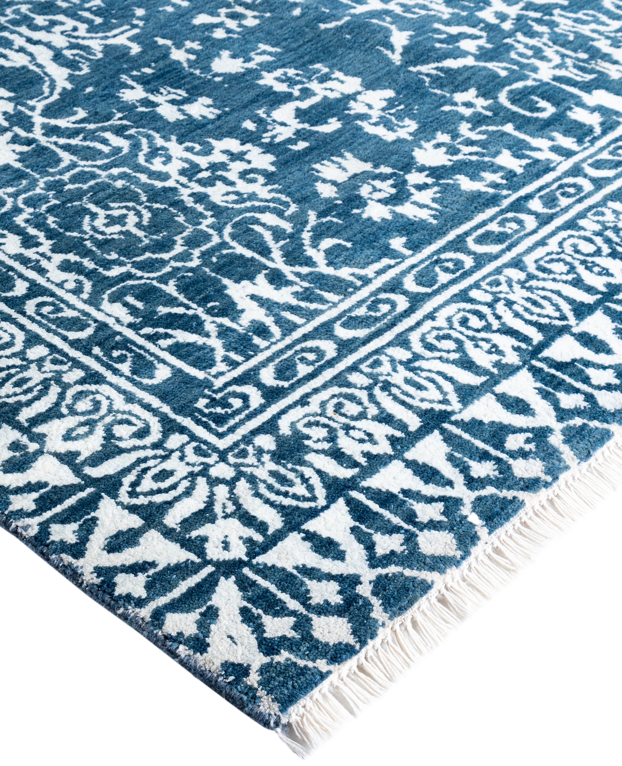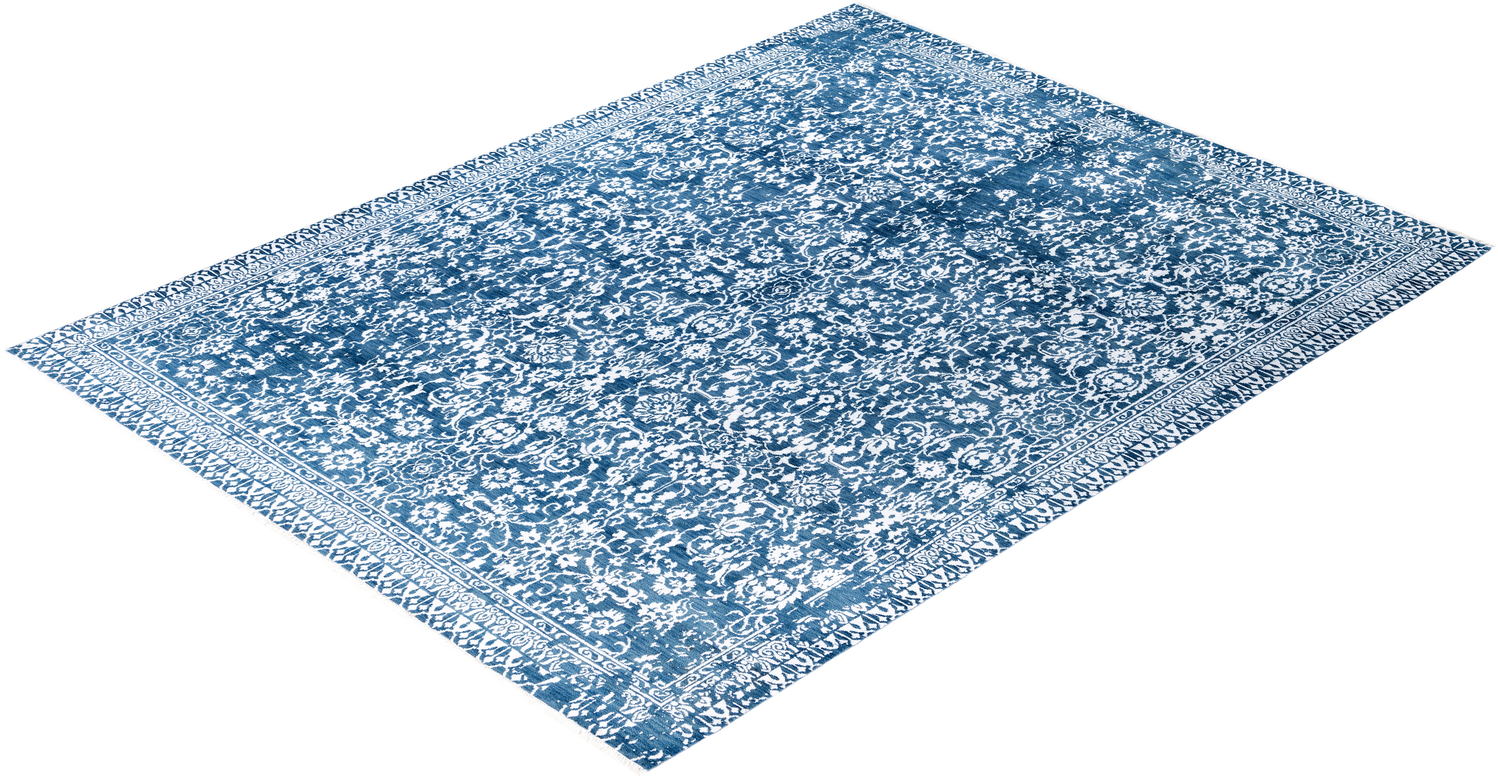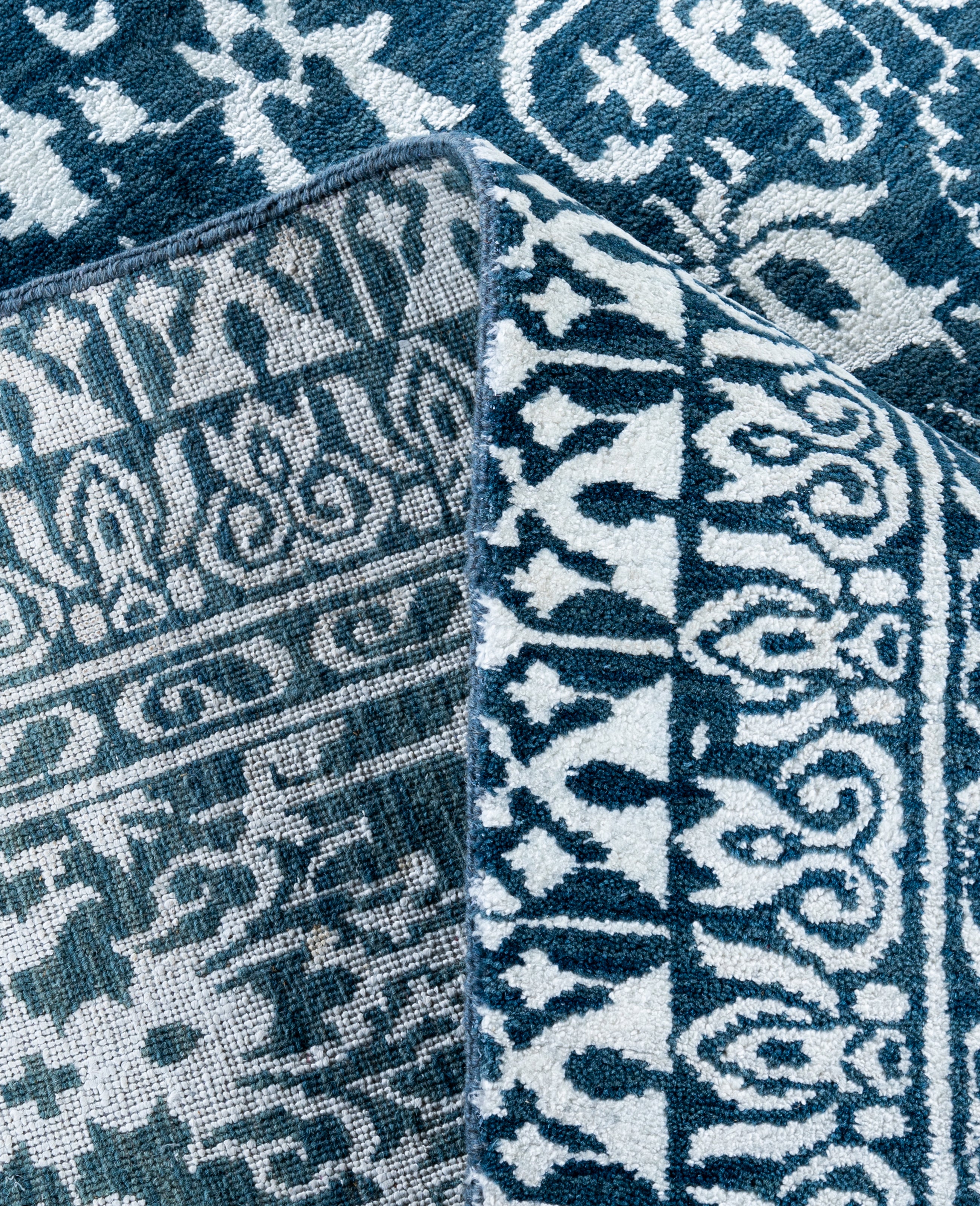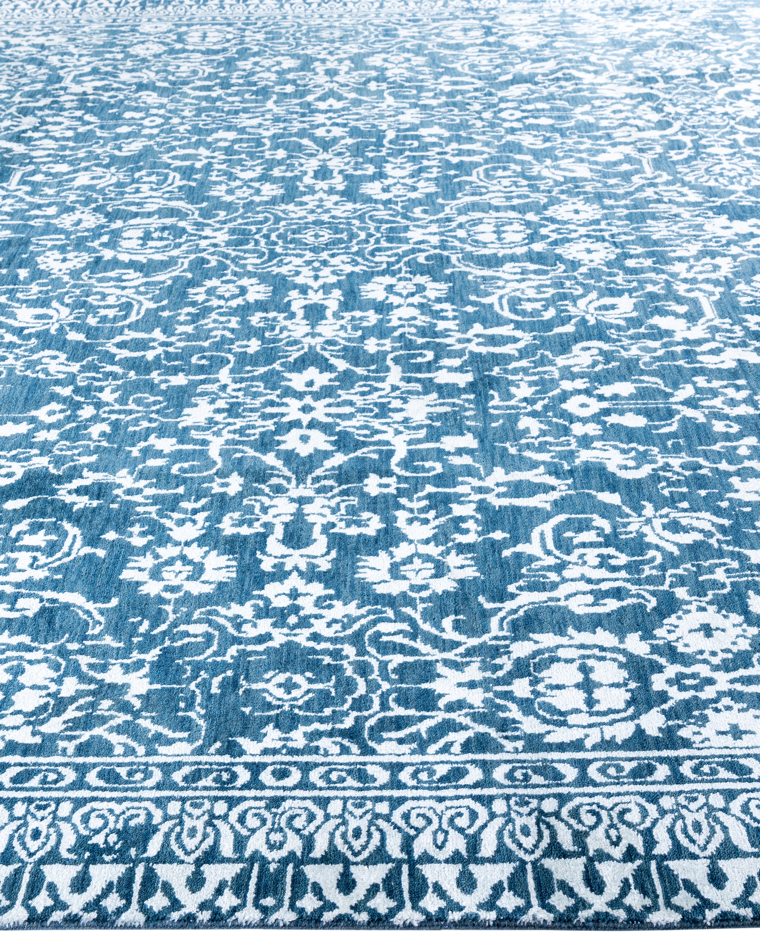 Traditional Abstarct Wool, Silk Hand Knotted Navy Area Rug 9' 2" x 12' 1"