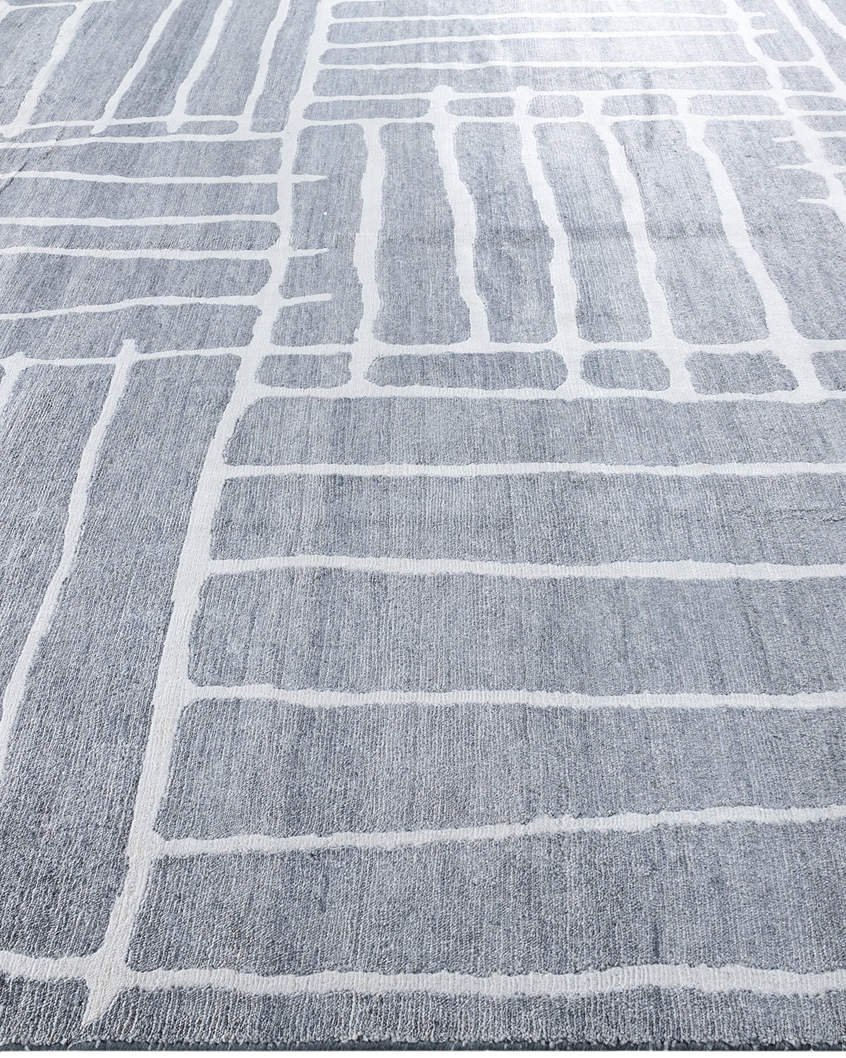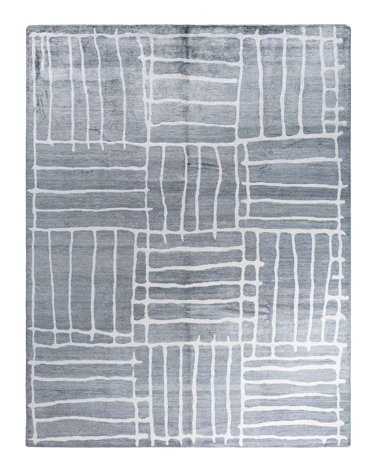 Contemporary Modern Hand Knotted Abstract Silk Gray Area Rug 9' 0" x 11' 10"