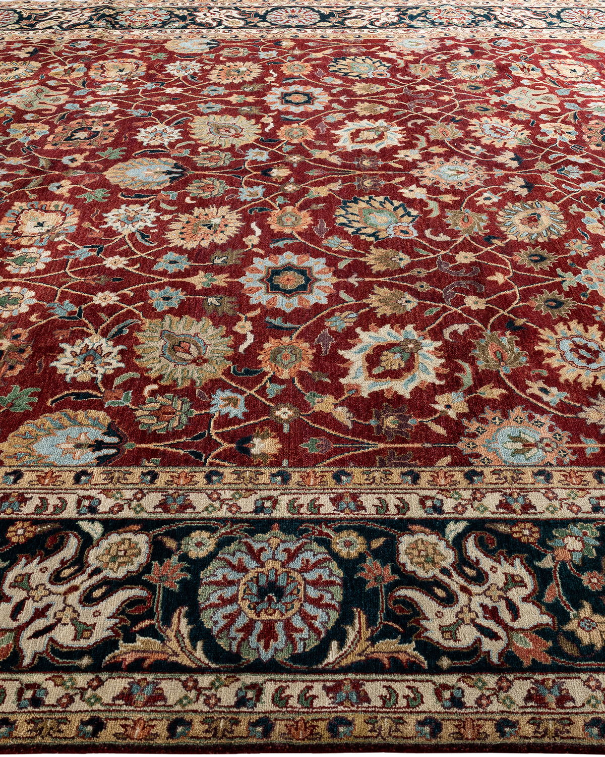 Traditional Indo Persian Hand Knotted Floral Wool Red Area Rug 9' 1" x 11' 9"