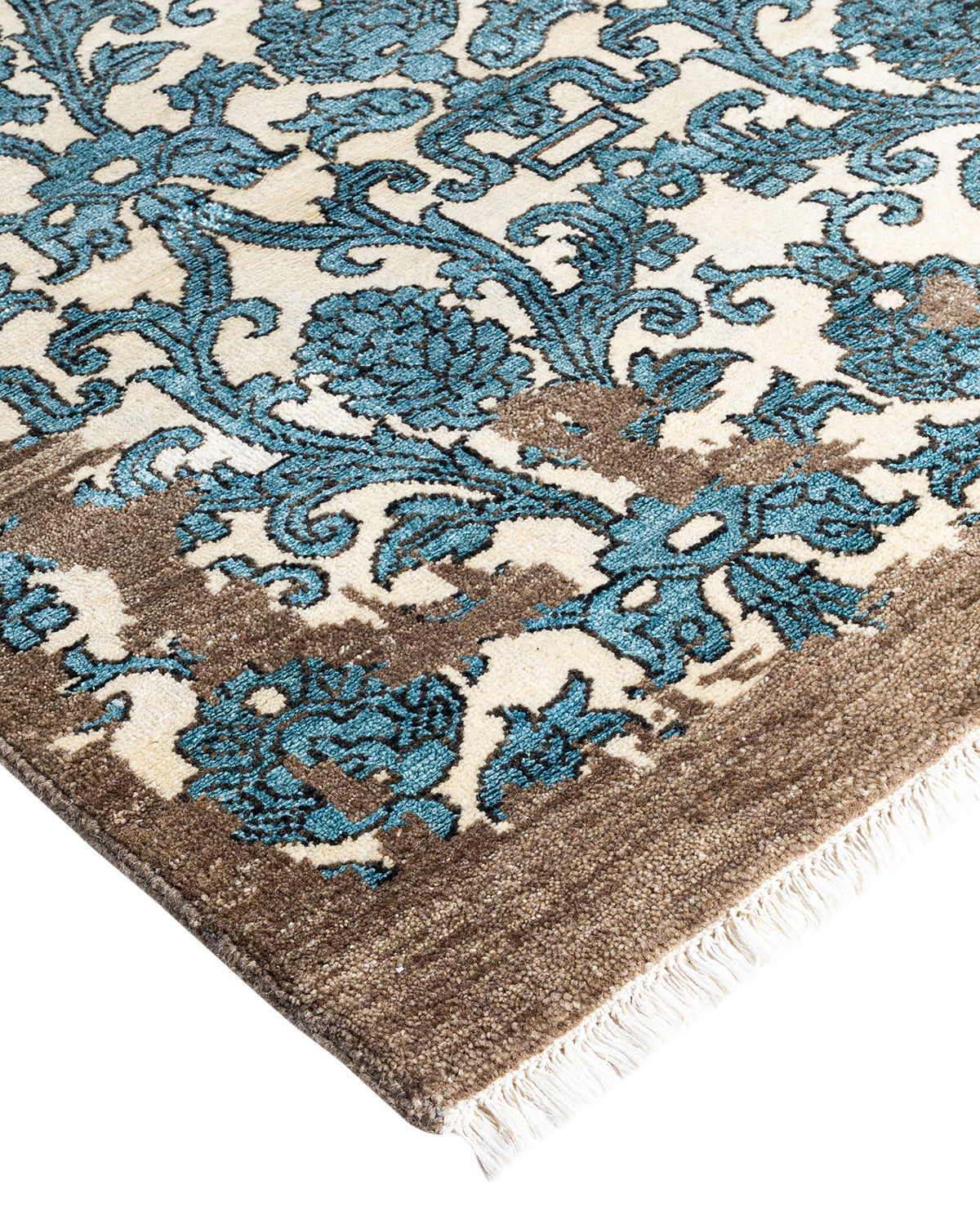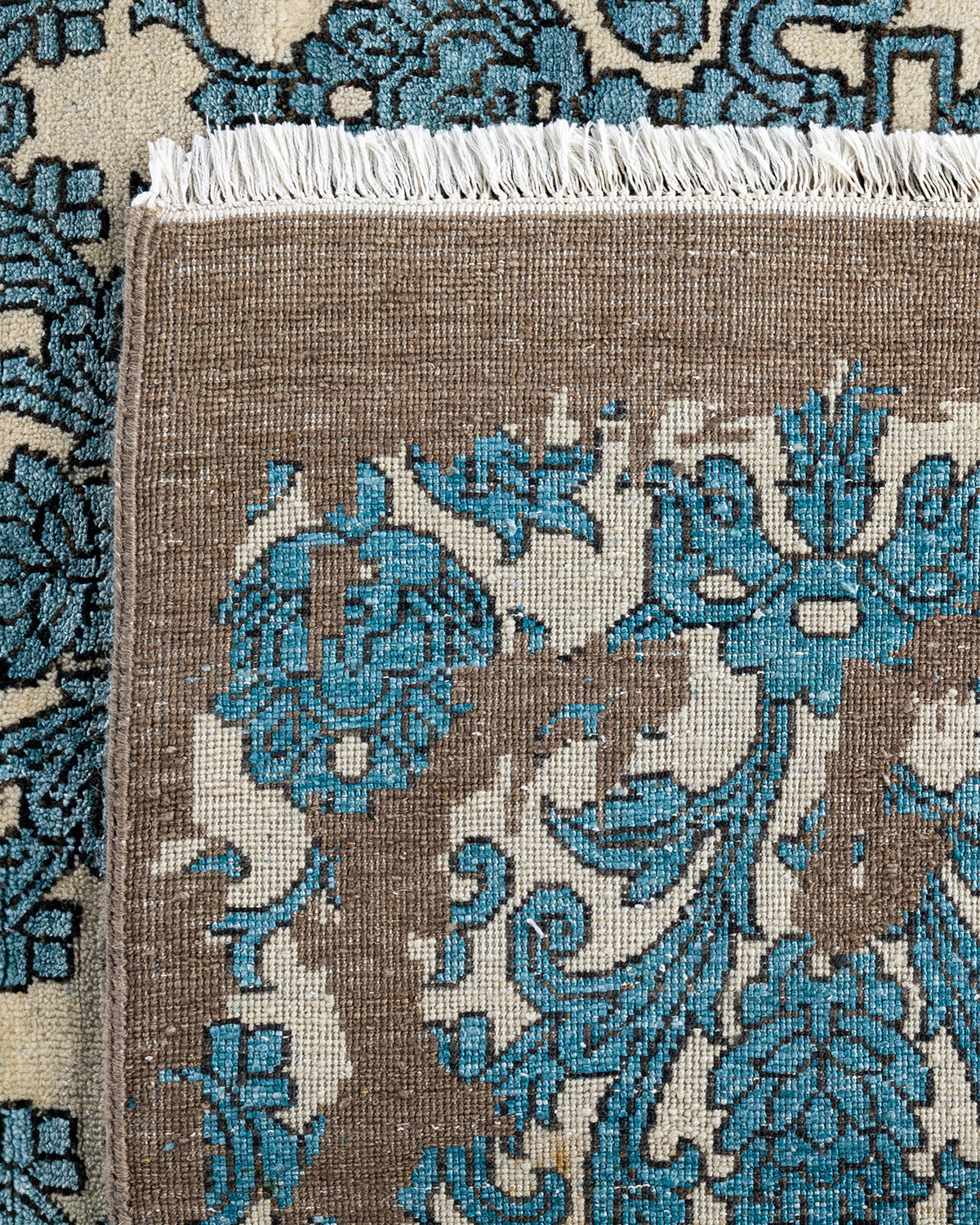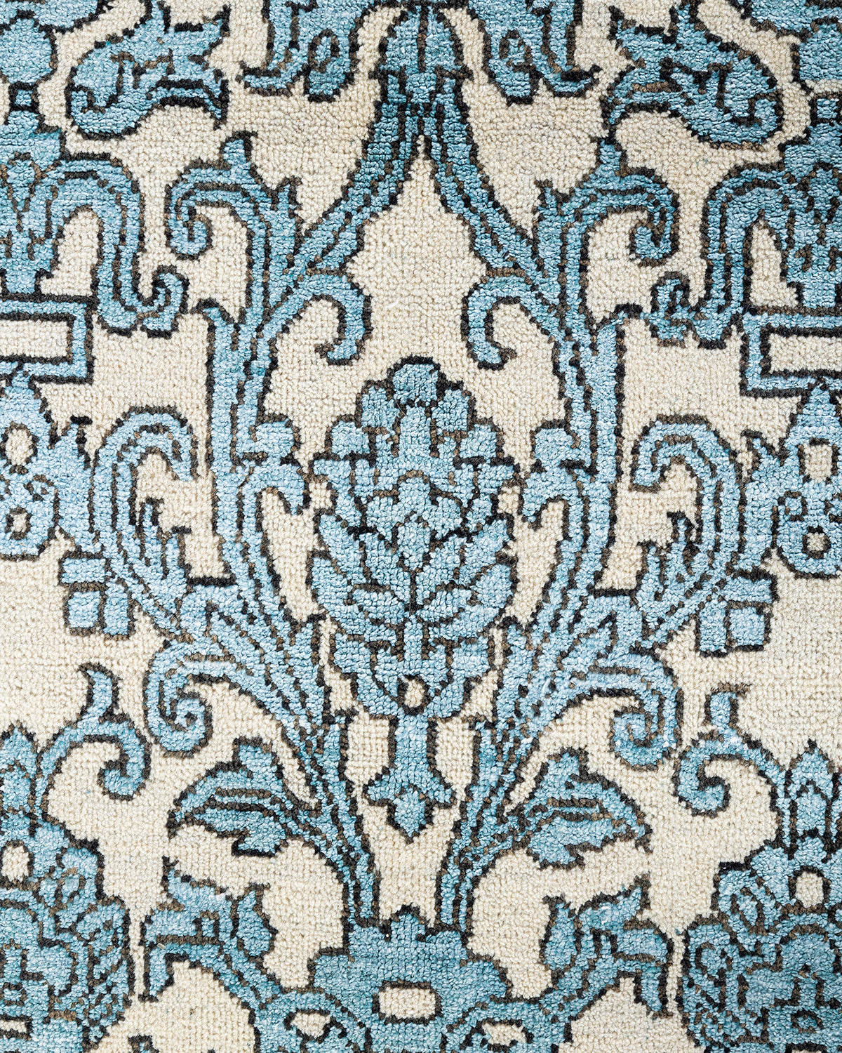 Traditional Ikat Hand Knotted Floral Silk & Wool Blend Ivory Area Rug 9' 2" x 12' 1"