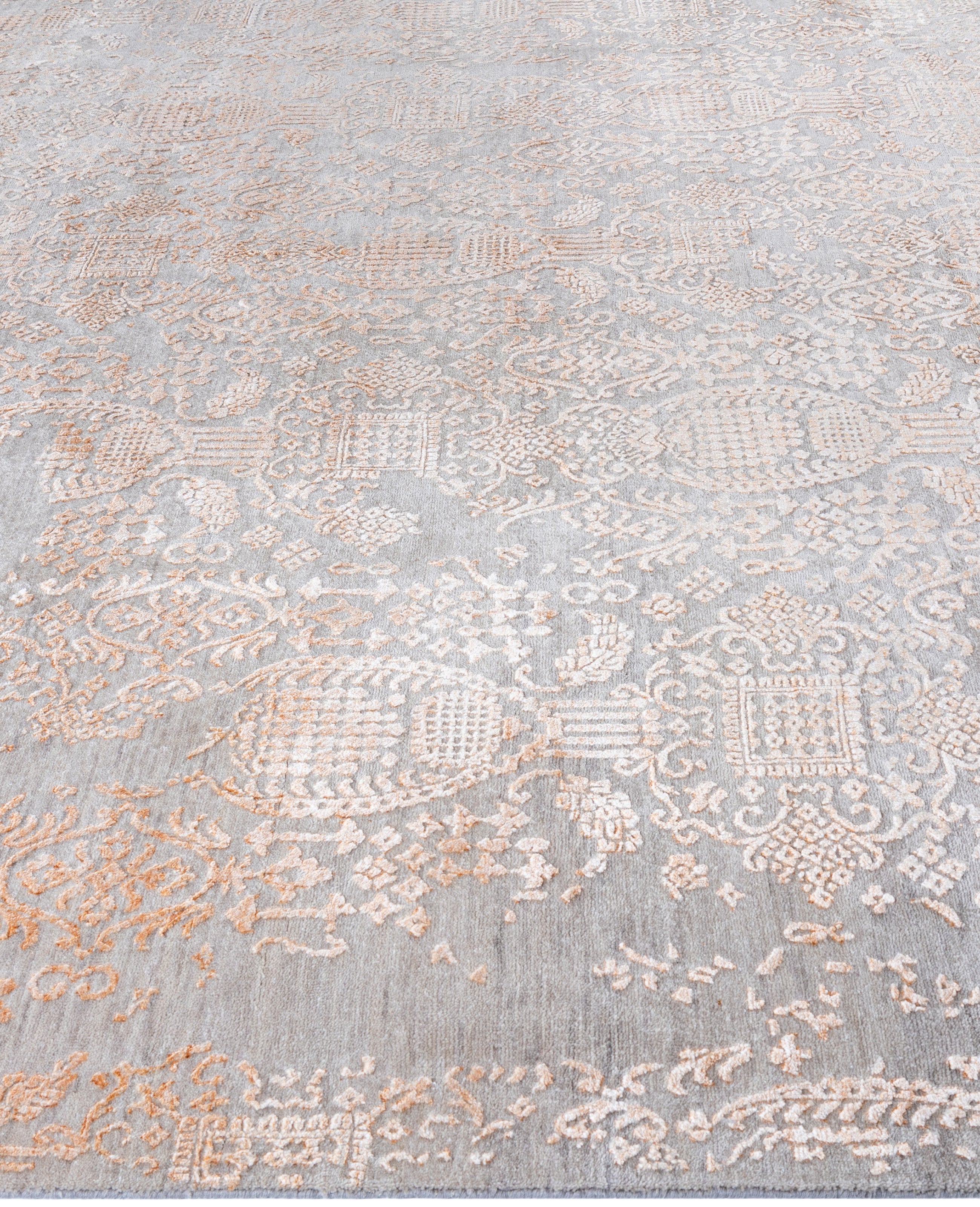Traditional Abstarct Wool, Silk Hand Knotted Gray Area Rug 8' 10" x 12' 0"