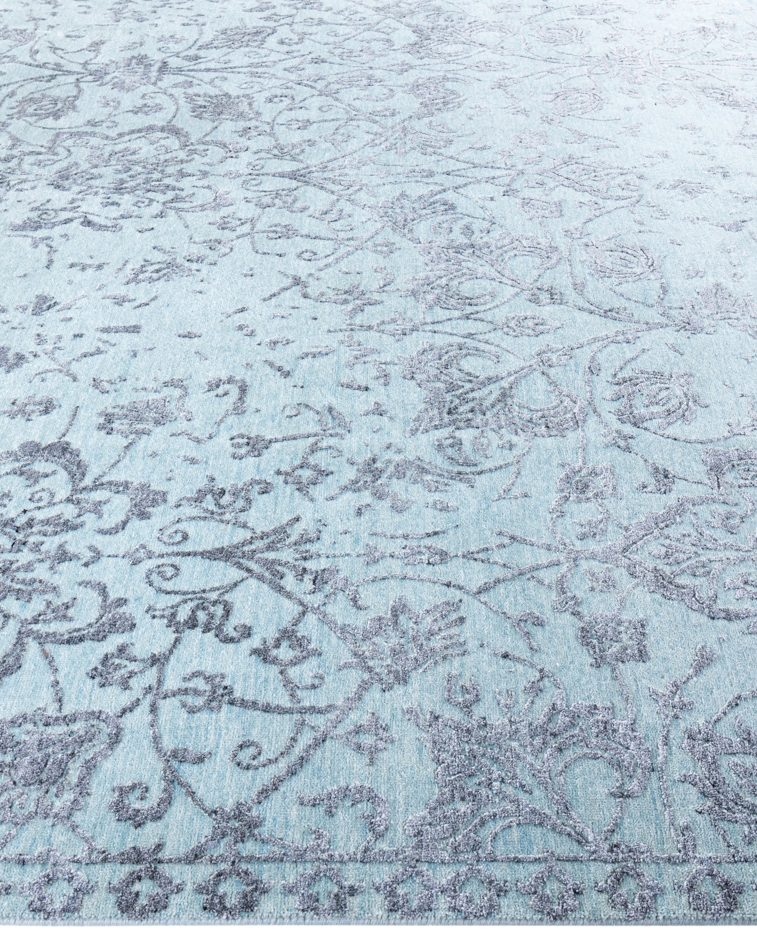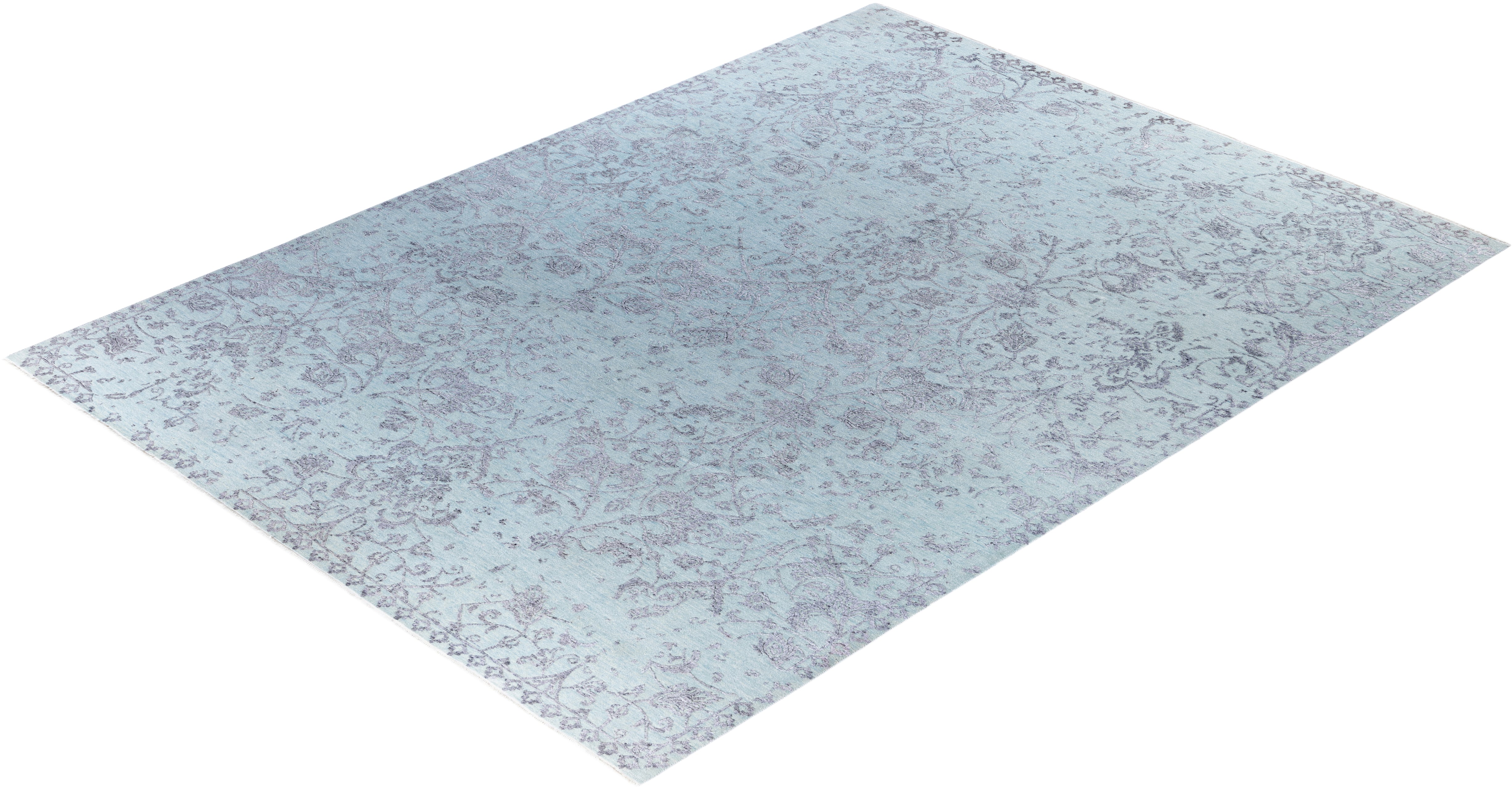 Traditional Abstarct Wool, Silk Hand Knotted Light Blue Area Rug 9' 0" x 12' 1"