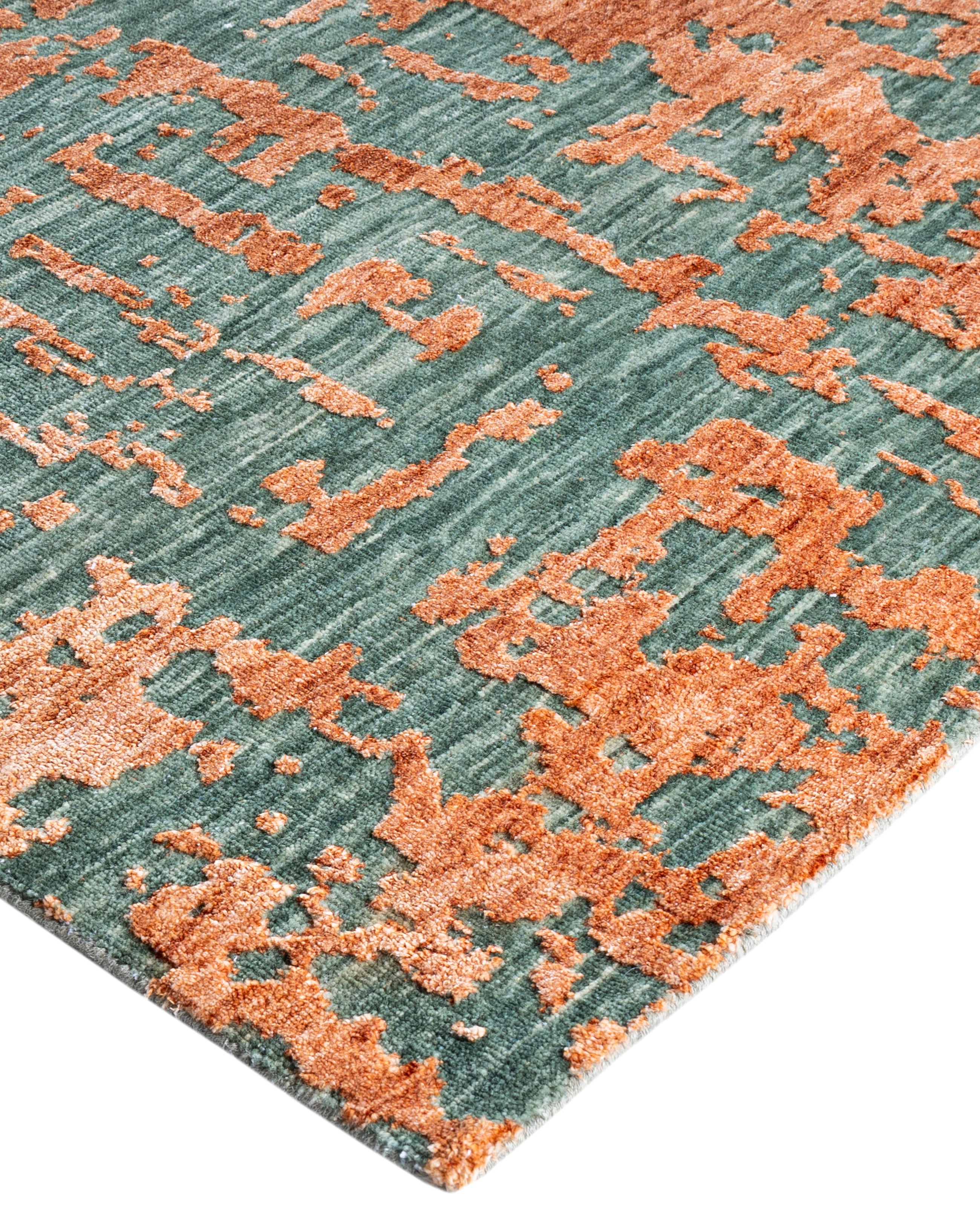 Traditional Abstarct Wool, Silk Hand Knotted Green Area Rug 9' 2" x 12' 4"