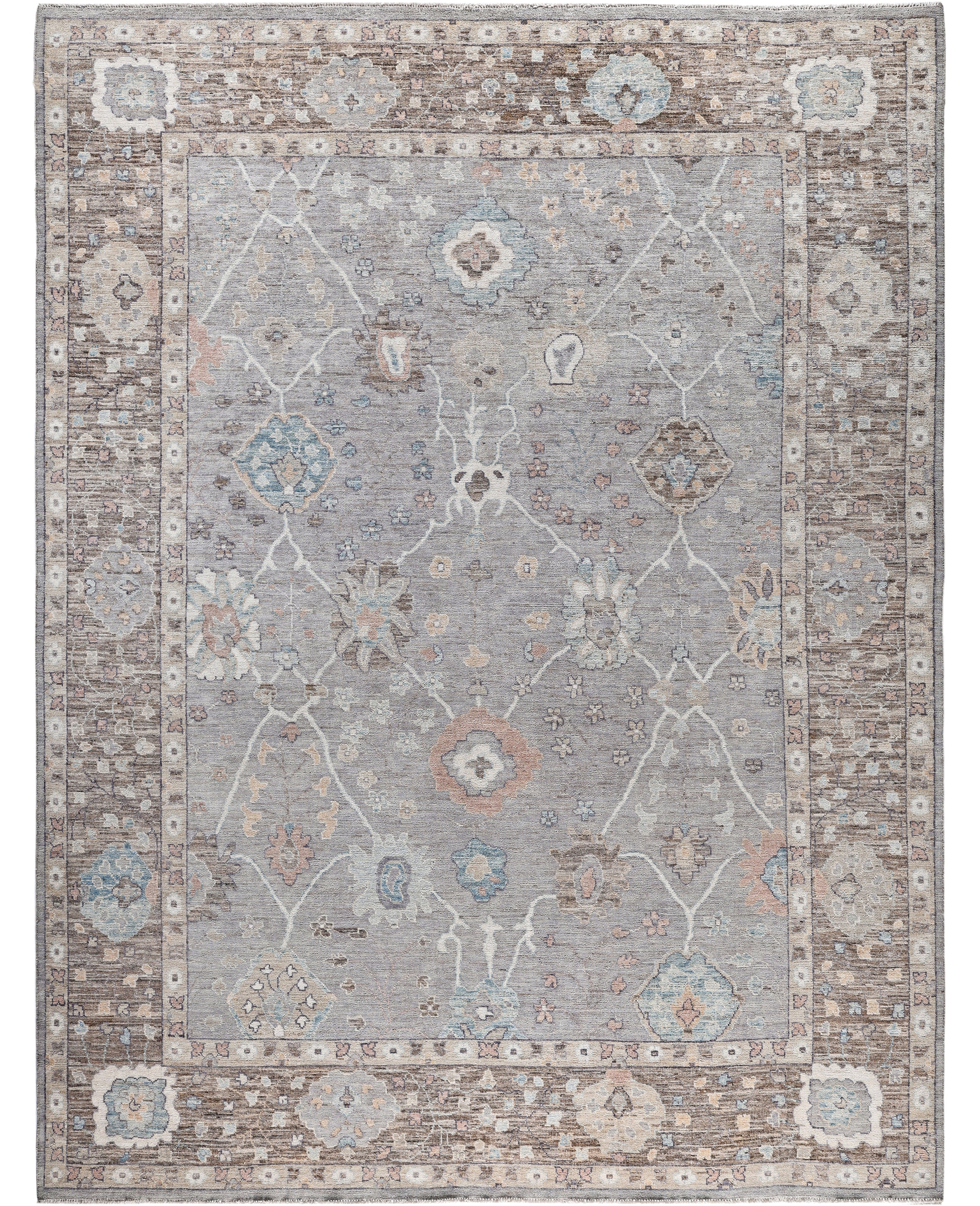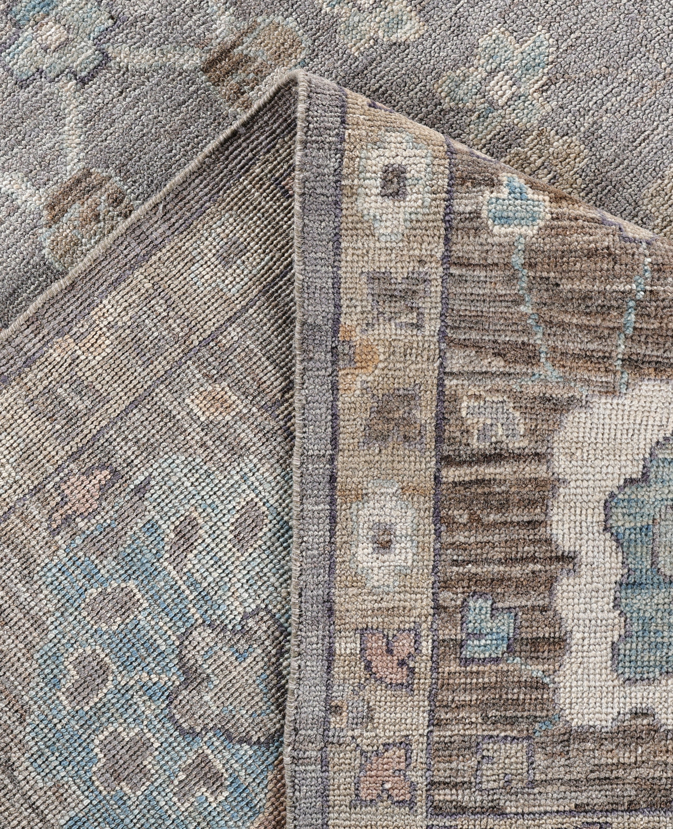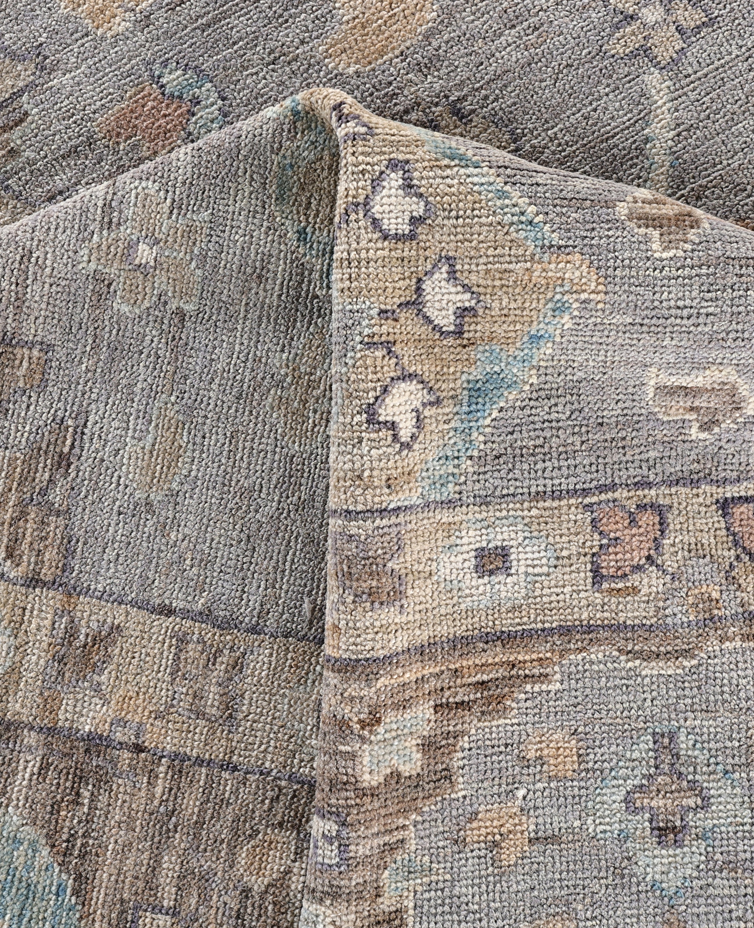 Oushak rugs are known for their soft, muted color palettes and large-scale, flowing designs. They often feature soft tones like beige, cream, gold, and light blue, with motifs that include palmettes, vines, and geometric shapes. These rugs are distinguished by their loose, open patterns, giving them an airy and elegant feel. Originating from the town of Oushak, they emphasize simplicity and a more relaxed aesthetic compared to other ornate designs. Hand-knotted using high-quality wool, Oushak rugs are celebrated for their luxurious texture and durability. Their timeless, understated beauty makes them popular in both traditional and contemporary interiors.