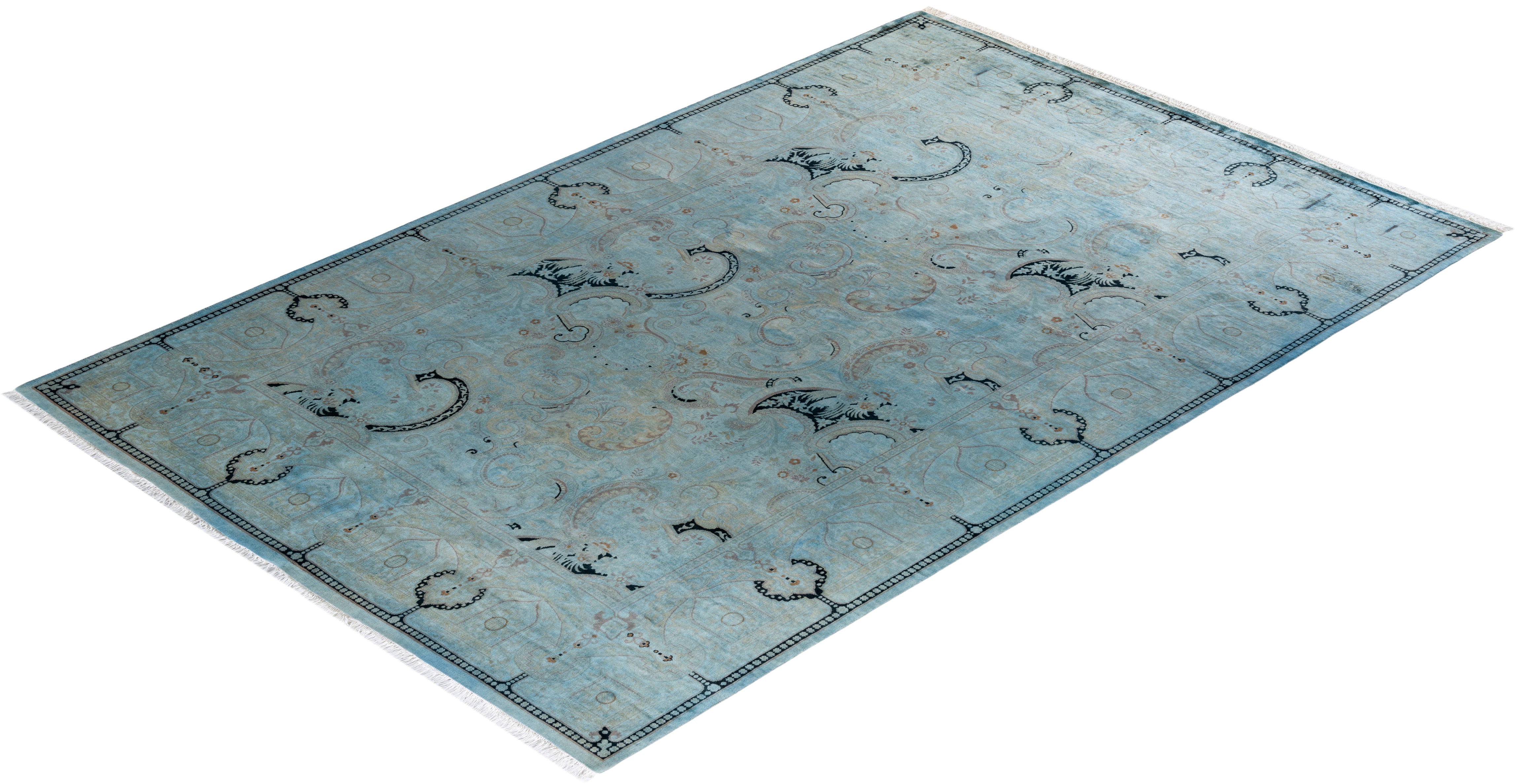 Contemporary Hand Knotted Overdyed Blue Area Rug 6' 3" x 9' 8"