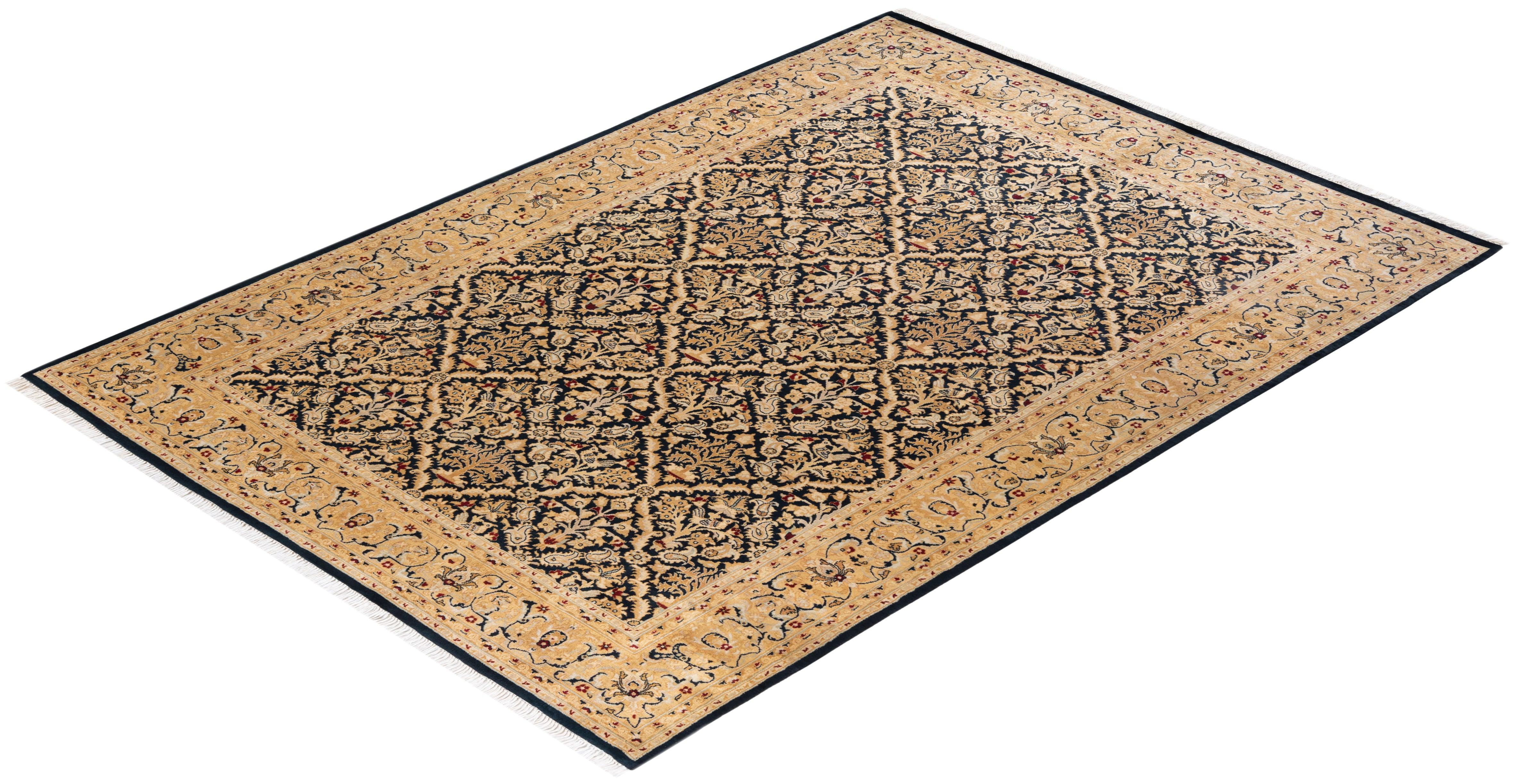 Traditional Hand Knotted Mogul Oriental Black Area Rug 6' 1" x 8' 8"